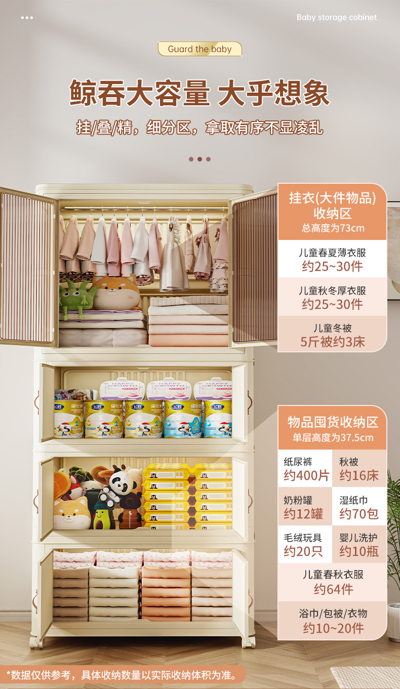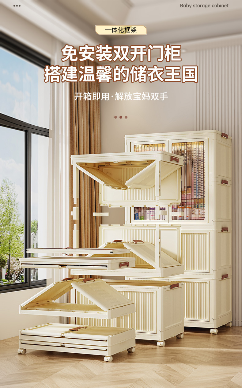 설치 무료 아기 옷장 걸 수 있는 아기 어린이 수납 캐비닛 침실 옷 사물함 접이식 플라스틱 옷장