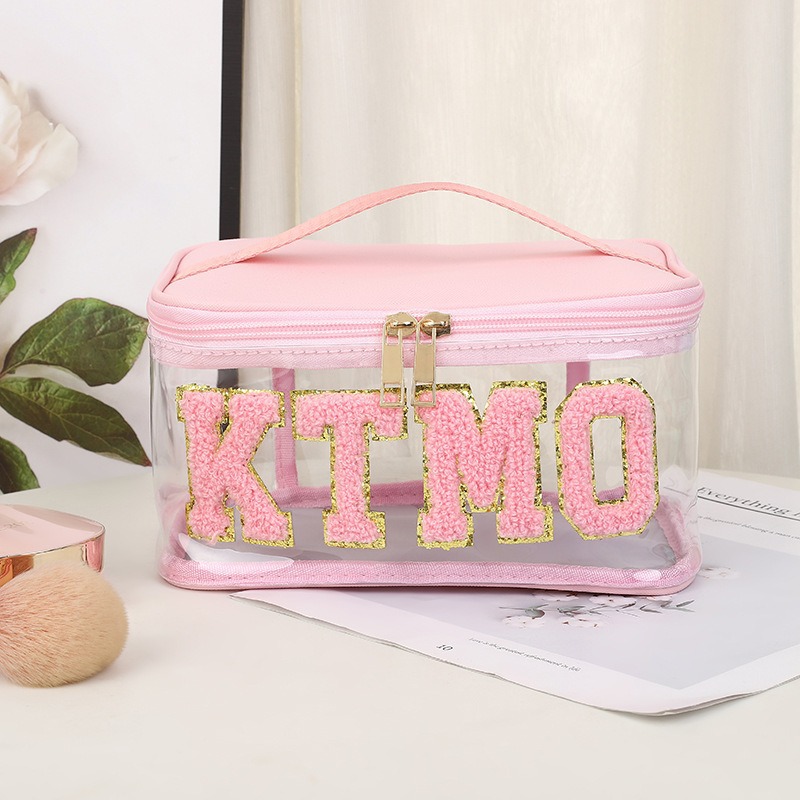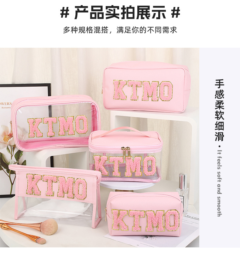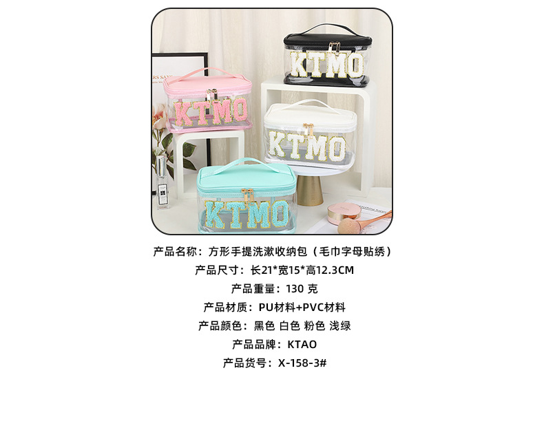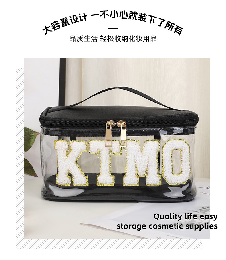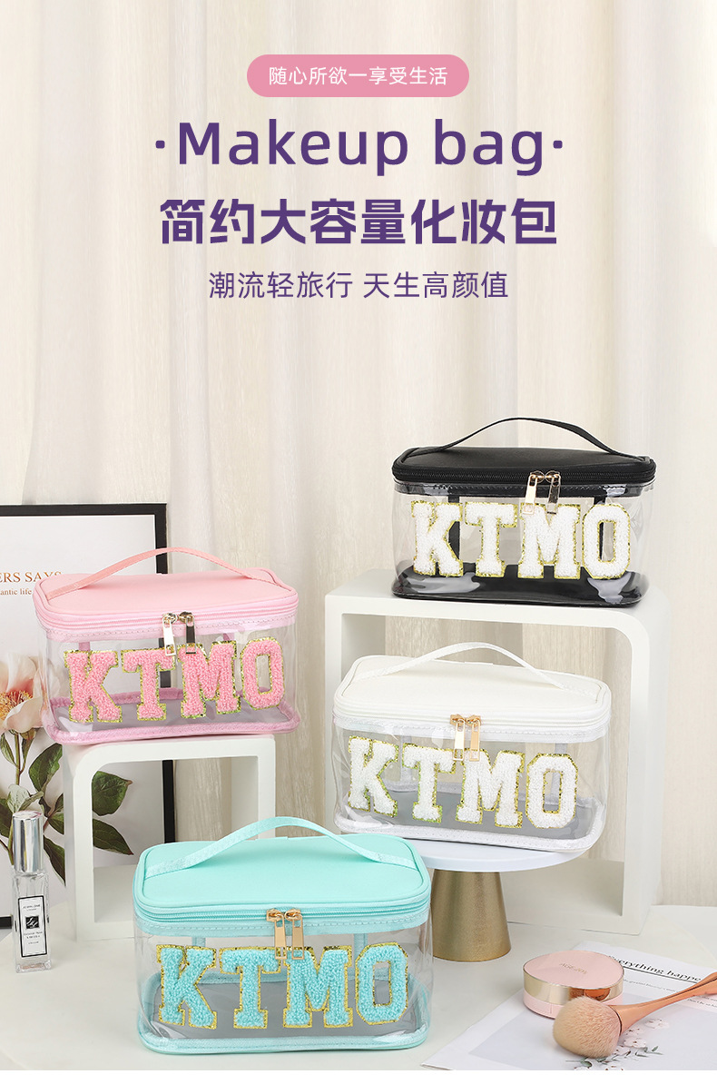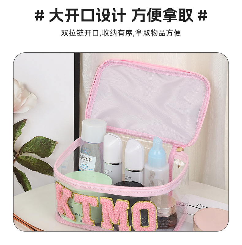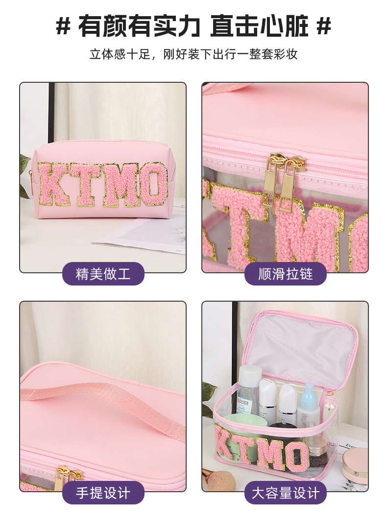 휴대용 화장품 가방 대용량 여행 방수 pu 세척 가방 붙여 넣기 수 놓은 편지 화장품 보관 가방 재고스토어 가기