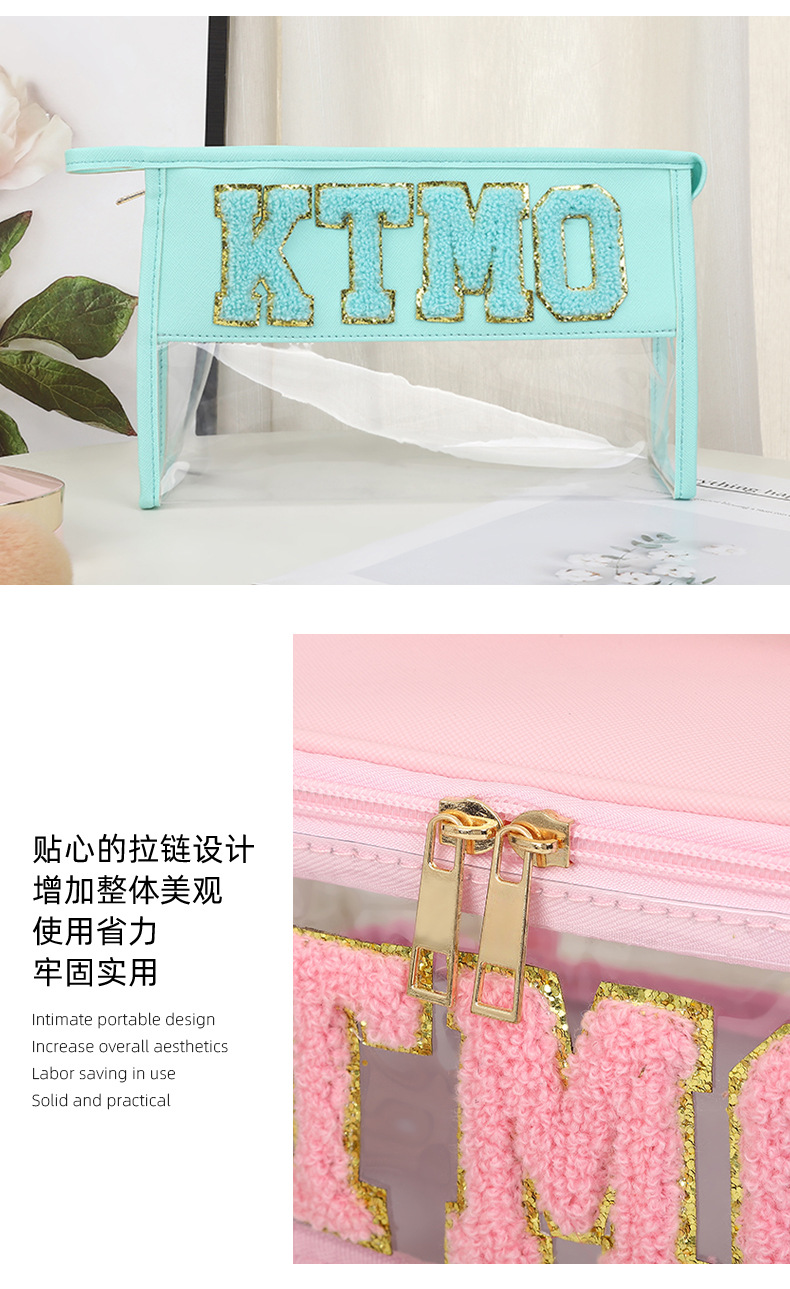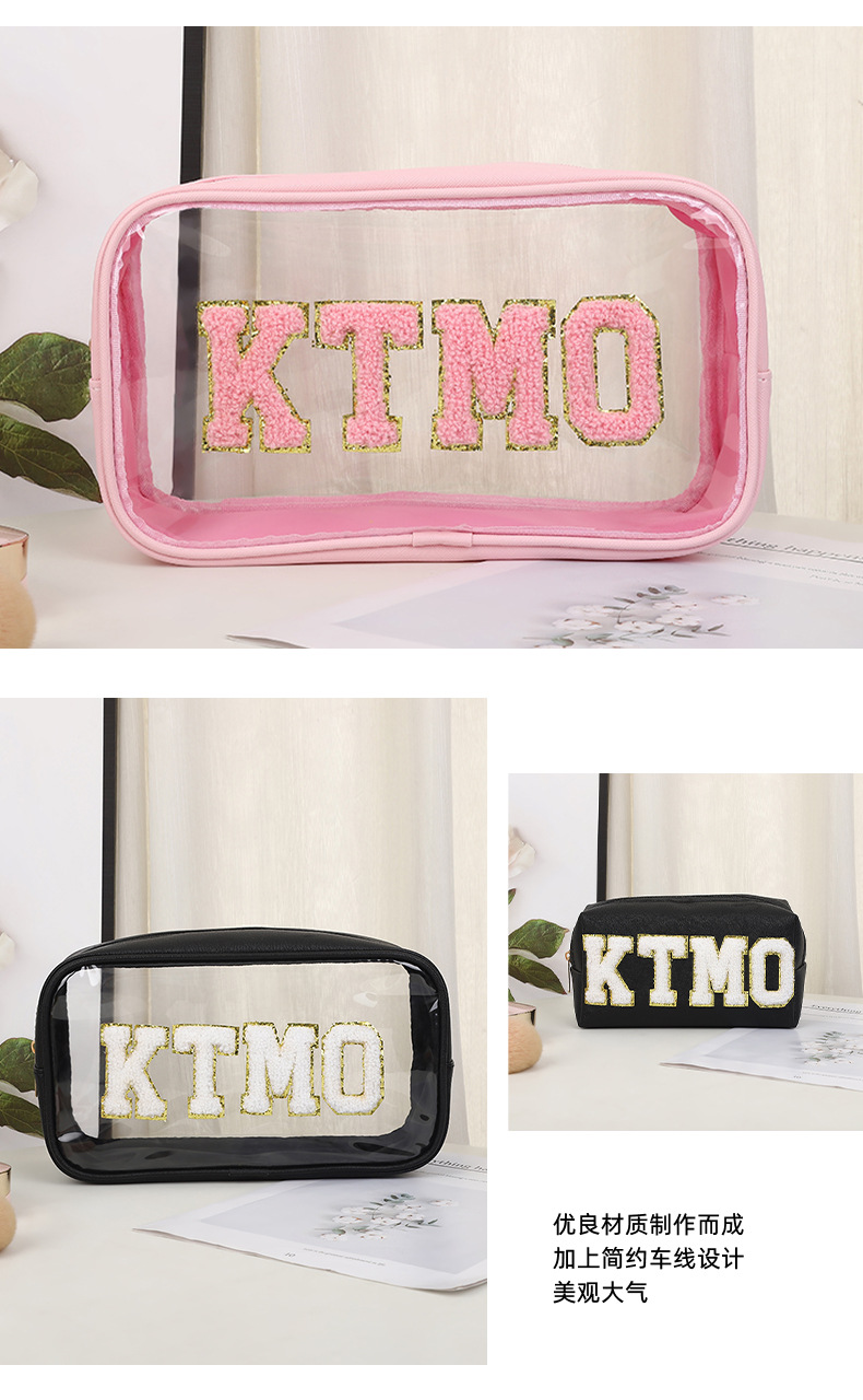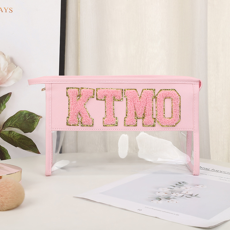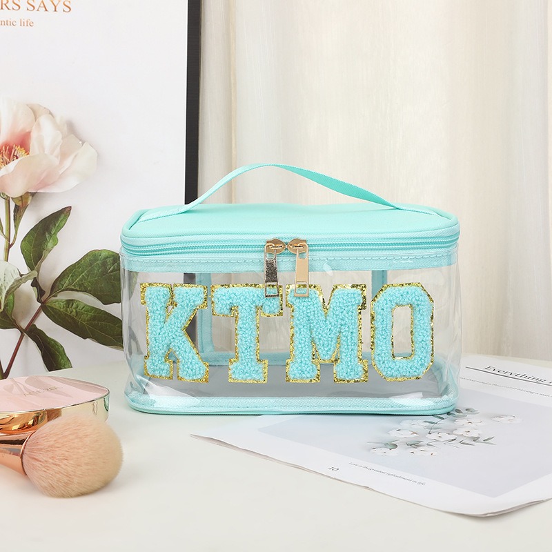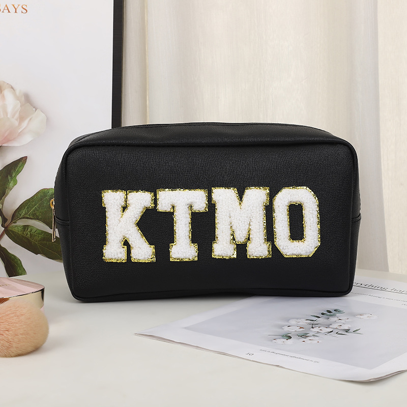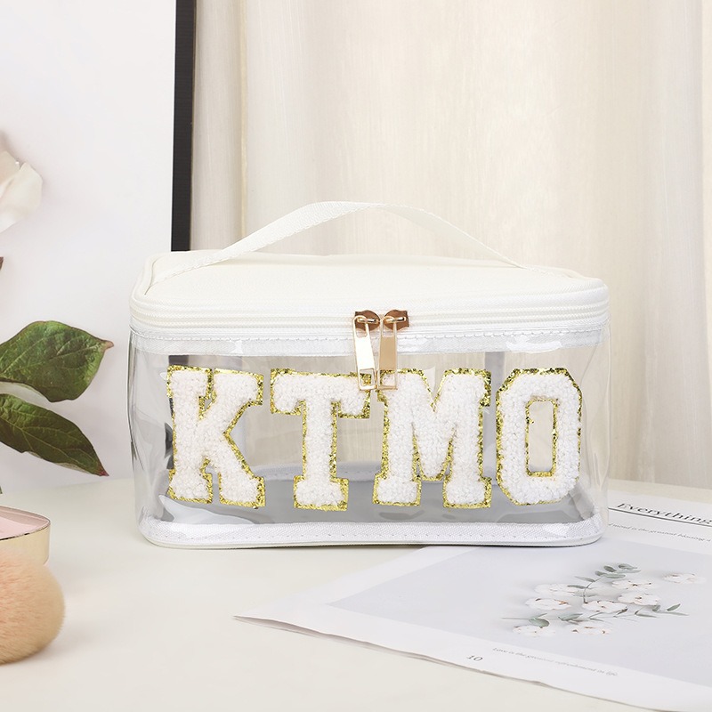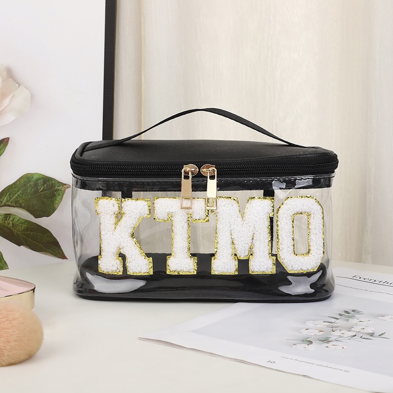 휴대용 화장품 가방 대용량 여행 방수 pu 세척 가방 붙여 넣기 수 놓은 편지 화장품 보관 가방 재고스토어 가기