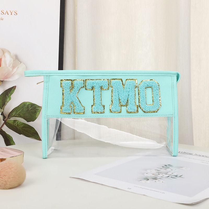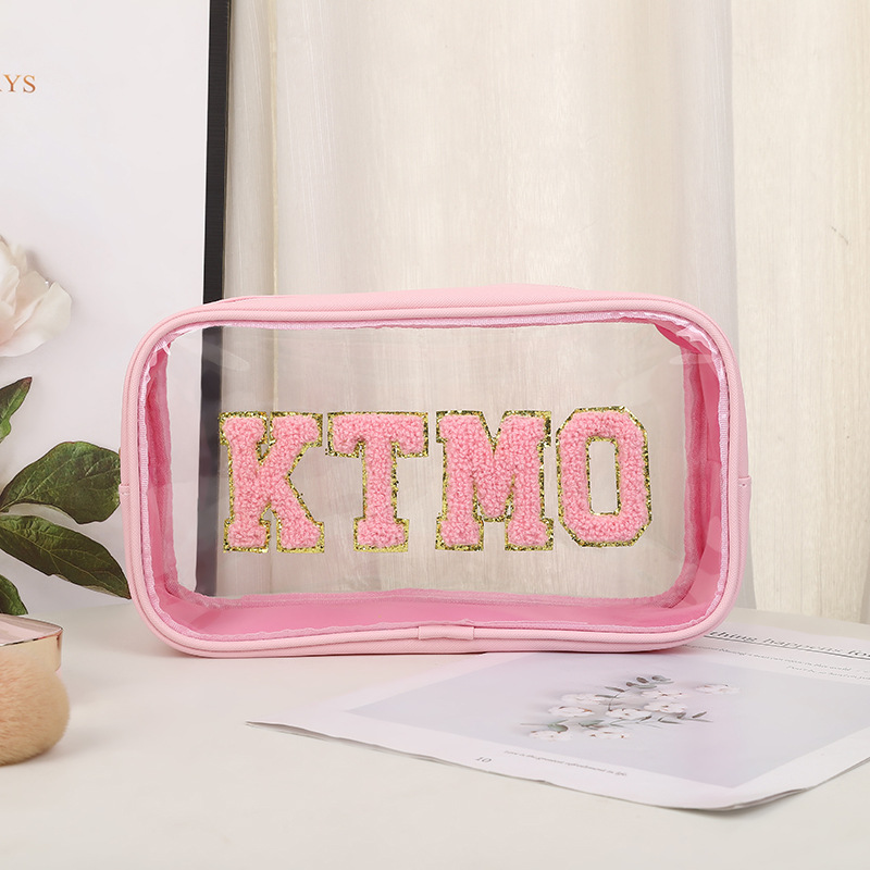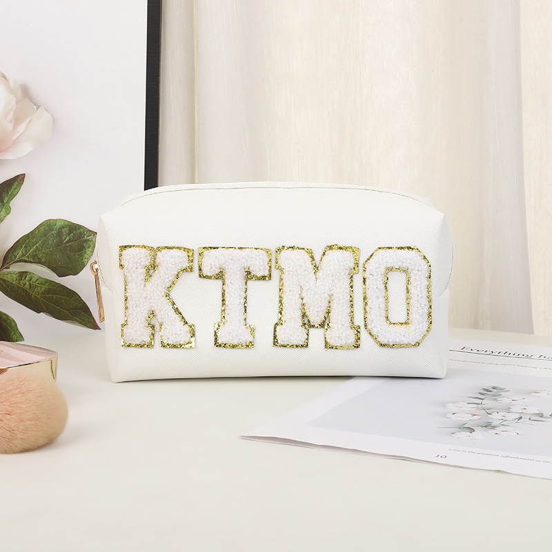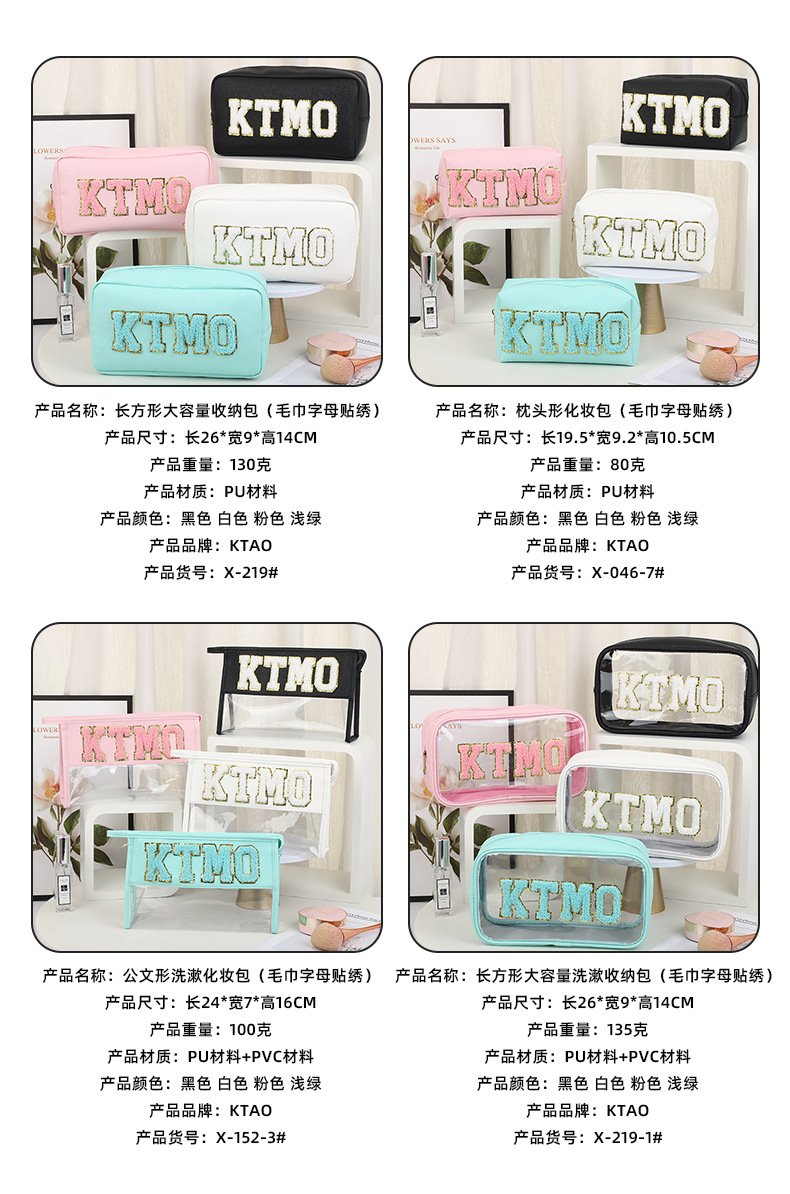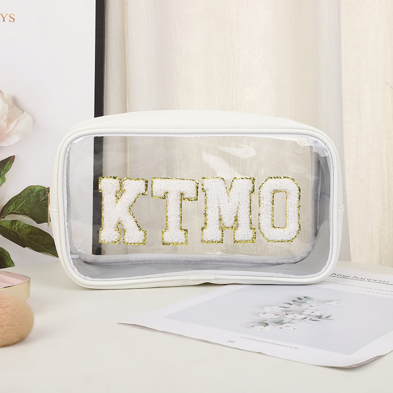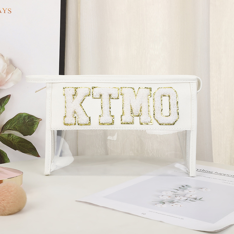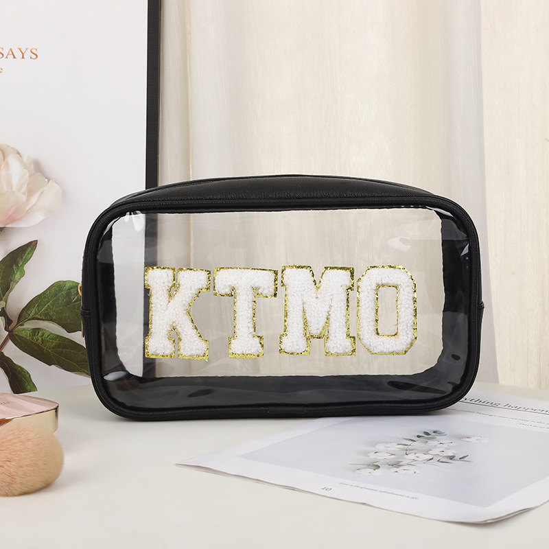 휴대용 화장품 가방 대용량 여행 방수 pu 세척 가방 붙여 넣기 수 놓은 편지 화장품 보관 가방 재고스토어 가기