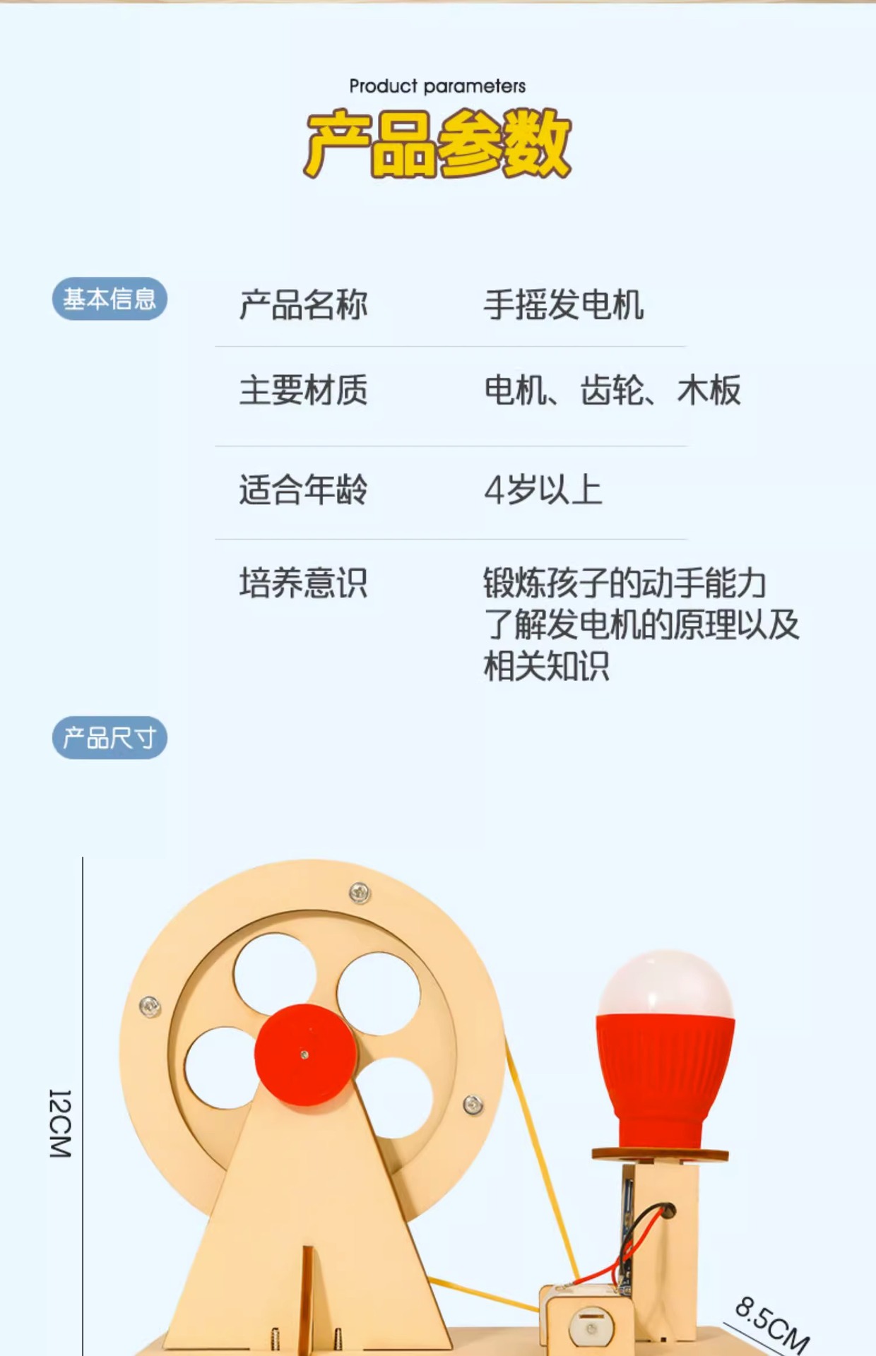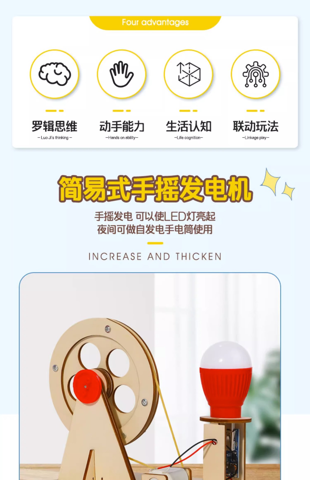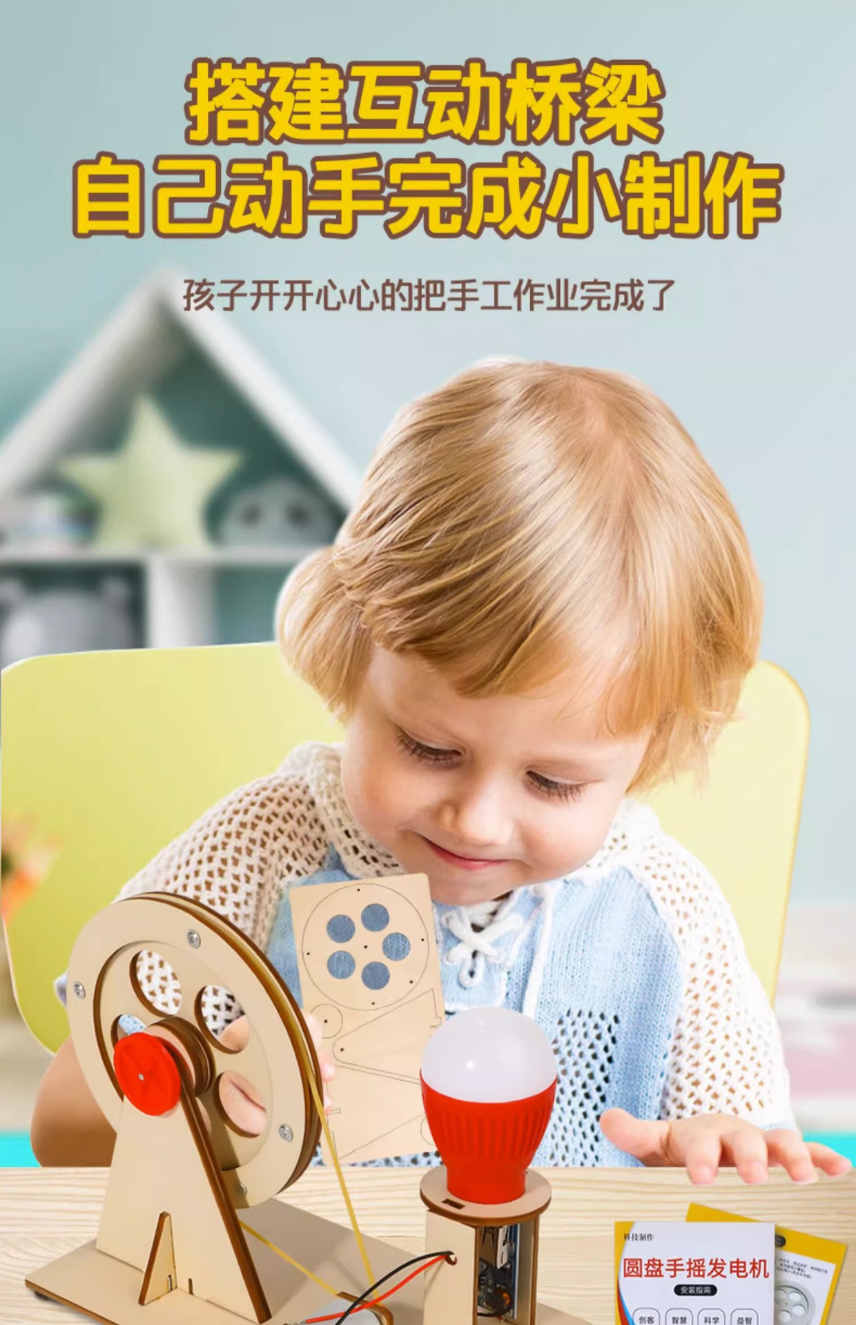 핸드 크랭크 발전기 학생 과학 및 기술 만들기 세트 과학 실험 작은 발명품 DIY 아이들의 수제 교육 장난감스토어 가기