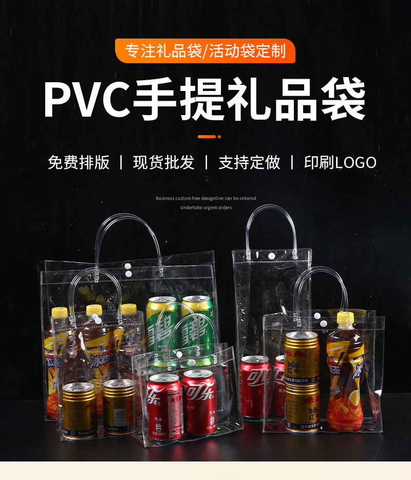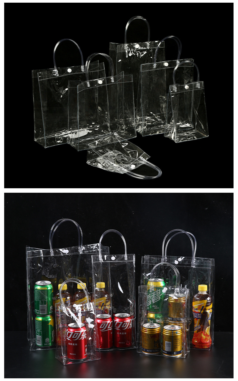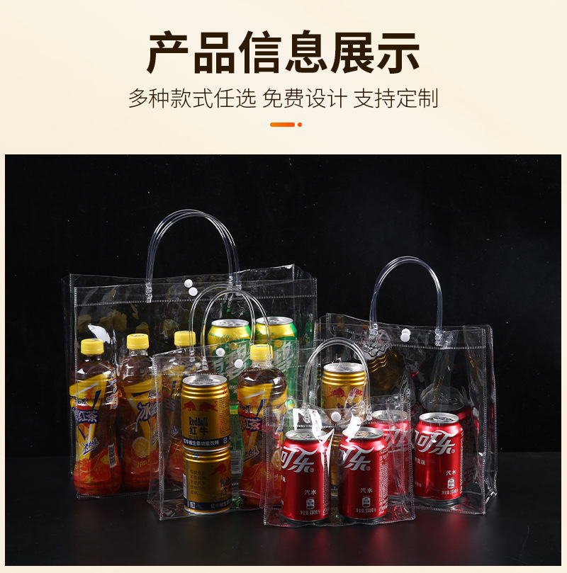 재고 포장 가방 실속 편의점 바텐딩 가방 투명 PVC 토트 가방 맞춤형 와인 가방 도매스토어 가기