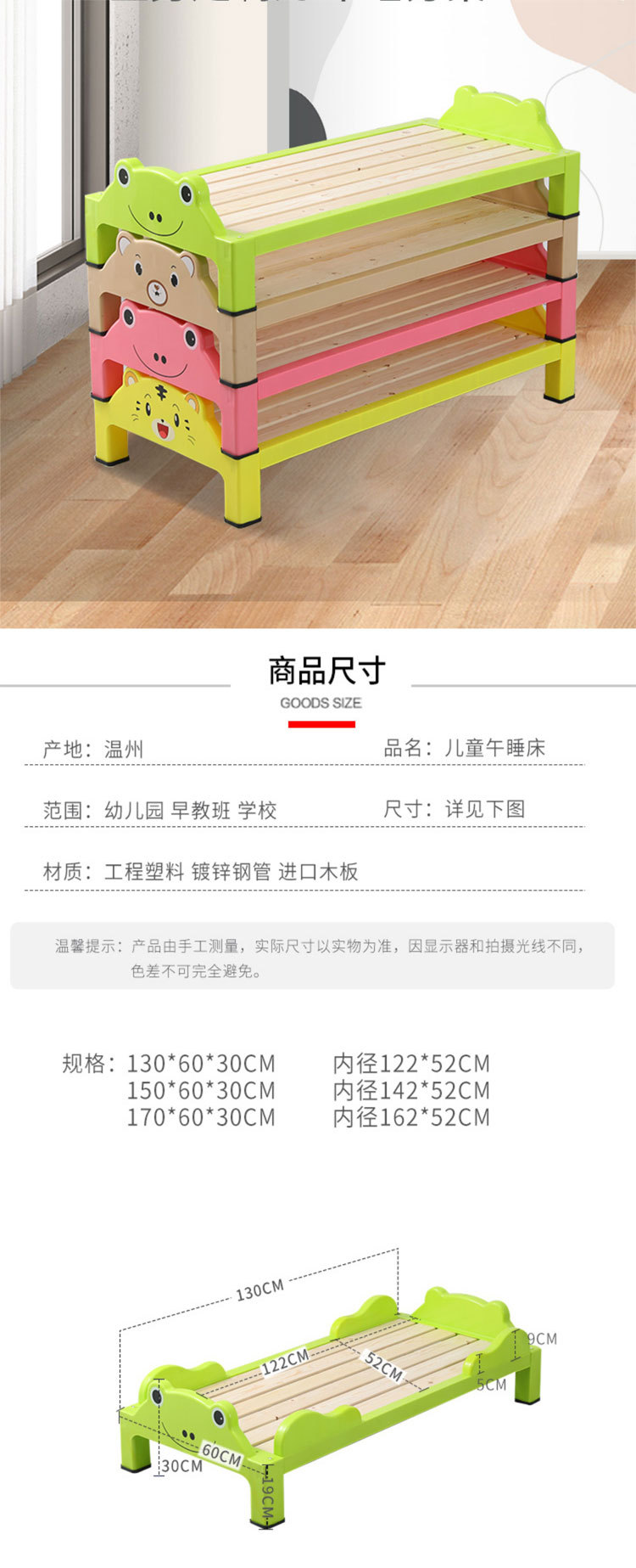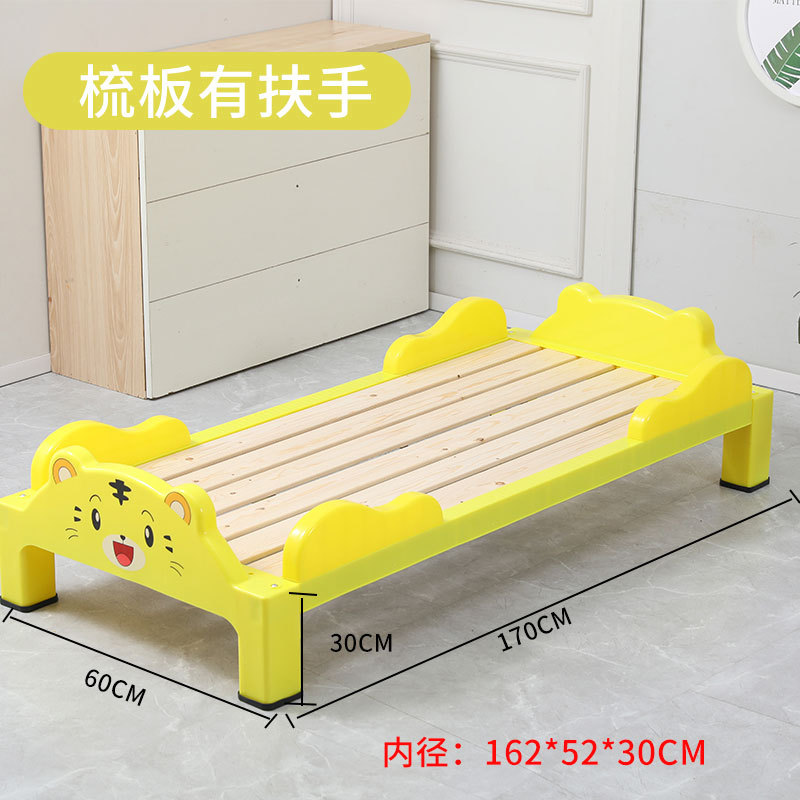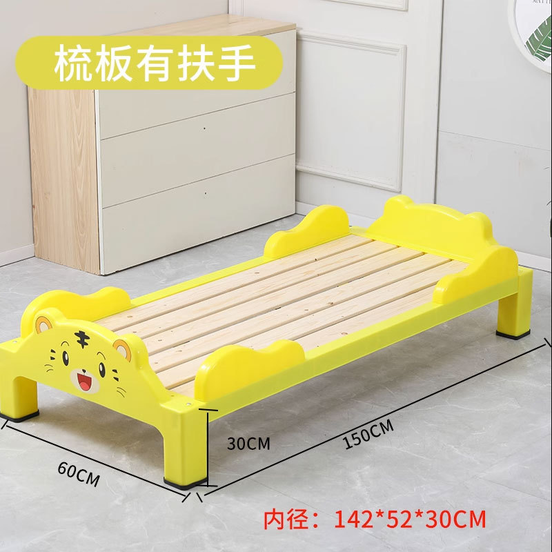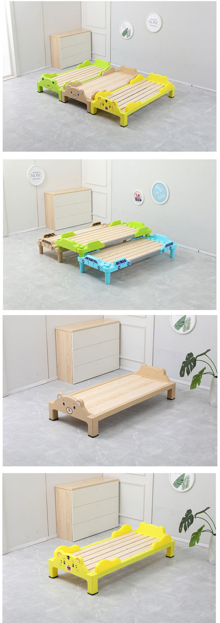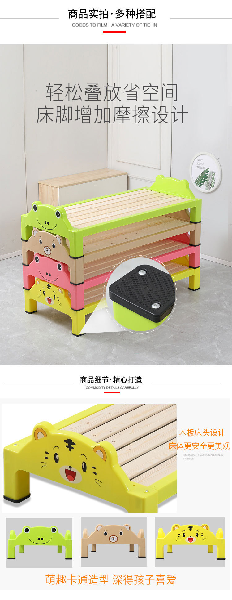 유치원 점심 시간 플라스틱 단단한 나무 쌓인 침대 어린이 싱글 접이식 낮잠 침대 아기 만화 난간 작은 침대스토어 가기