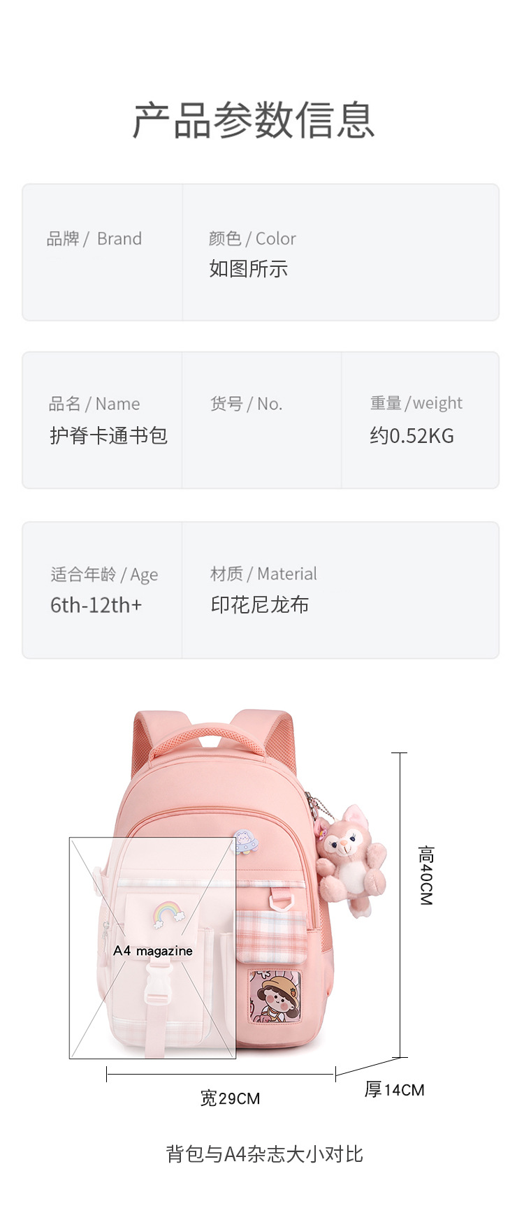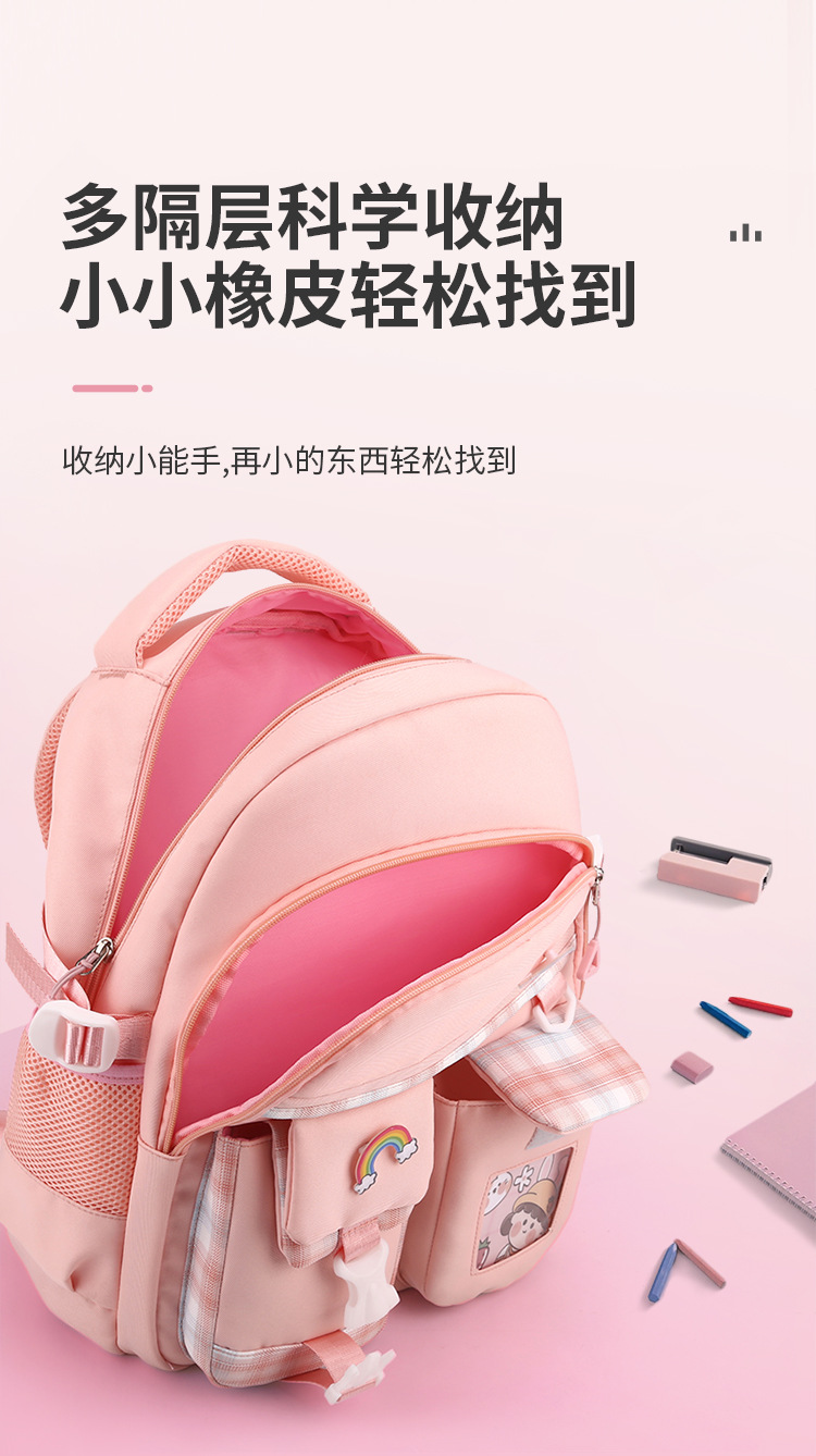 리지 보호 책가방 여자 1 학년부터 4 학년까지의 아동 책가방 대용량의 부담을 경감하기 위한 학급의 초등학생