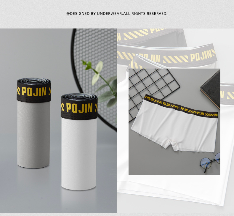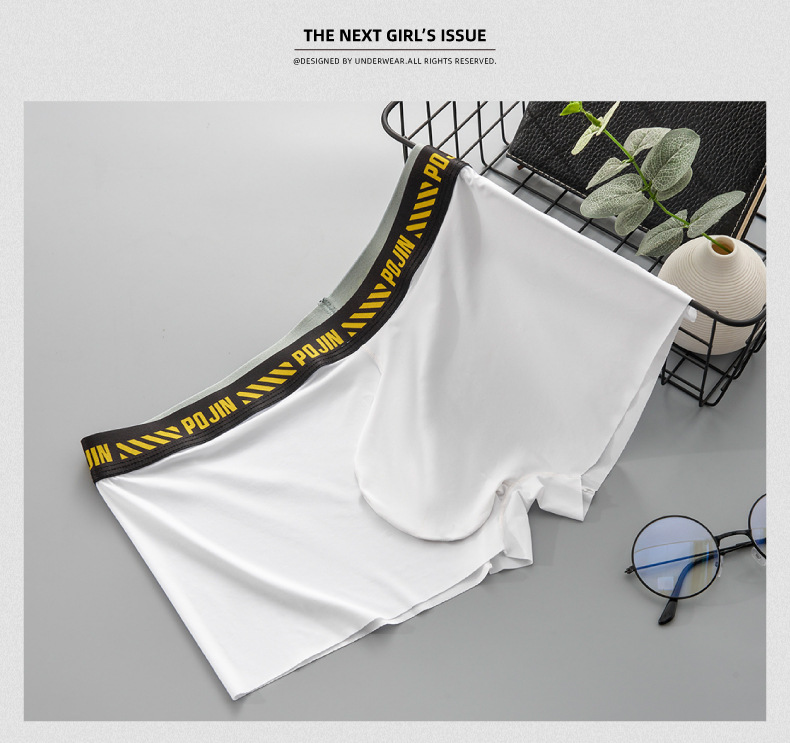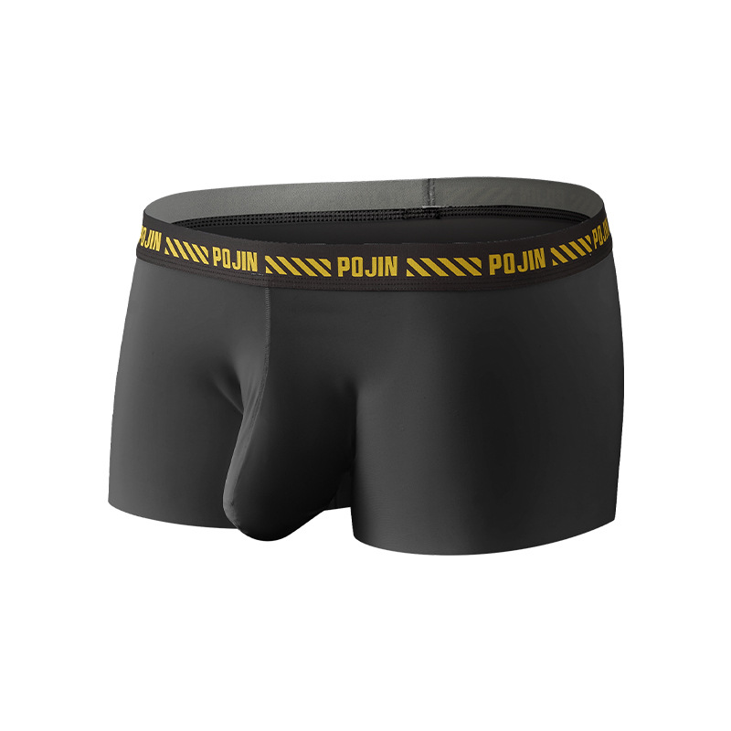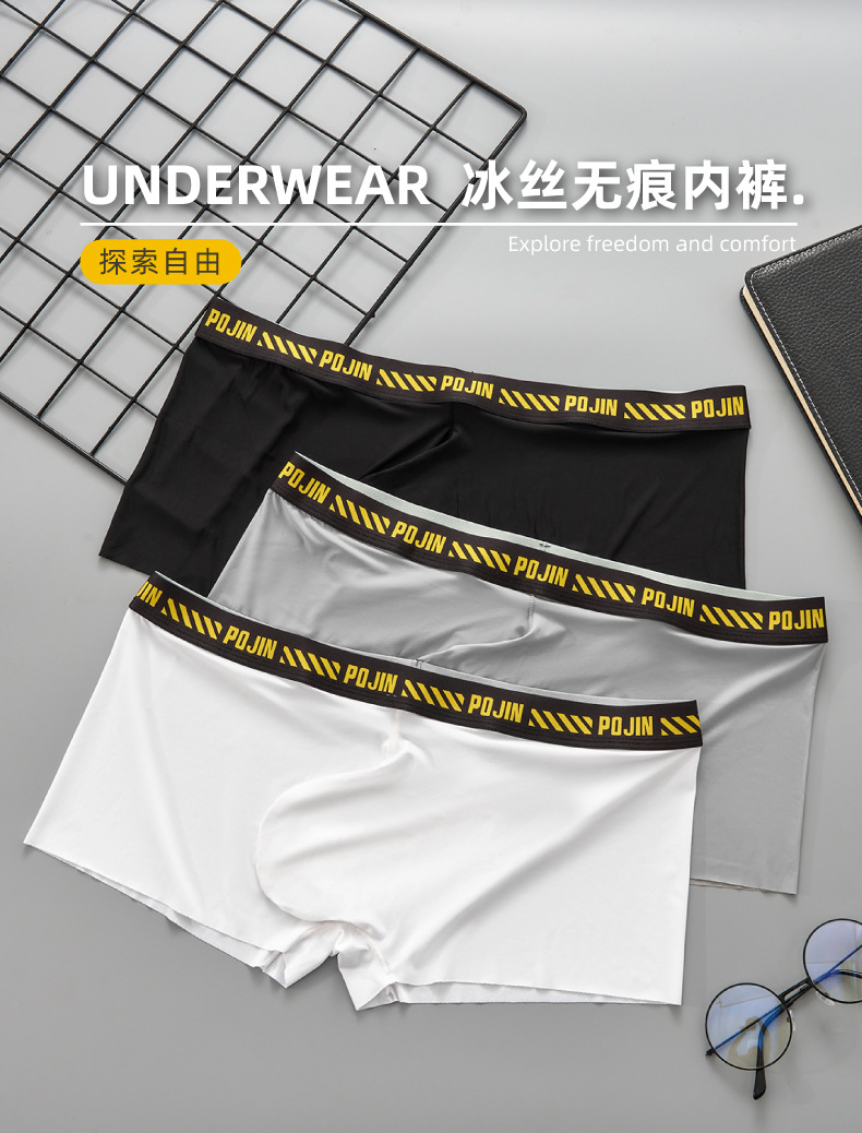 남성용 무봉제 얇은 아이스 실크 단층 U형 포켓 로우 웨이스트 사각 팬티 통기성 좋고 편안함