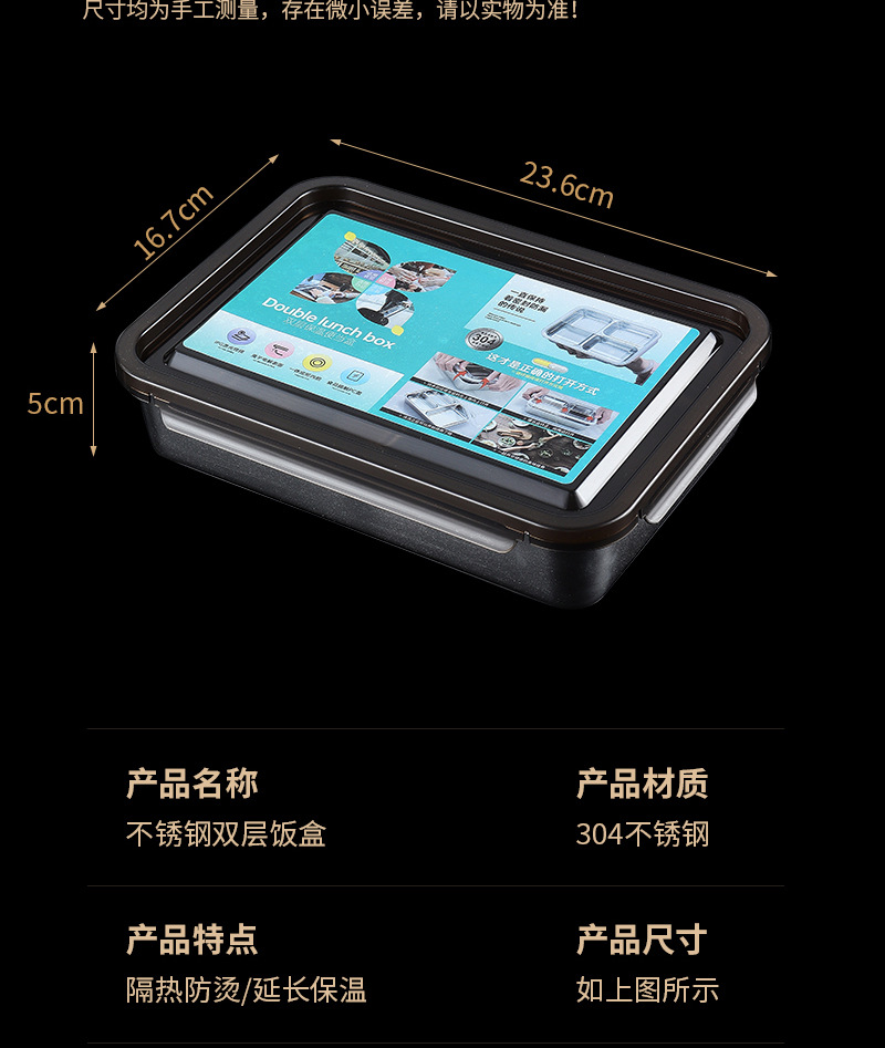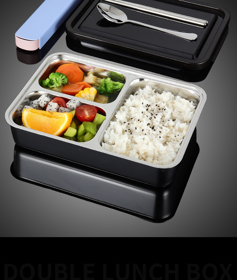 식품 학년 304 스테인리스 디너 플레이트 2 층 칸막이 도시락 학생 매점 패스트 푸드 플레이트 누수 방지 핫 방지 도시락
