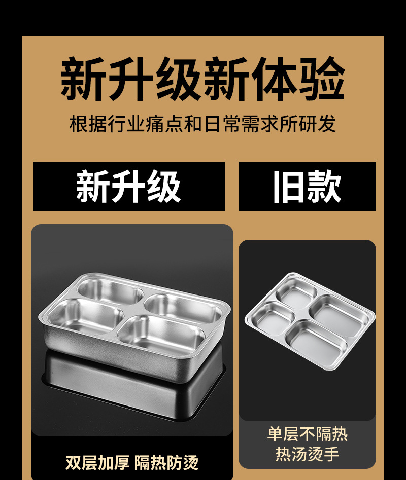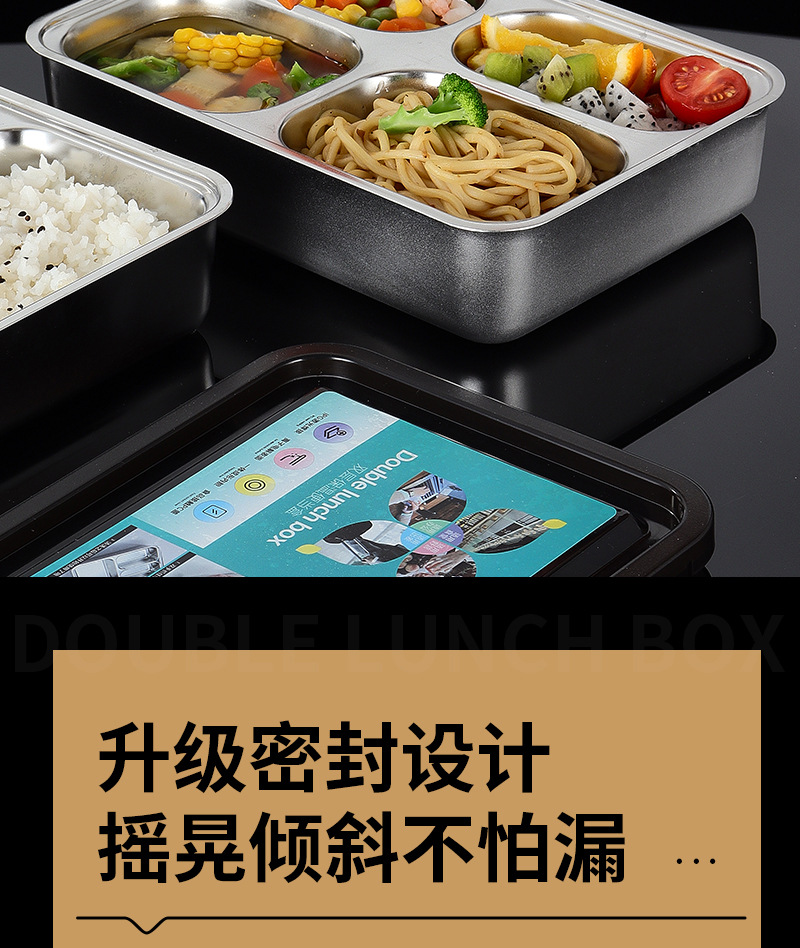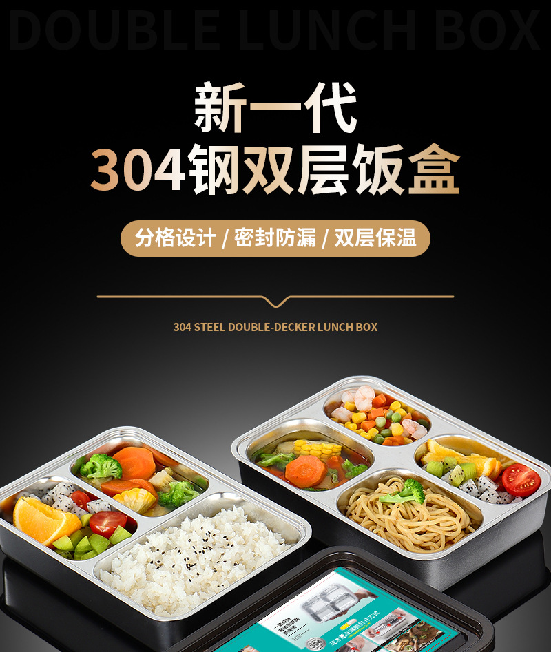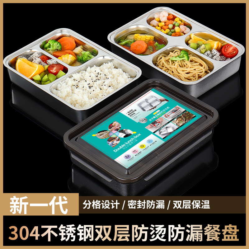 식품 학년 304 스테인리스 디너 플레이트 2 층 칸막이 도시락 학생 매점 패스트 푸드 플레이트 누수 방지 핫 방지 도시락스토어 가기