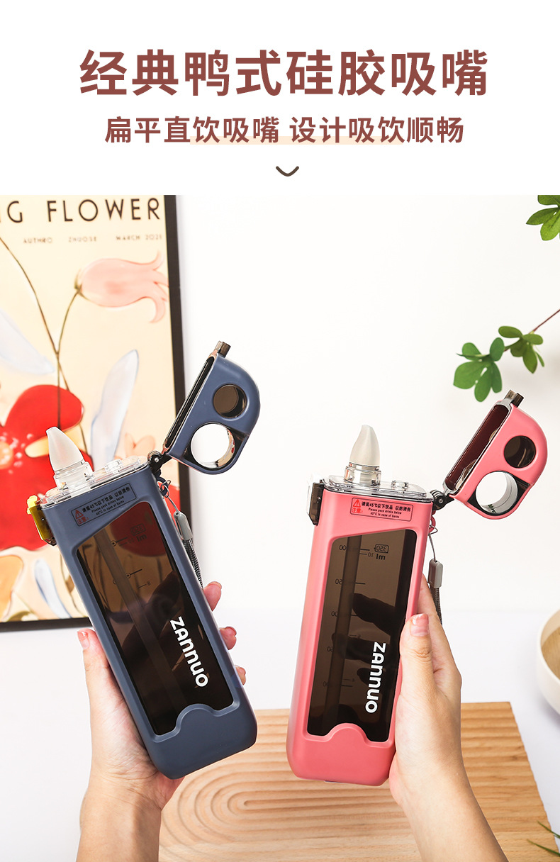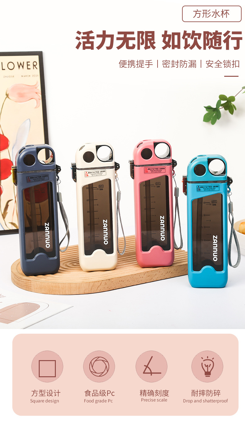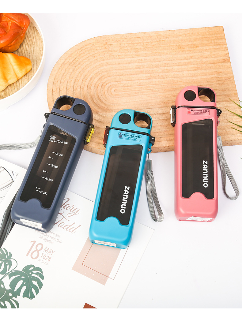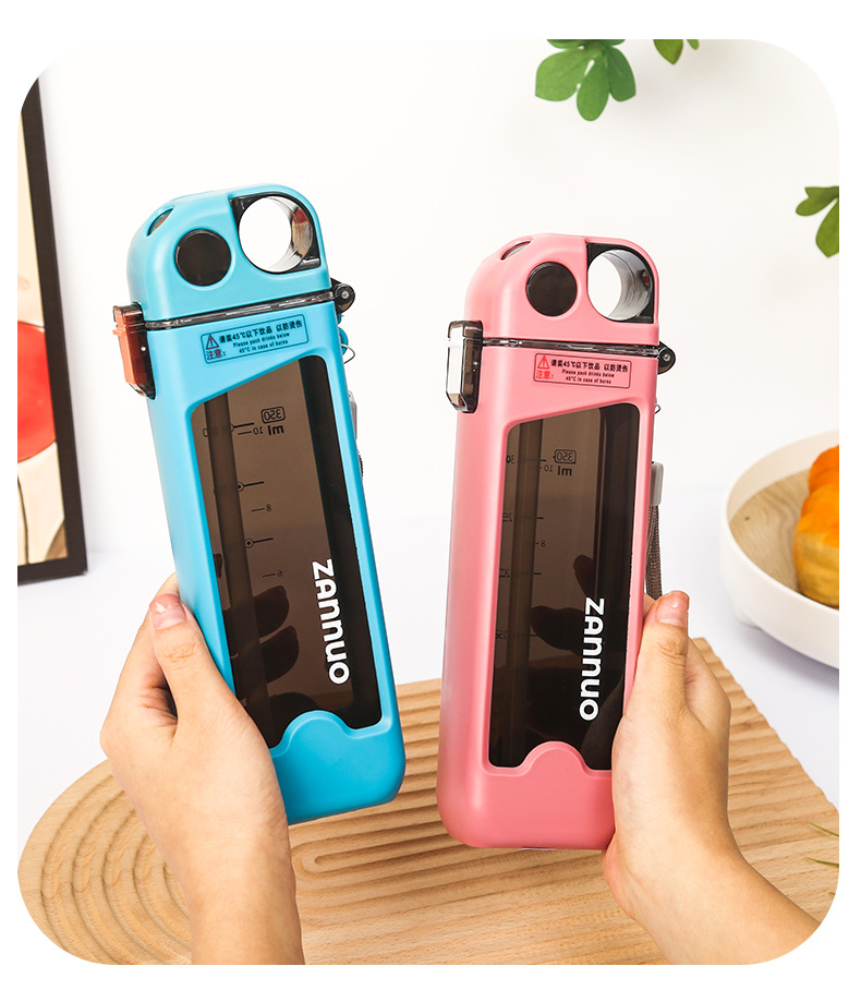 개인화 된 플라스틱 컵 휴대용 컵 편리한 컵 뚜껑 트렌드 플랫 스포츠 빨대 컵