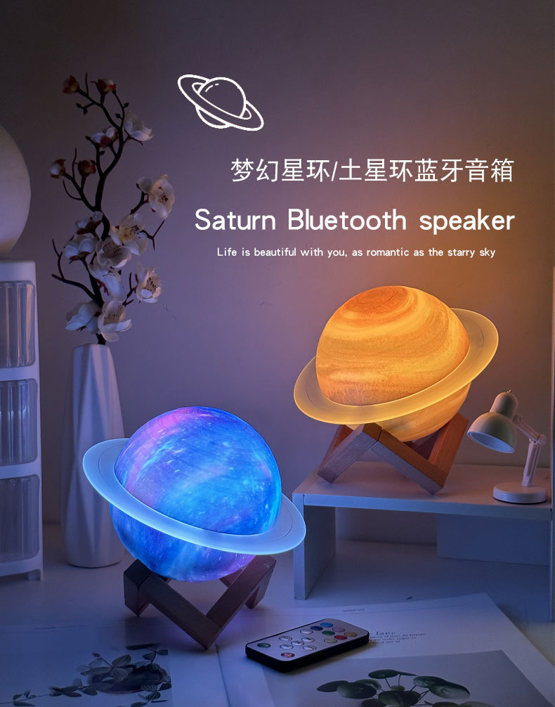 토성 링 블루투스 스피커 플래닛 라이트 데스크탑 크리에이티브 선물 빛나는 무선 장식품 서브 우퍼 야간 조명 오디오스토어 가기