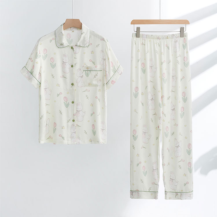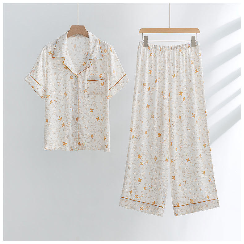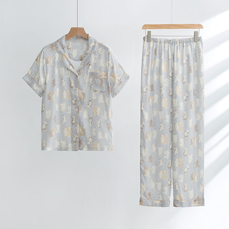 가벼운 깃털 대나무 코튼 거즈 시리즈 긴팔 바지 반팔 바지 간단한 여성 잠옷 세트 홈 옷스토어 가기