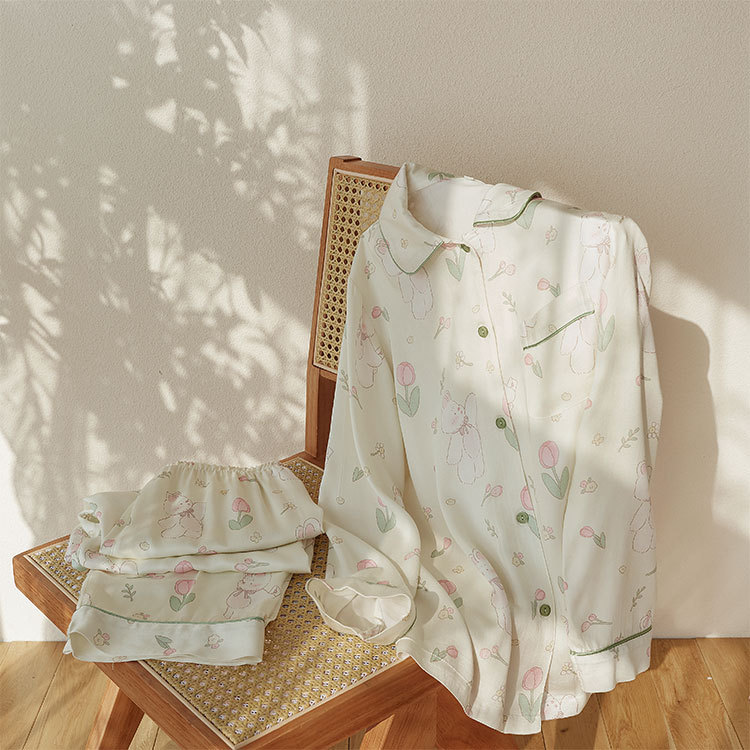 가벼운 깃털 대나무 코튼 거즈 시리즈 긴팔 바지 반팔 바지 간단한 여성 잠옷 세트 홈 옷