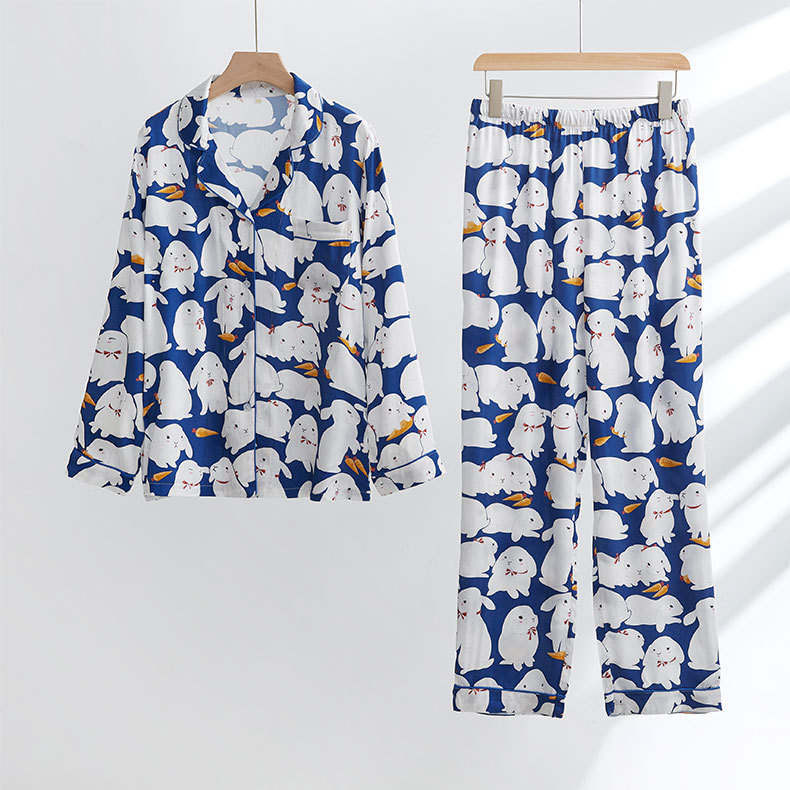 • 대나무면 거즈 187 롱 - 귀여운 토끼 - 딥블루