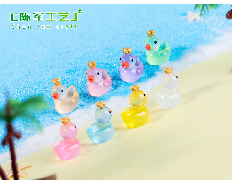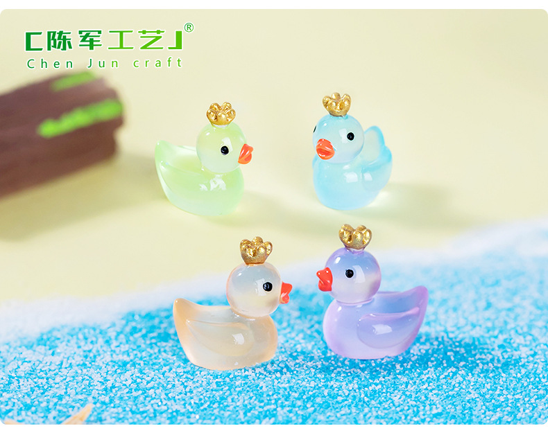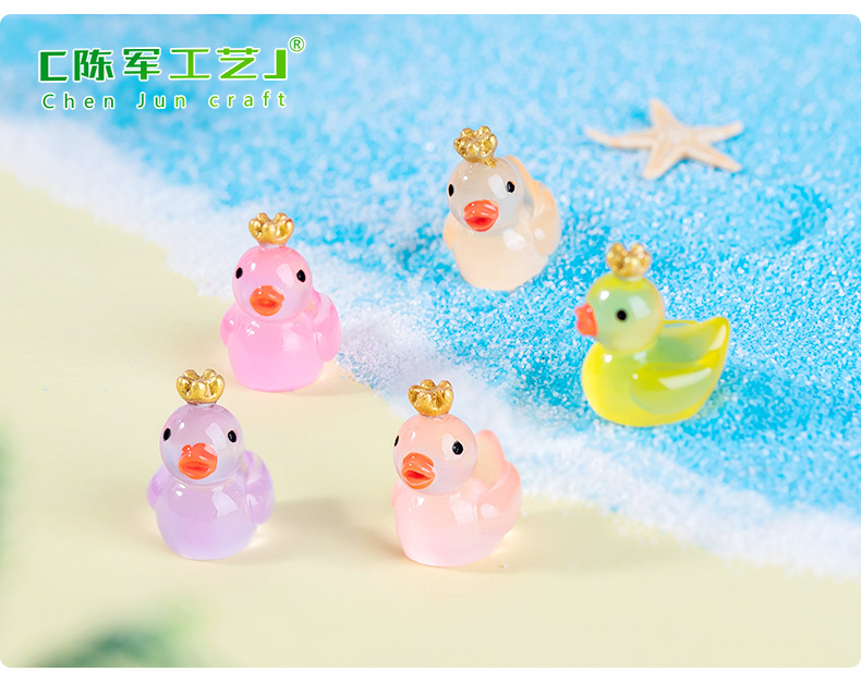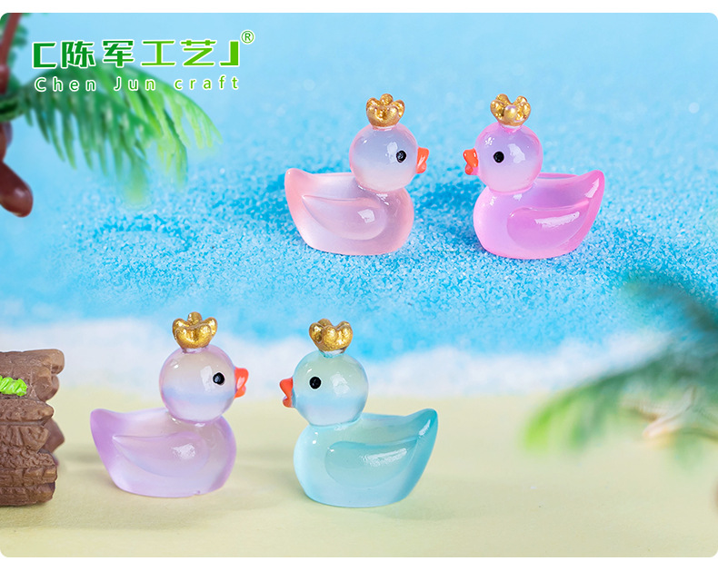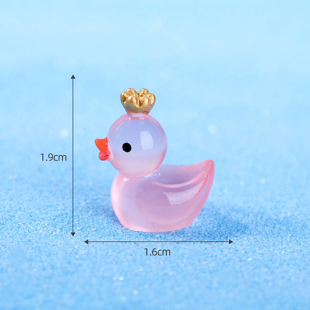 마이크로 풍경 귀여운 빛나는 왕관 노란 오리 인형 이끼 물고기 탱크 조경 액세서리 작은 장식품
