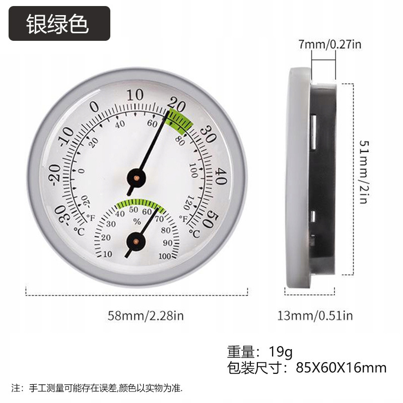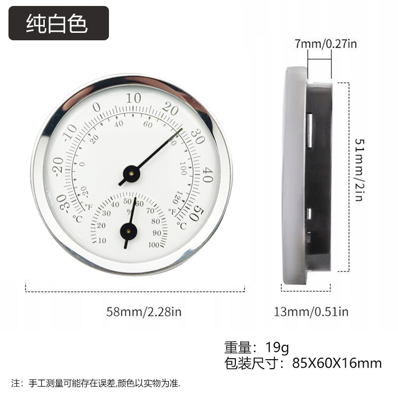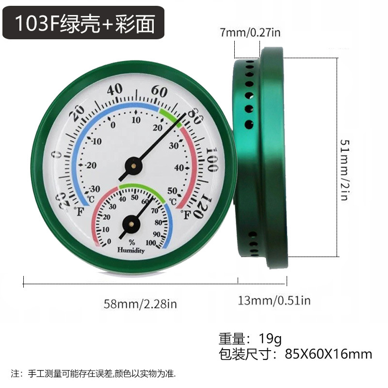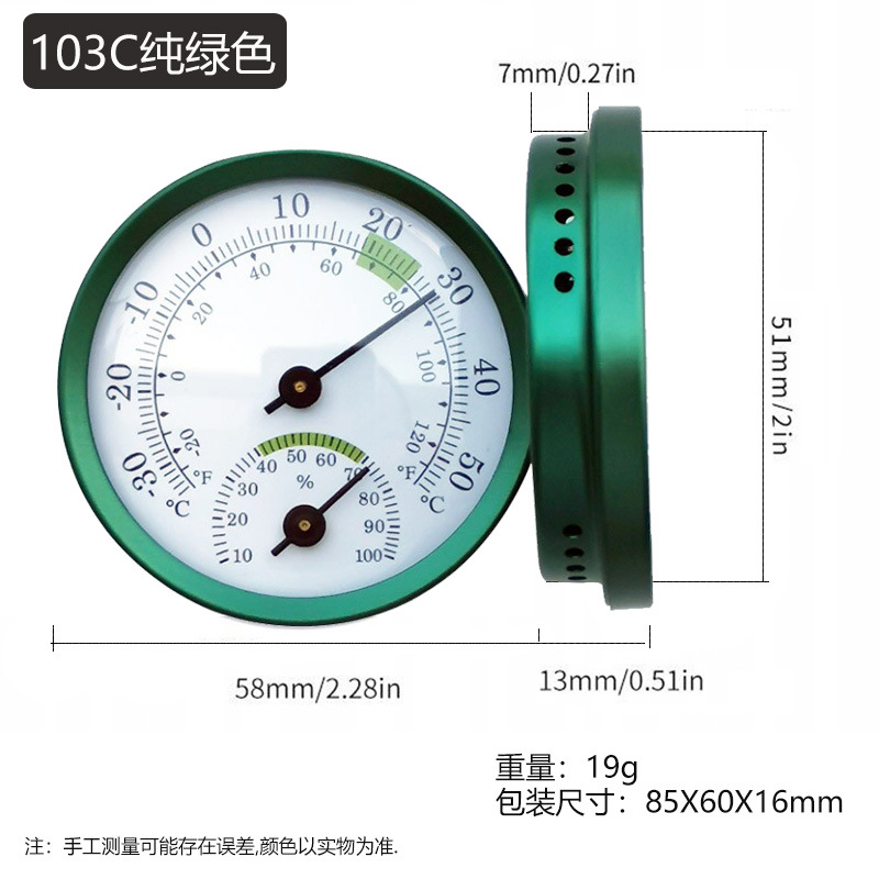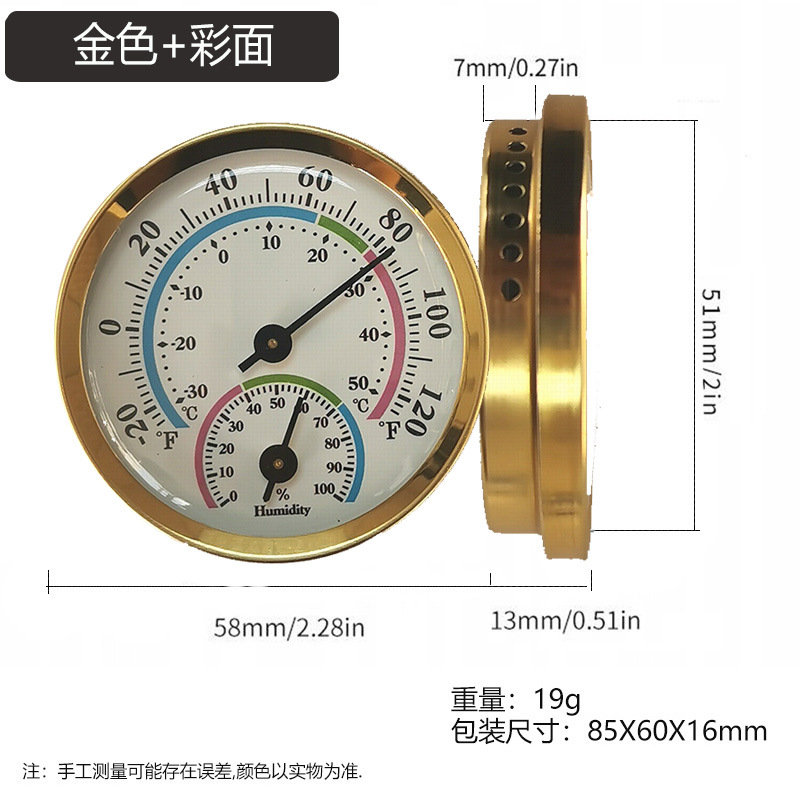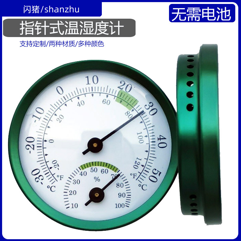 商品名称:微小型迷你指针式温湿度计 铝合金圈,塑料底壳(彩色为全铝合金),塑料透镜