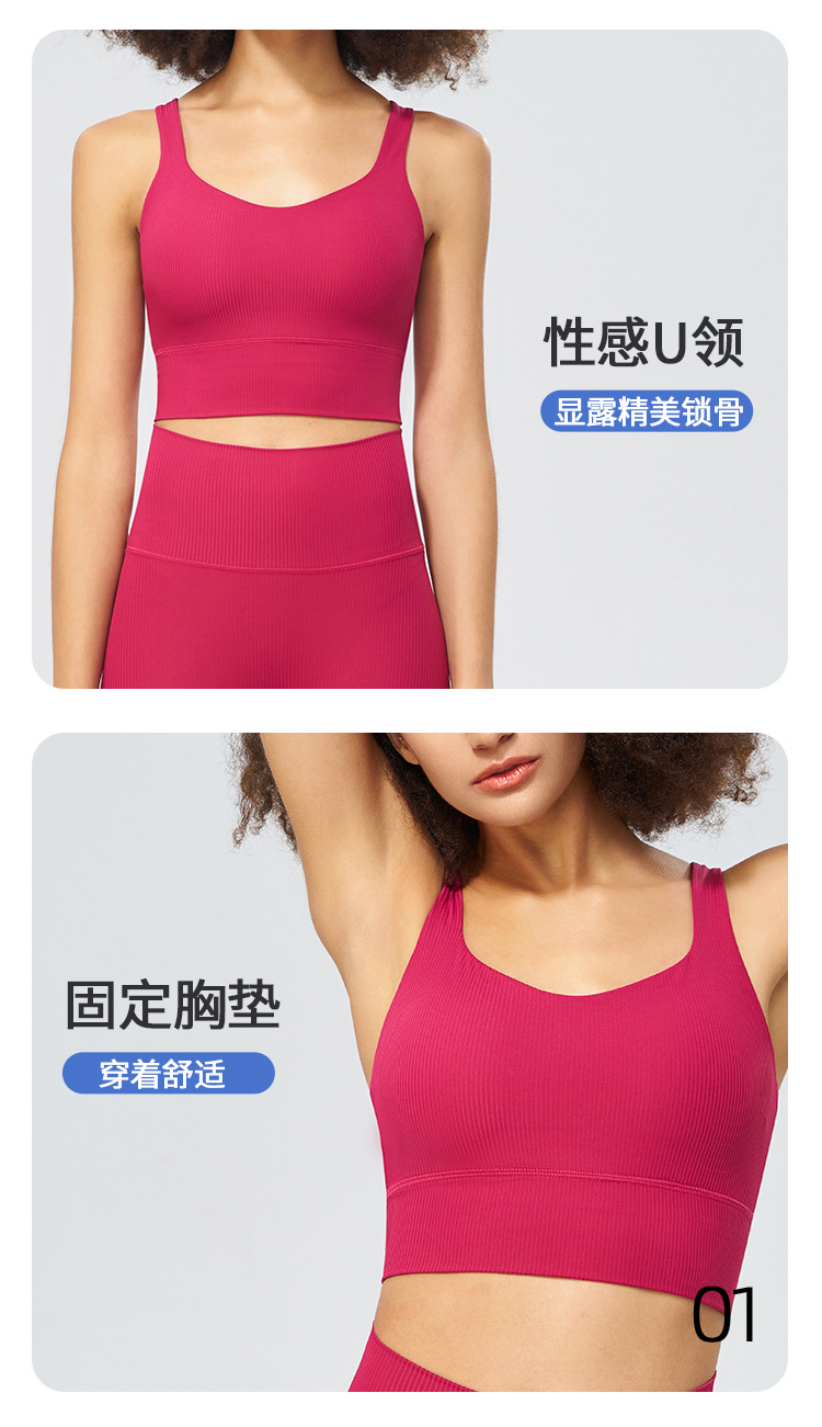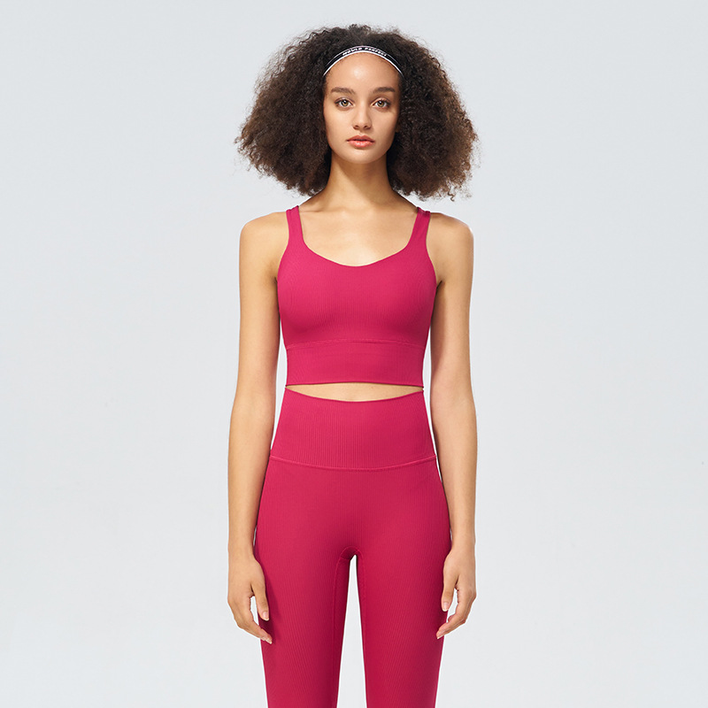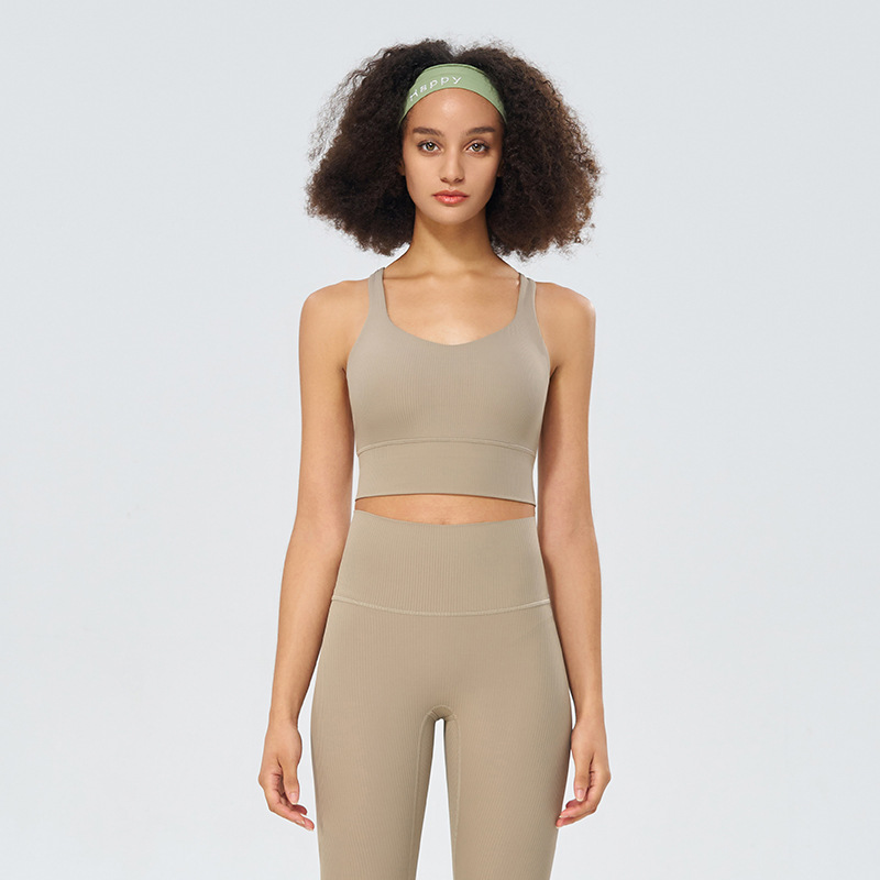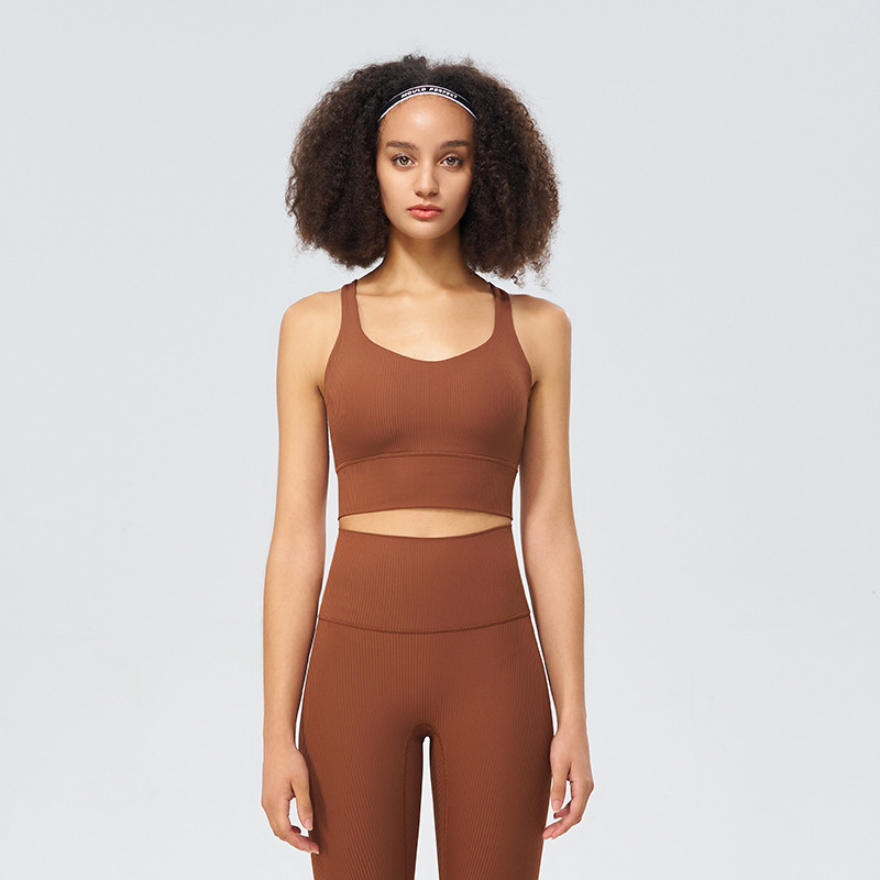 파인 리브 새로운 스포츠 속옷 여성용 고탄성 십자가 아름다운 등 충격 방지 푸시 업 요가 스포츠 브라 피트니스 조끼