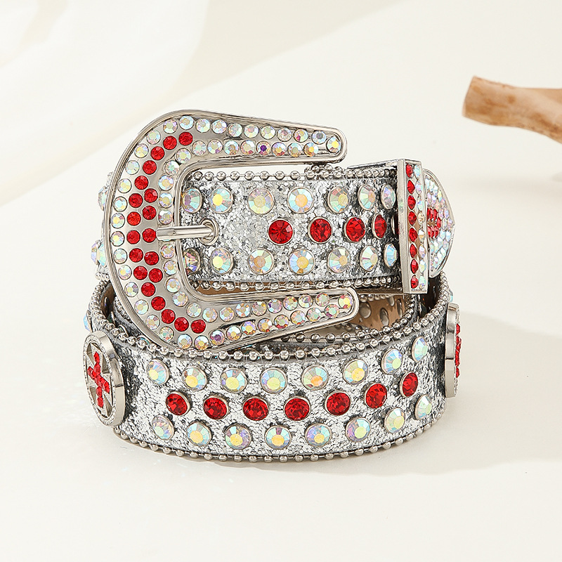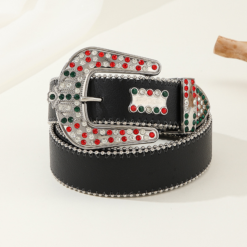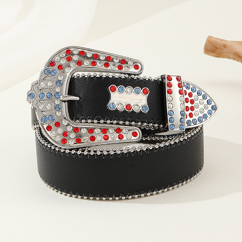 대외 무역 새로운 펑크 힙합 스타일 벨트 남여 공용 핀 버클 모든 일치 데님 스타일 PU 모조 다이아몬드 인조 가죽 벨트