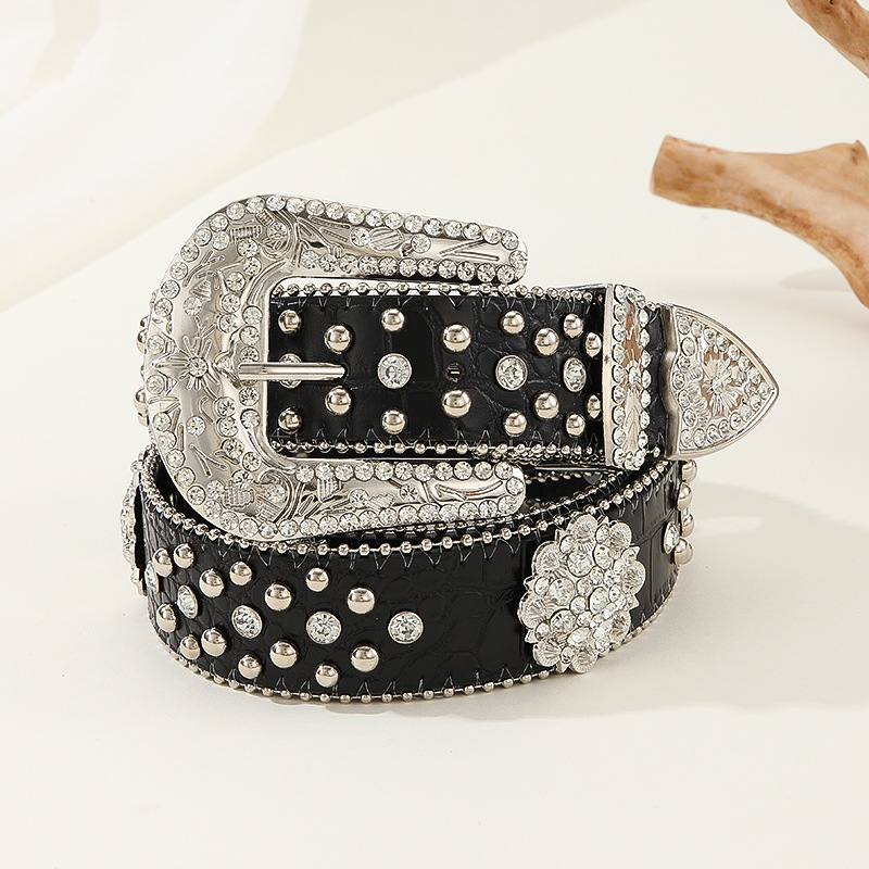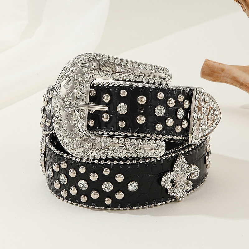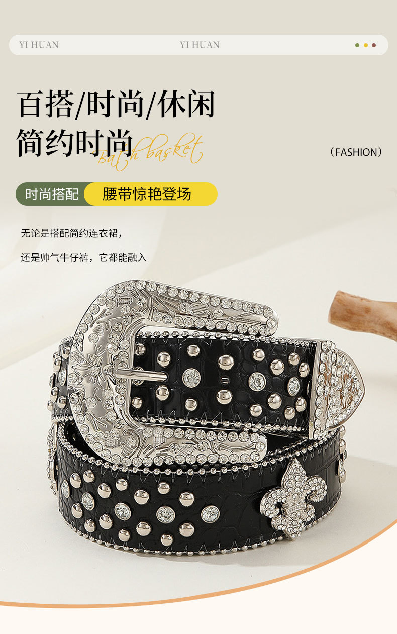 대외 무역 새로운 펑크 힙합 스타일 벨트 남여 공용 핀 버클 모든 일치 데님 스타일 PU 모조 다이아몬드 인조 가죽 벨트스토어 가기