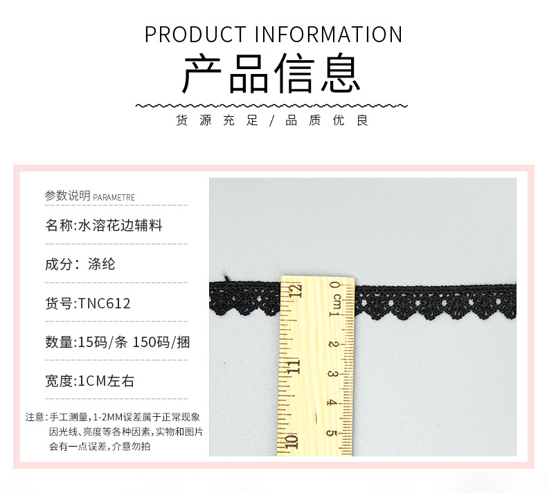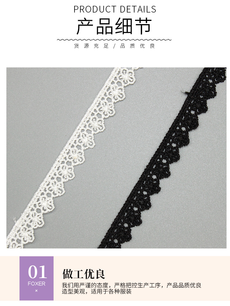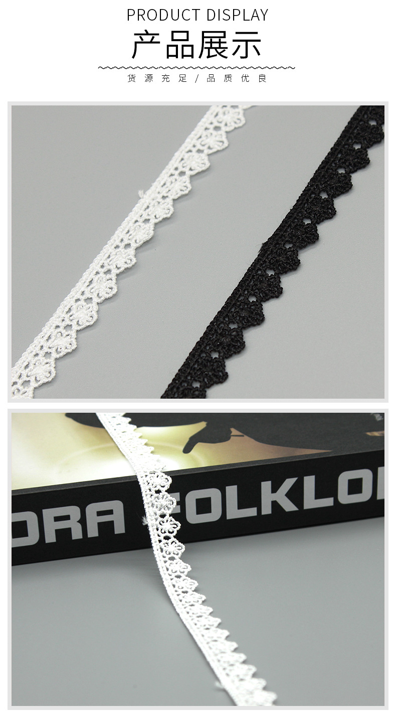 수제 속이 빈 자수 수용성 레이스 1.2cm 홈텍스타일 의류 부자재 흑백 레이스 TNC612
