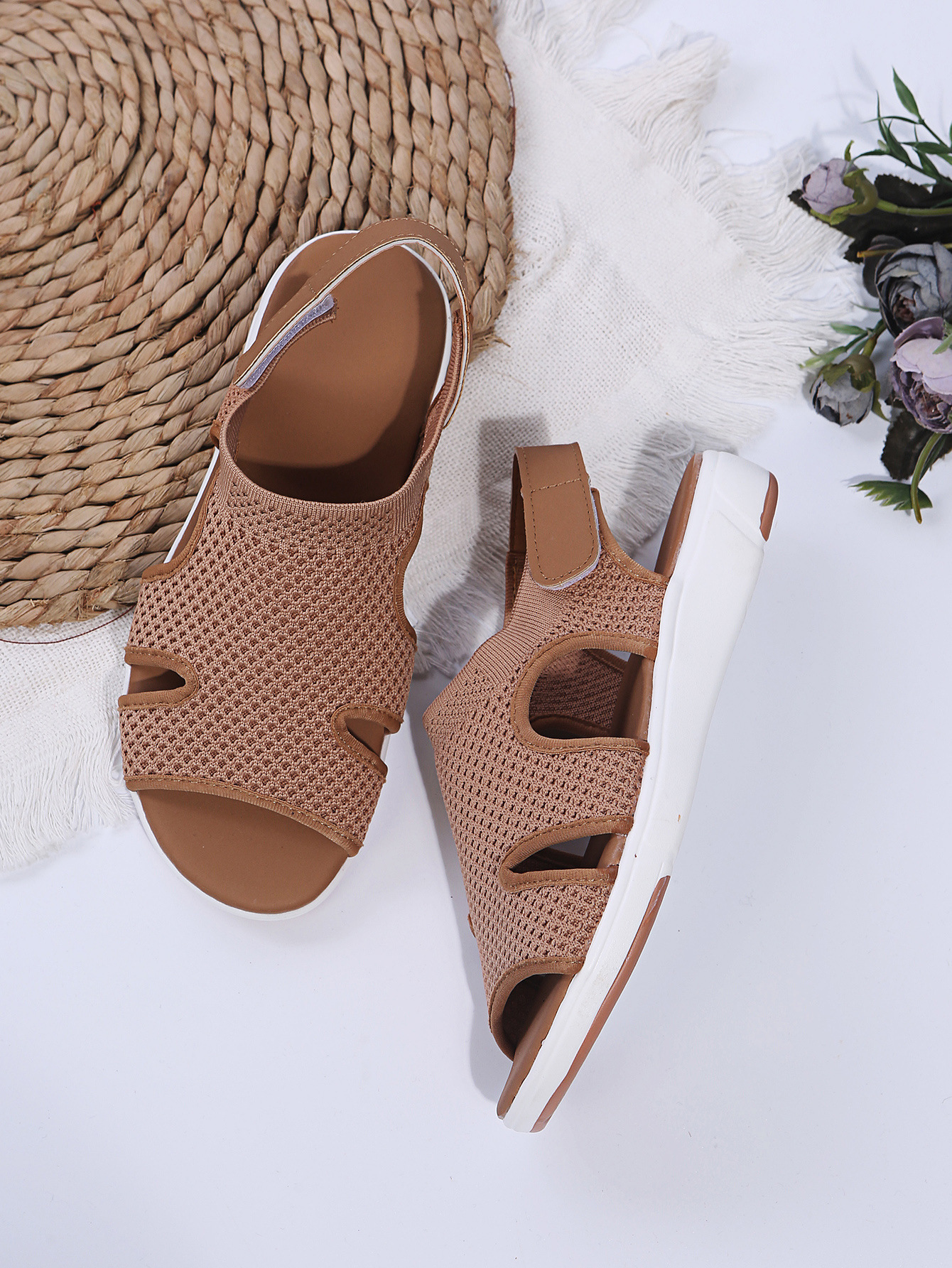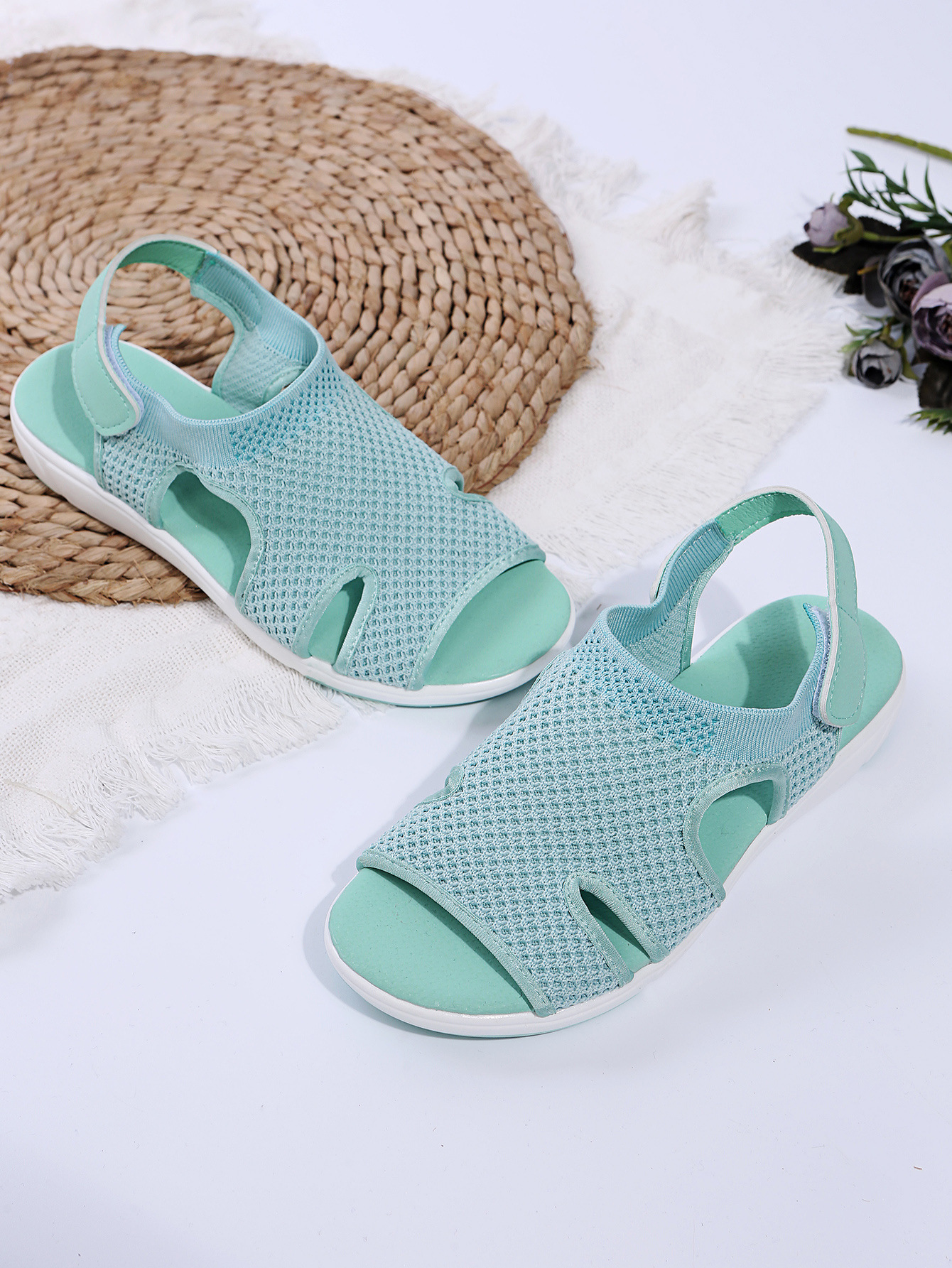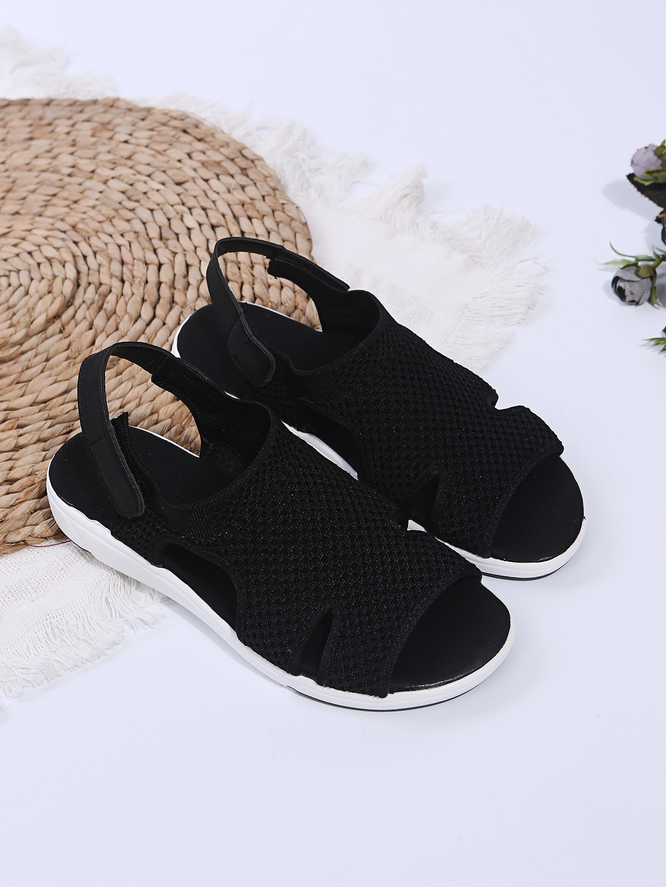 2023 독립 역 여름 통기성 탄성 비행 짠 플랫 캐주얼 여성 신발을 플러스 사이즈 새로운 유럽과 미국 여성 샌들
