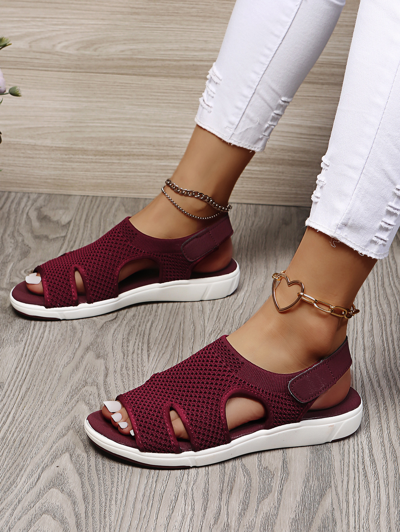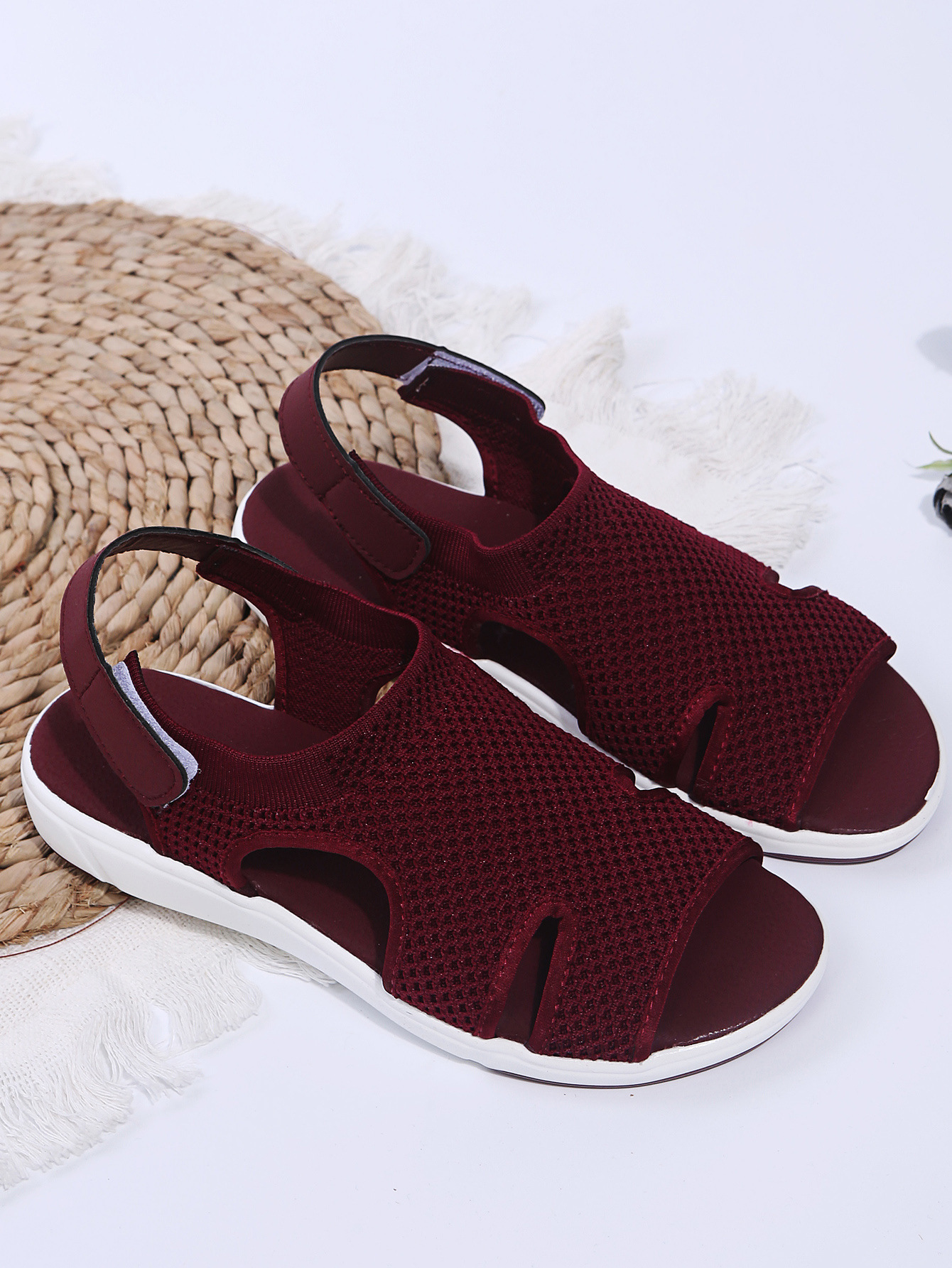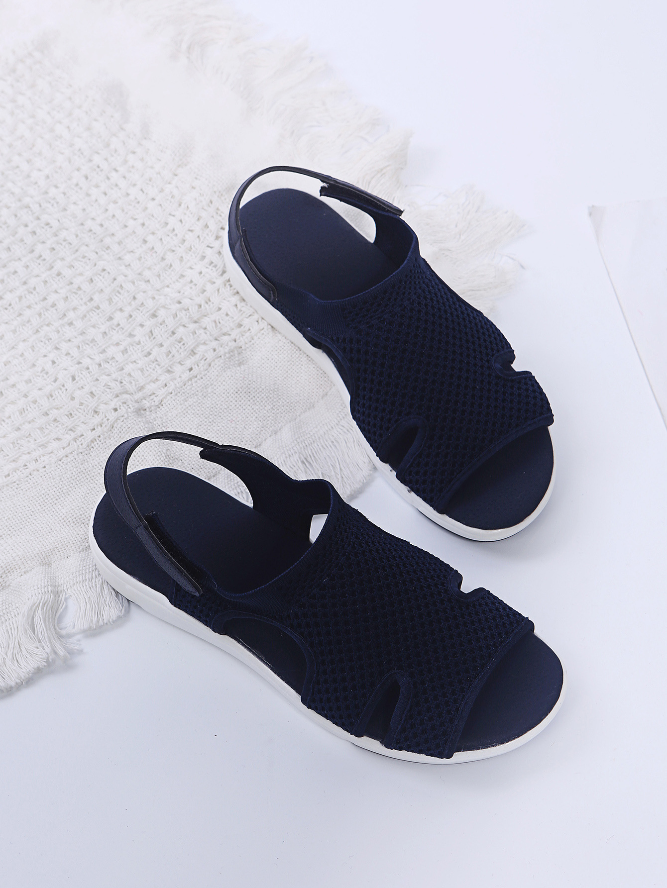2023 독립 역 여름 통기성 탄성 비행 짠 플랫 캐주얼 여성 신발을 플러스 사이즈 새로운 유럽과 미국 여성 샌들