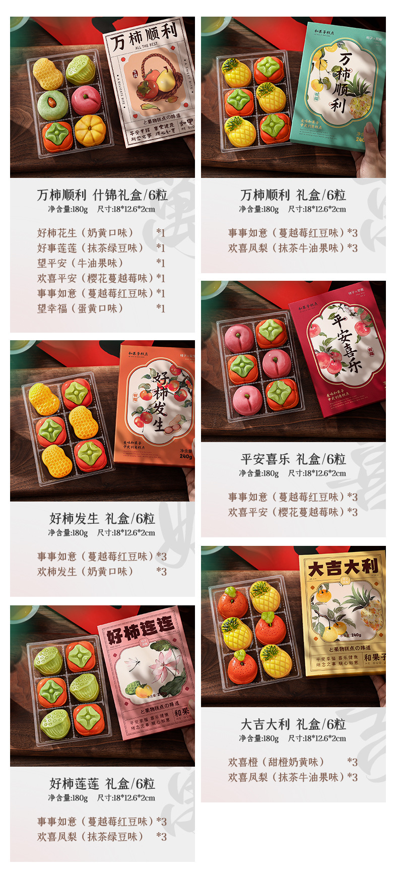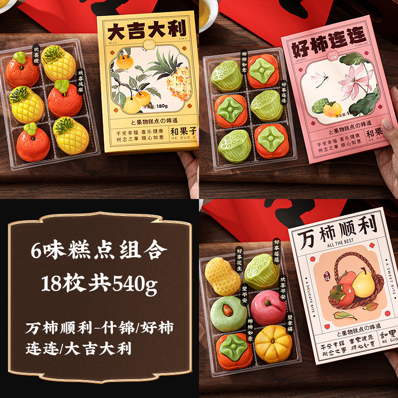 • [6 가지 맛 페이스트리 조합-18 개, 총 540g] 10,000 개의 감은 매끈한 모듬 + 좋은 감을 반복해서 + 행운을 빕니다