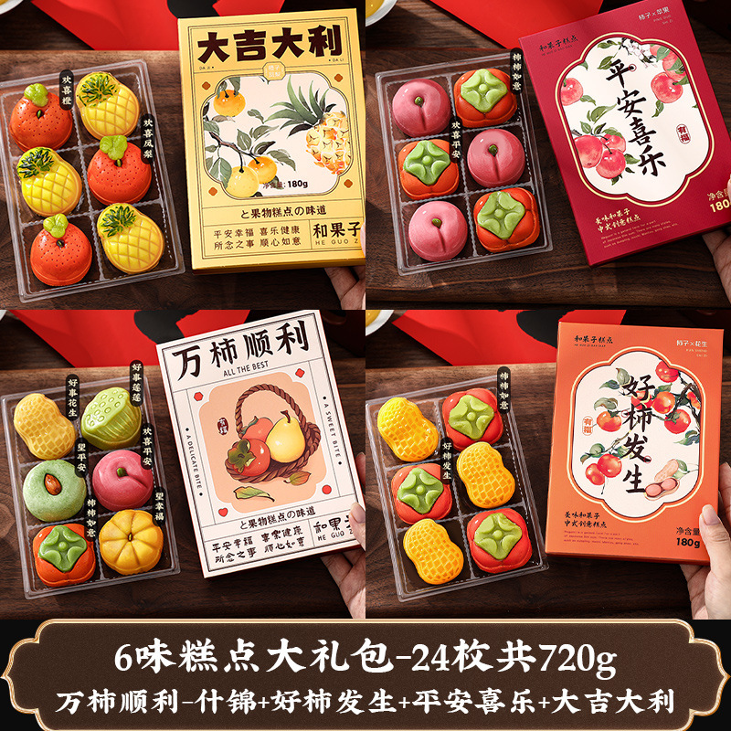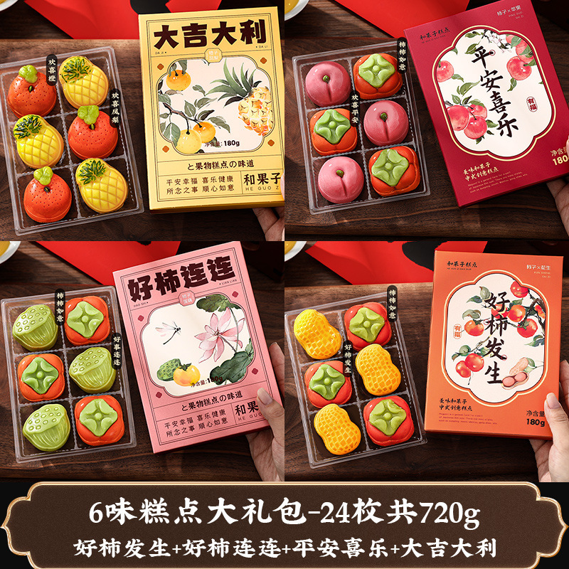 • [5 가지 맛 페이스트리 선물 가방-24 개, 총 720g] 10,000 개의 감 부드럽게 + 좋은 감 발생 + 평화와 기쁨 + 행운