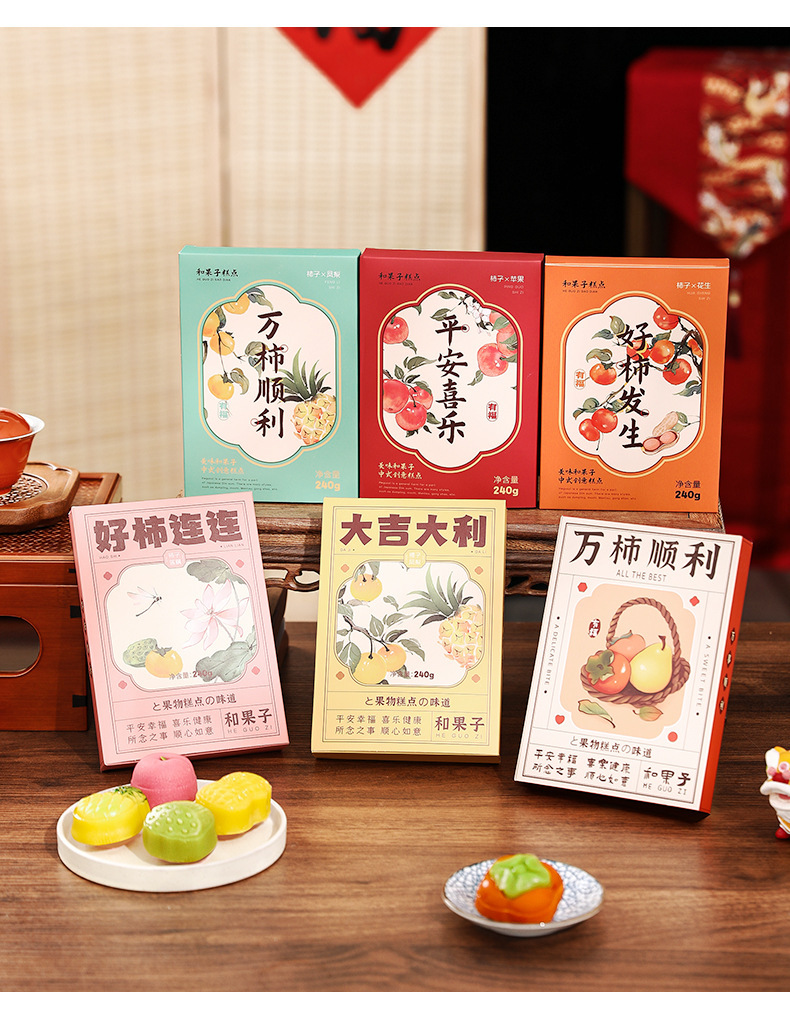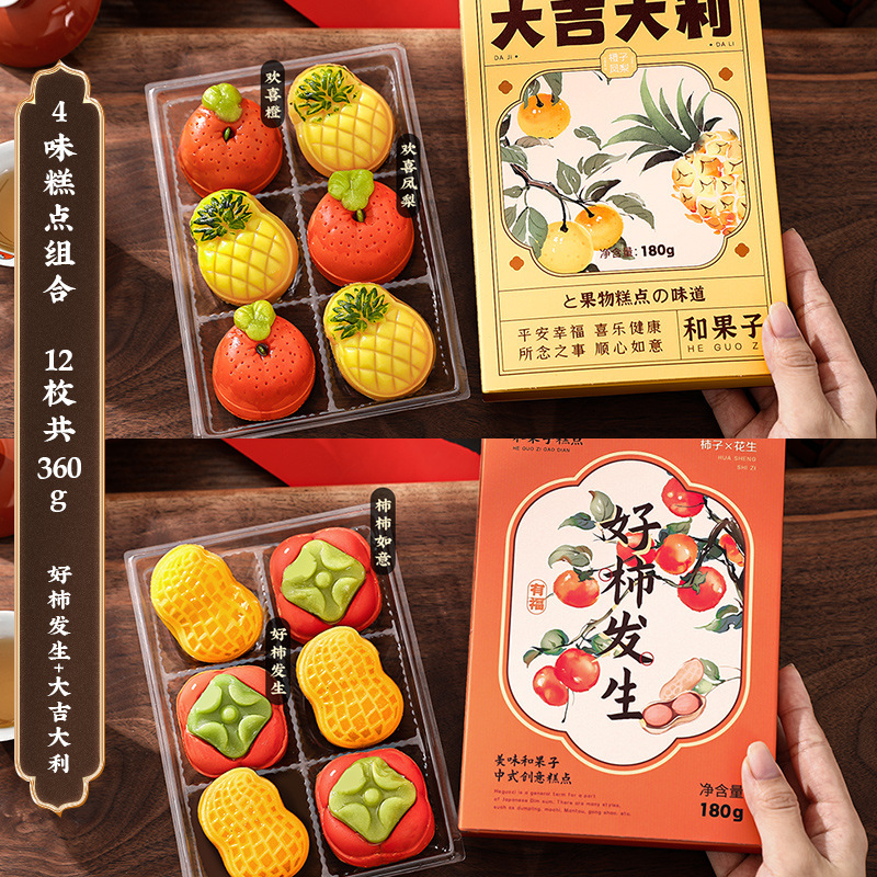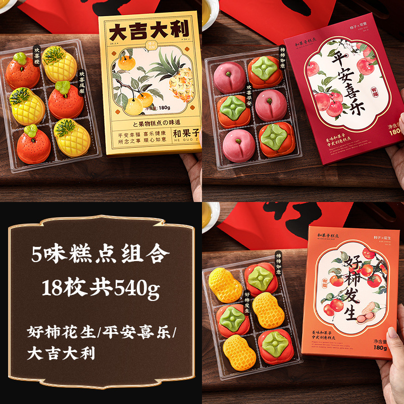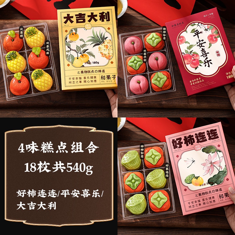 • [4 맛 생과자 조합-18 개, 총 540g] 좋은 감 반복 + 평화와 기쁨 + 행운