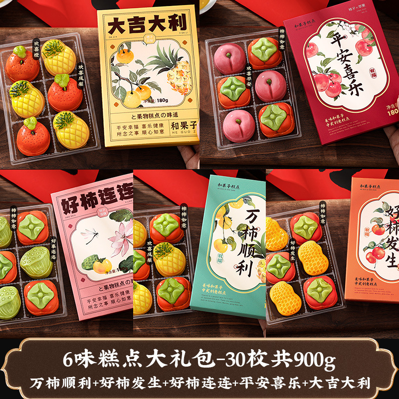 • [6 가지 맛 페이스트리 가치 선물 패키지-총 900g 의 30 개] 10,000 개의 감이 부드럽게 모듬 + 좋은 감이 생김 + 좋은 감이 반복됨 + 평화와 기쁨 + 행운