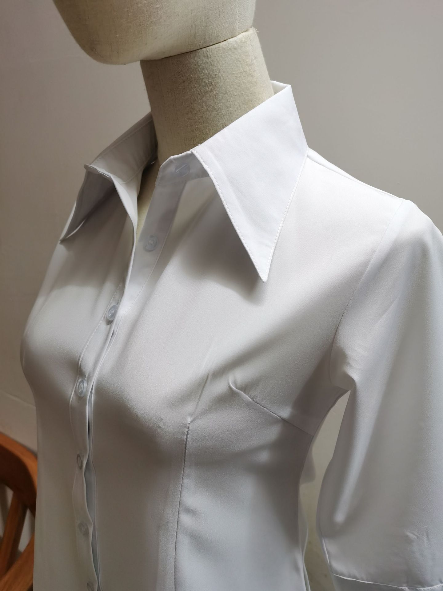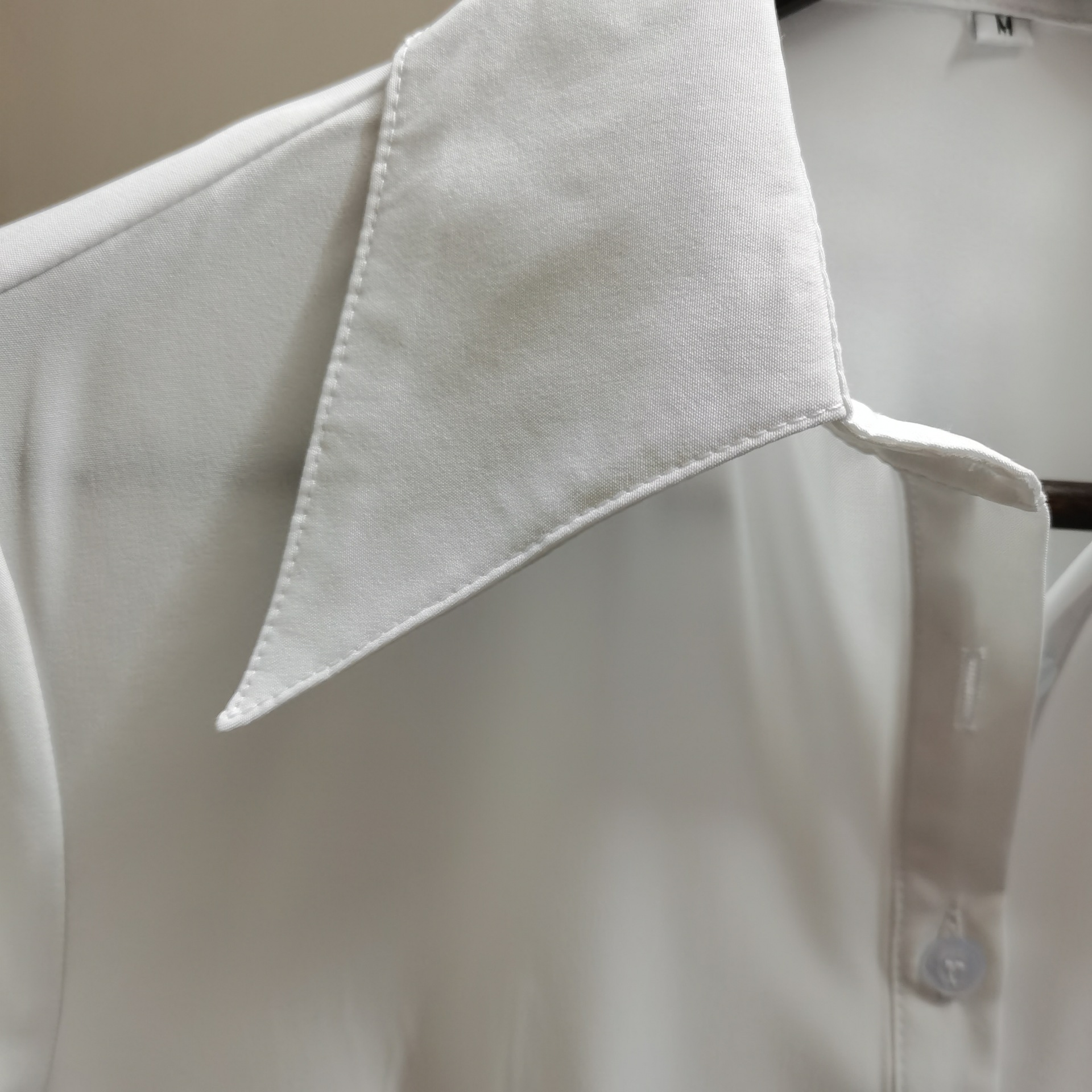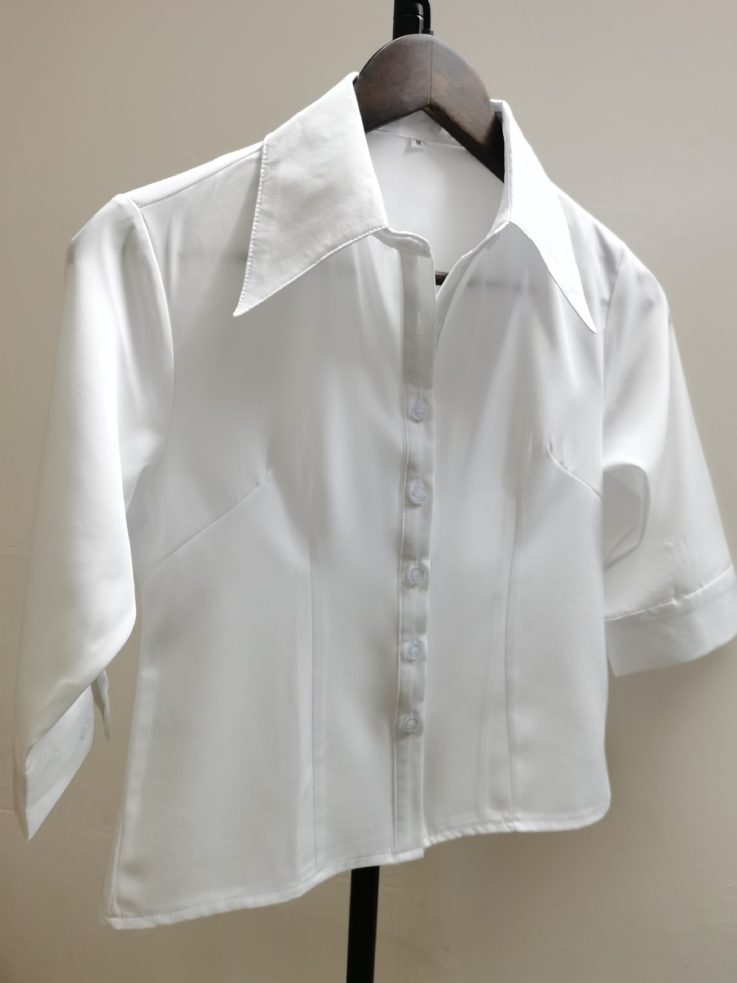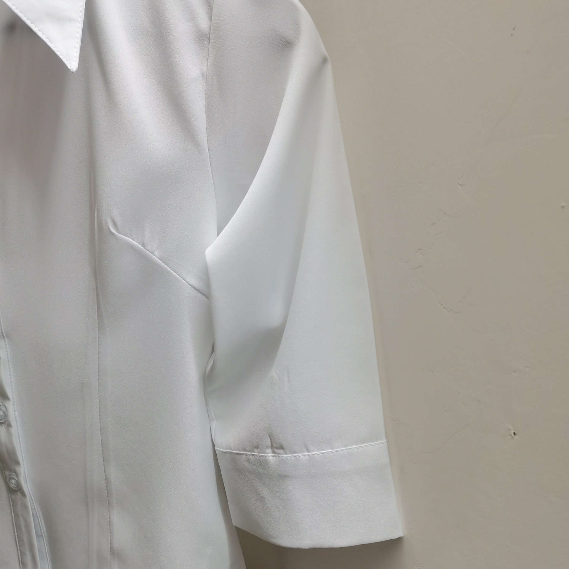 흰색 반 소매 셔츠 여성용 여름 얇은 디자인 모든 매치 슬림핏 미들 슬리브 셔츠 경력 통근 인터뷰 탑스토어 가기