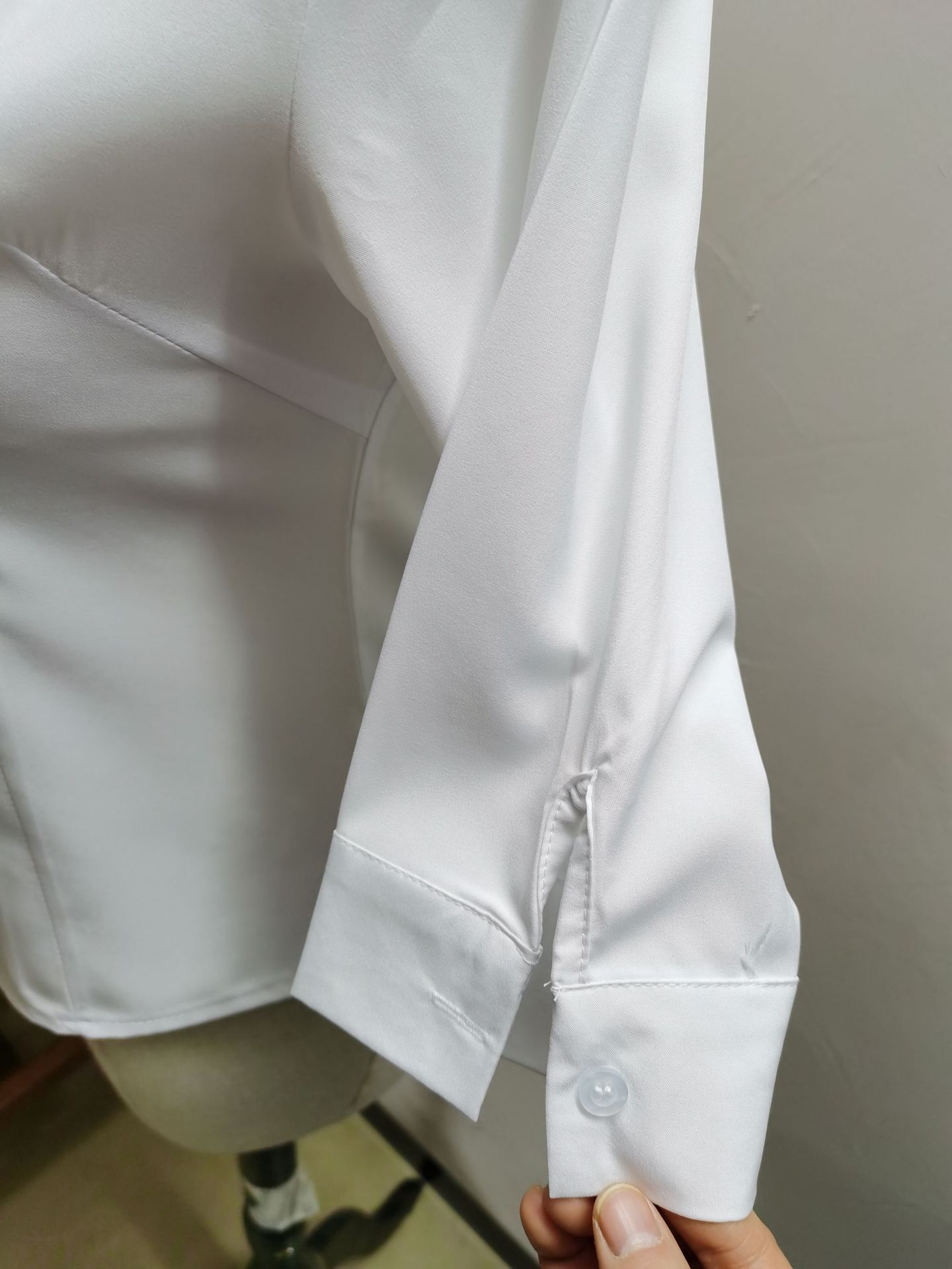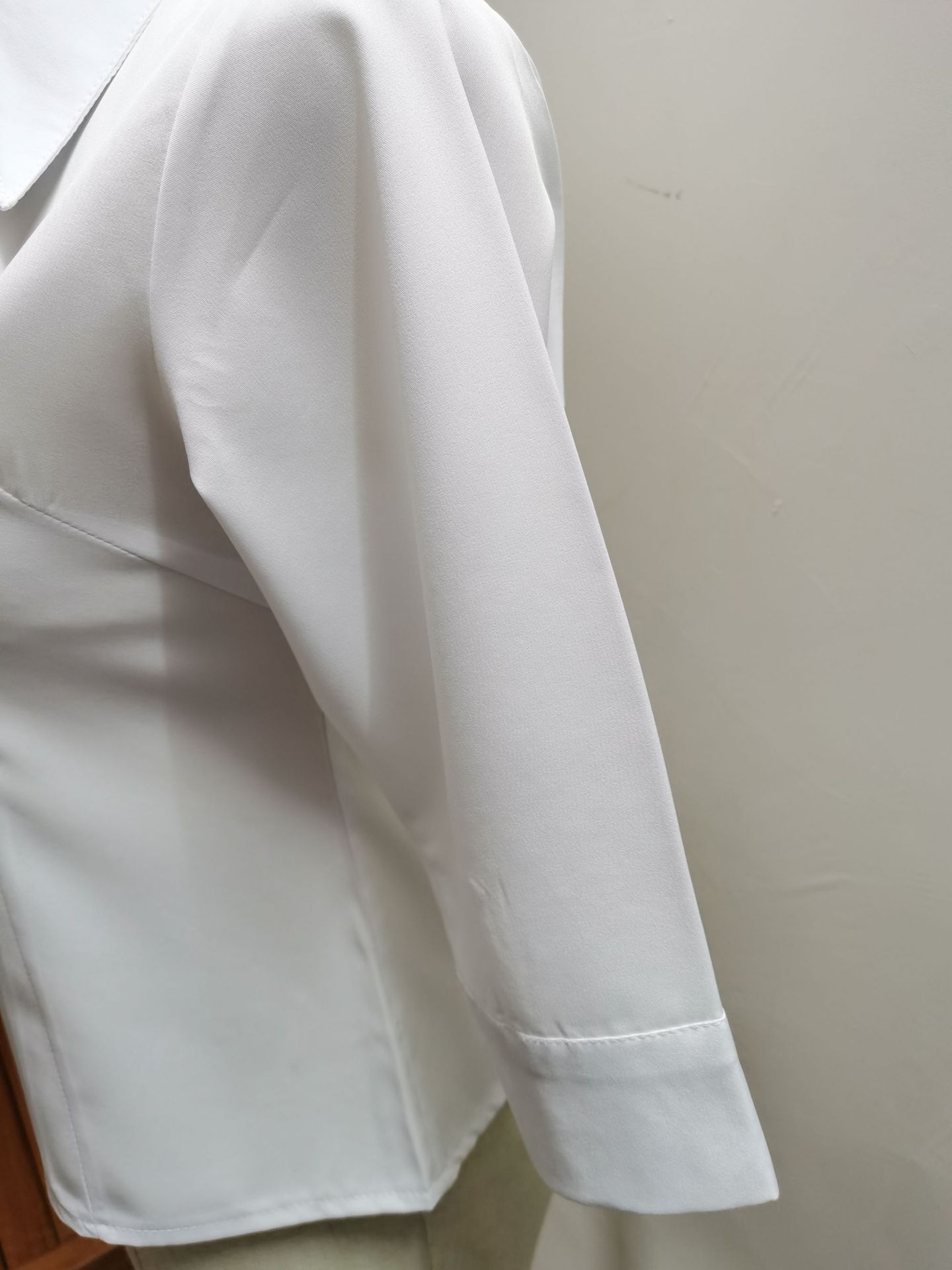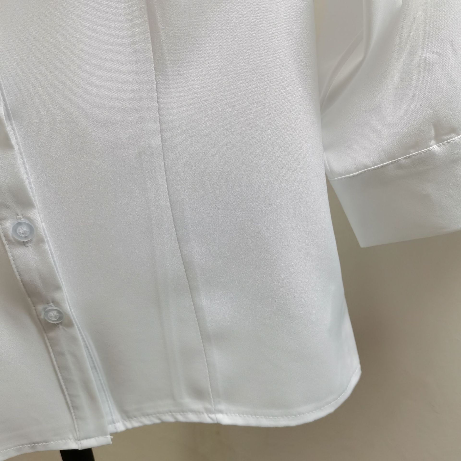 흰색 반 소매 셔츠 여성용 여름 얇은 디자인 모든 매치 슬림핏 미들 슬리브 셔츠 경력 통근 인터뷰 탑
