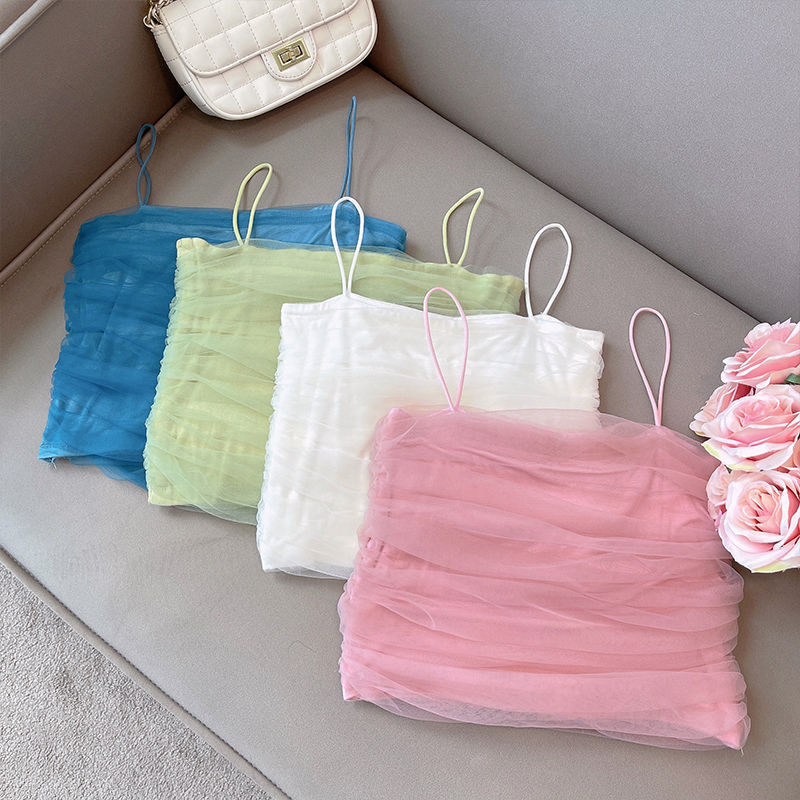 여름 여아 조끼 슬링 아기 세련된 어린이 개인 유행 한국 스타일 달콤한 메쉬 캔디 색상 겉옷 탑스토어 가기