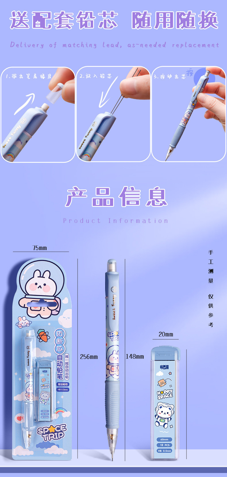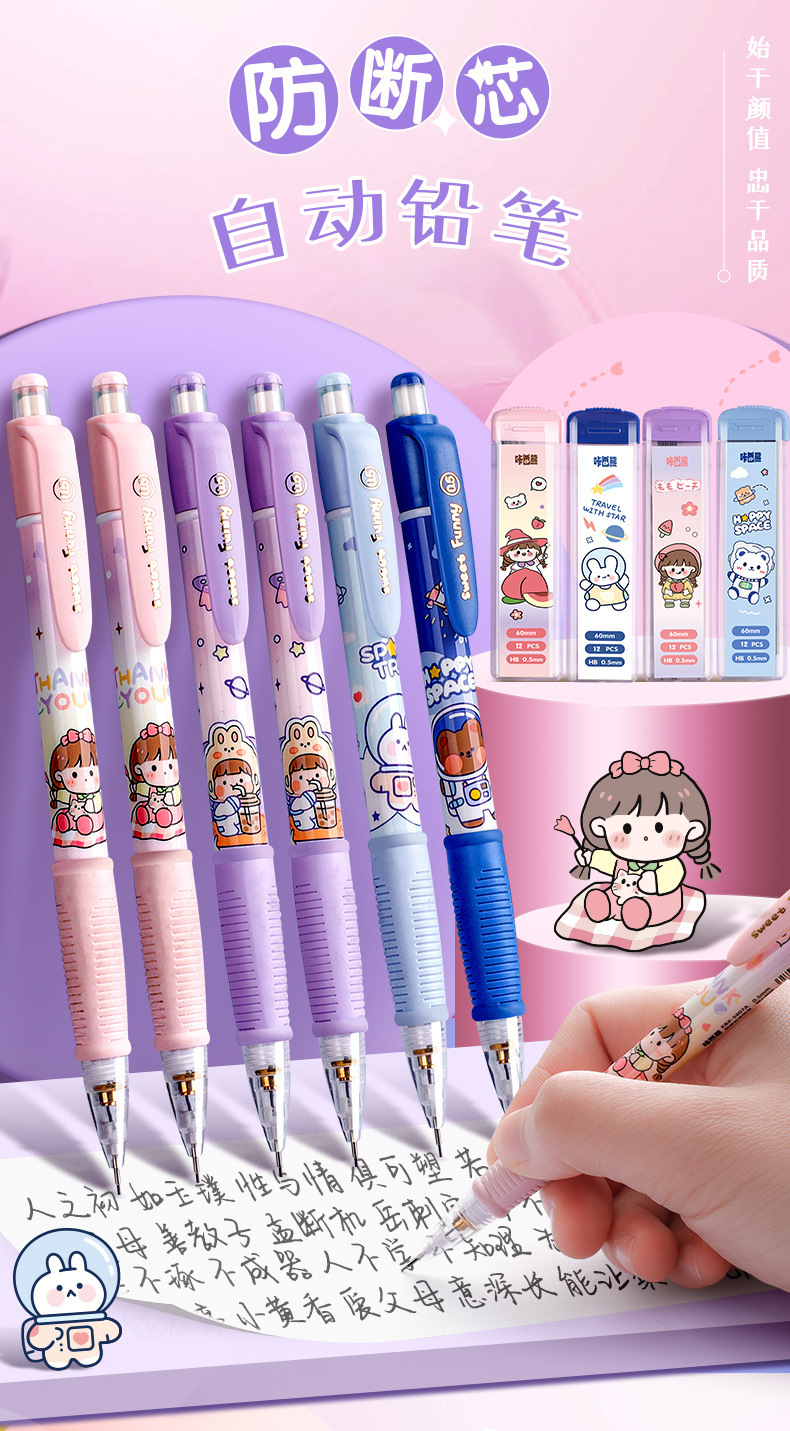 초등학생을위한 새로운 만화 깨진 방지 코어 자동 연필 귀여운 바람 벨트 고무 자동 코어 쉐이크 펜스토어 가기