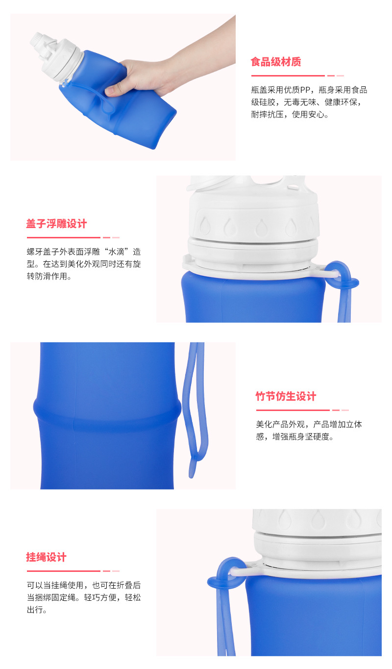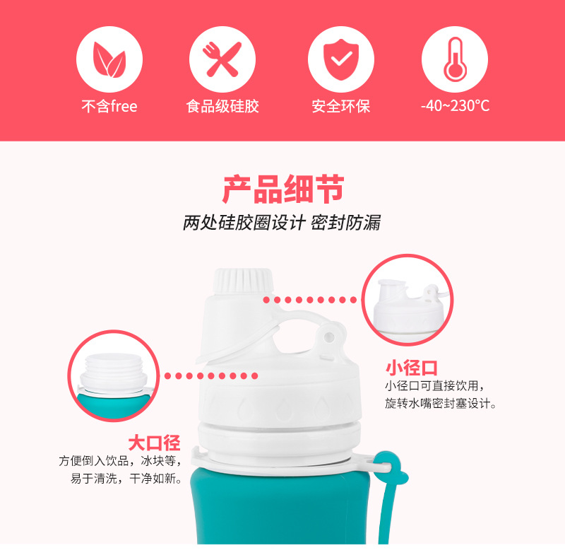 스포츠 실리콘 물 컵 휴대용 음료수 병 접이식 물병 야외 음료수 여행 등산 대용량 물 가방