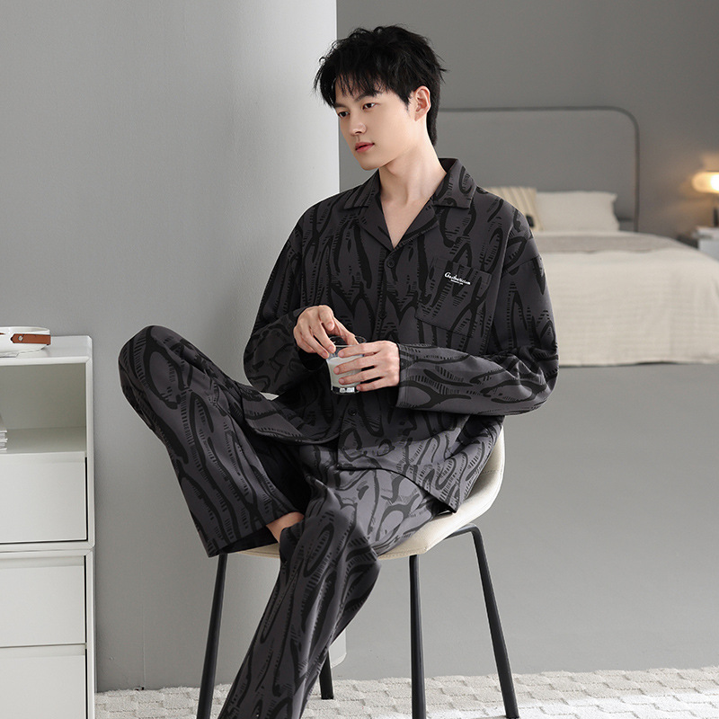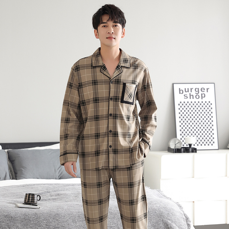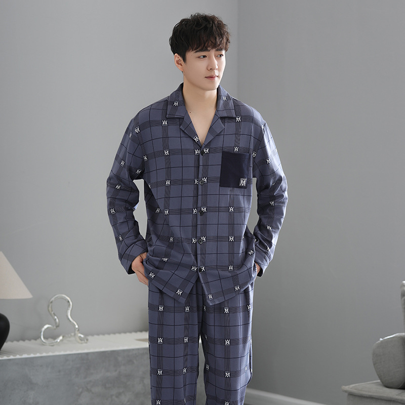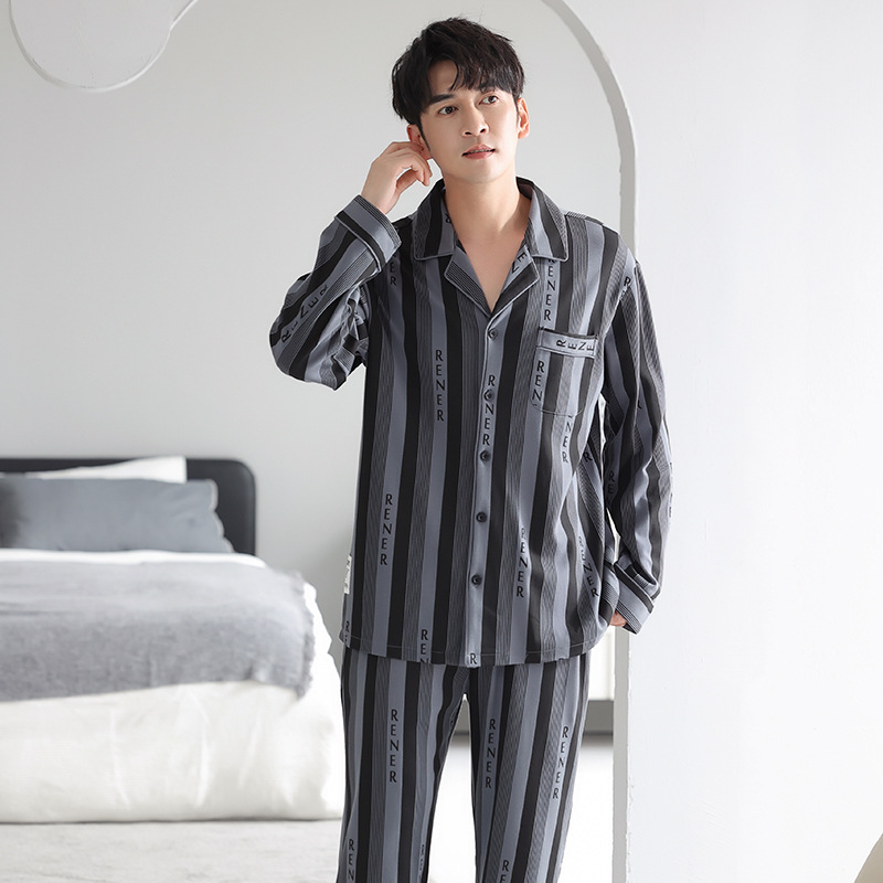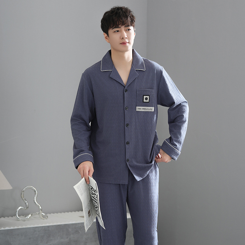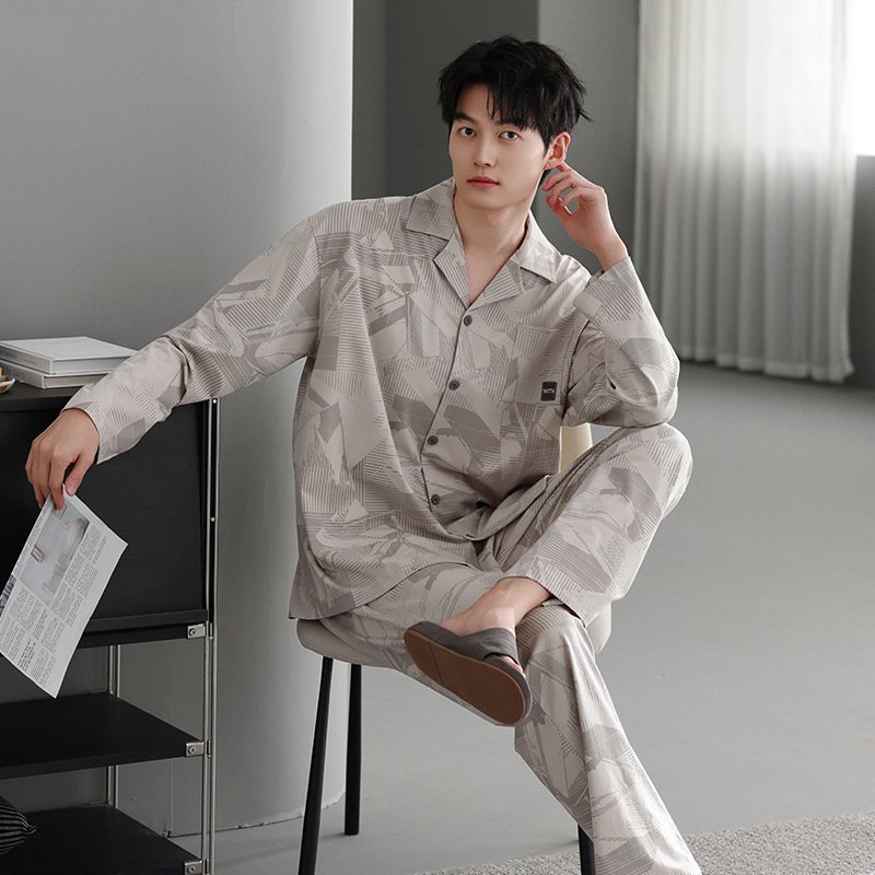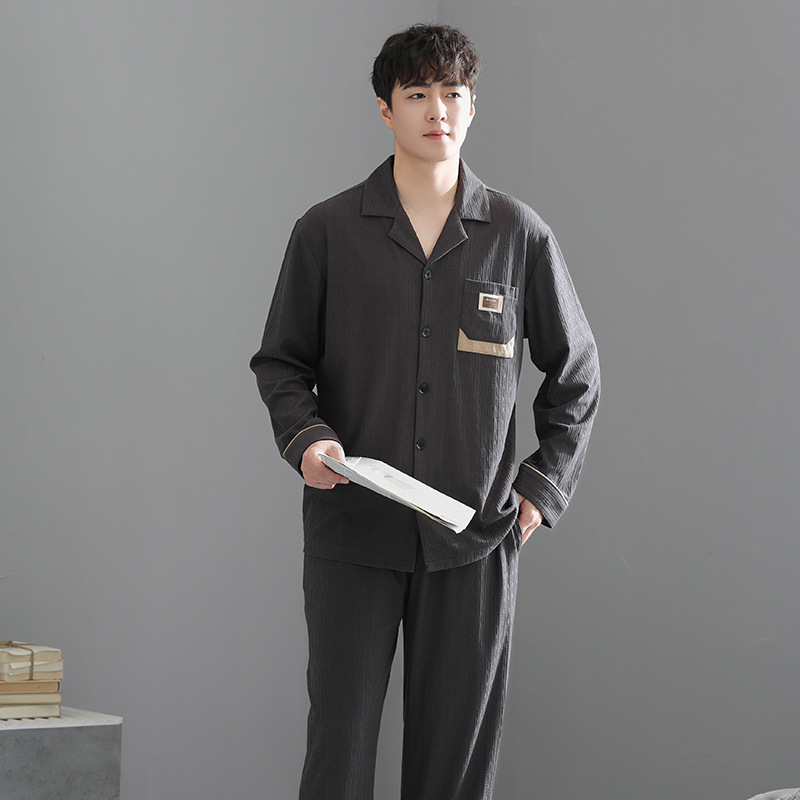 봄가을 시원한 면 카라 가디건 긴팔 긴바지 잠옷 남성용 가을 루즈핏 외출 가능 중년 홈웨어 세트