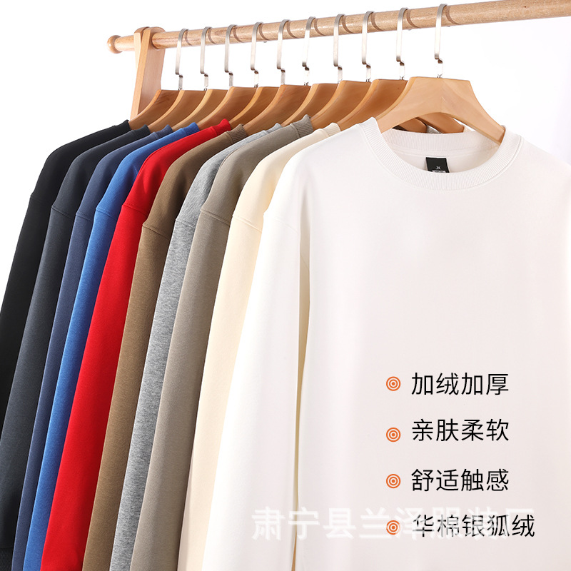 가을, 겨울 320G 남성과 여성을위한 중국 면화 라운드 넥 운동복 솔리드 컬러 내부 오프 숄더 탑 도매 느슨한 긴팔 DIY 인쇄스토어 가기