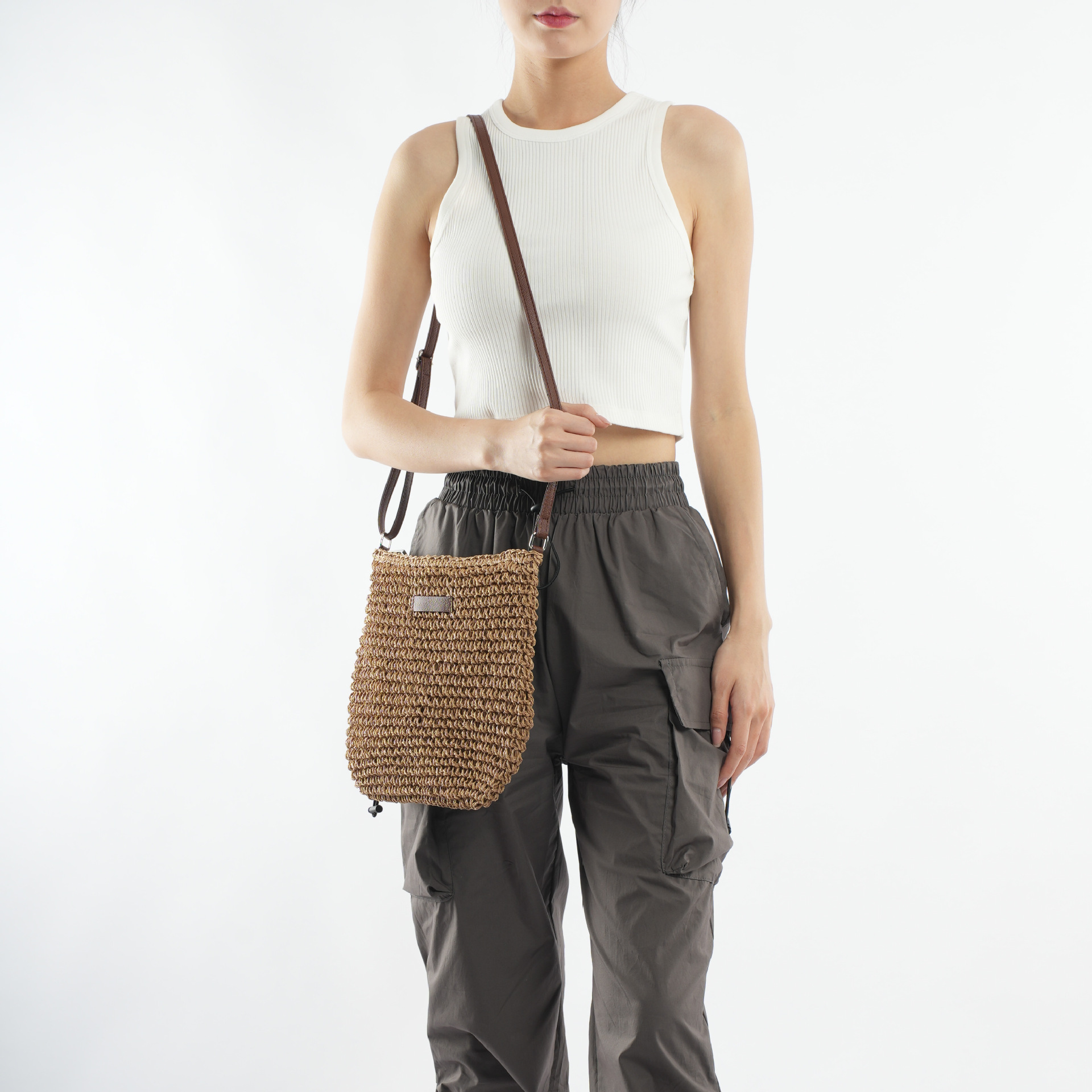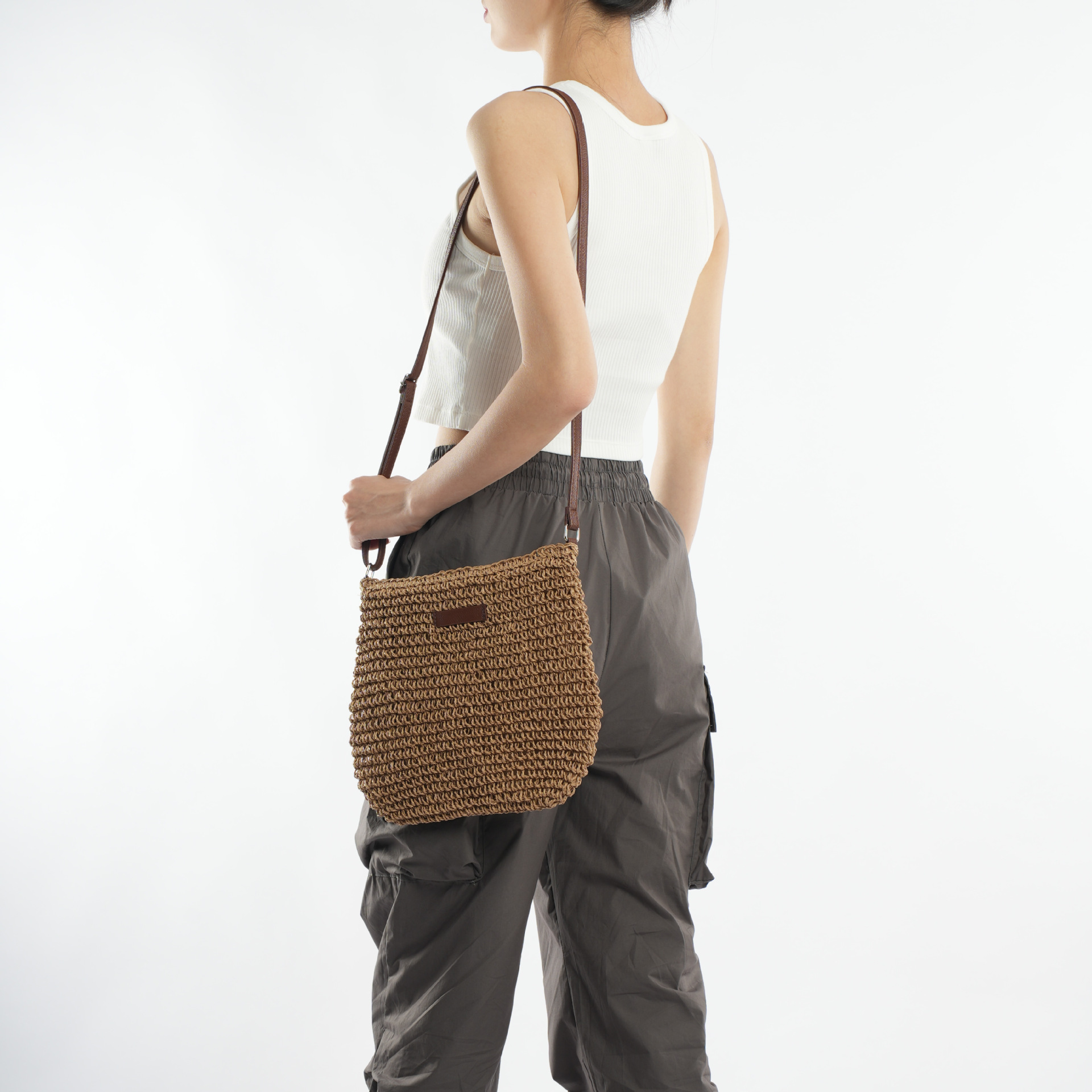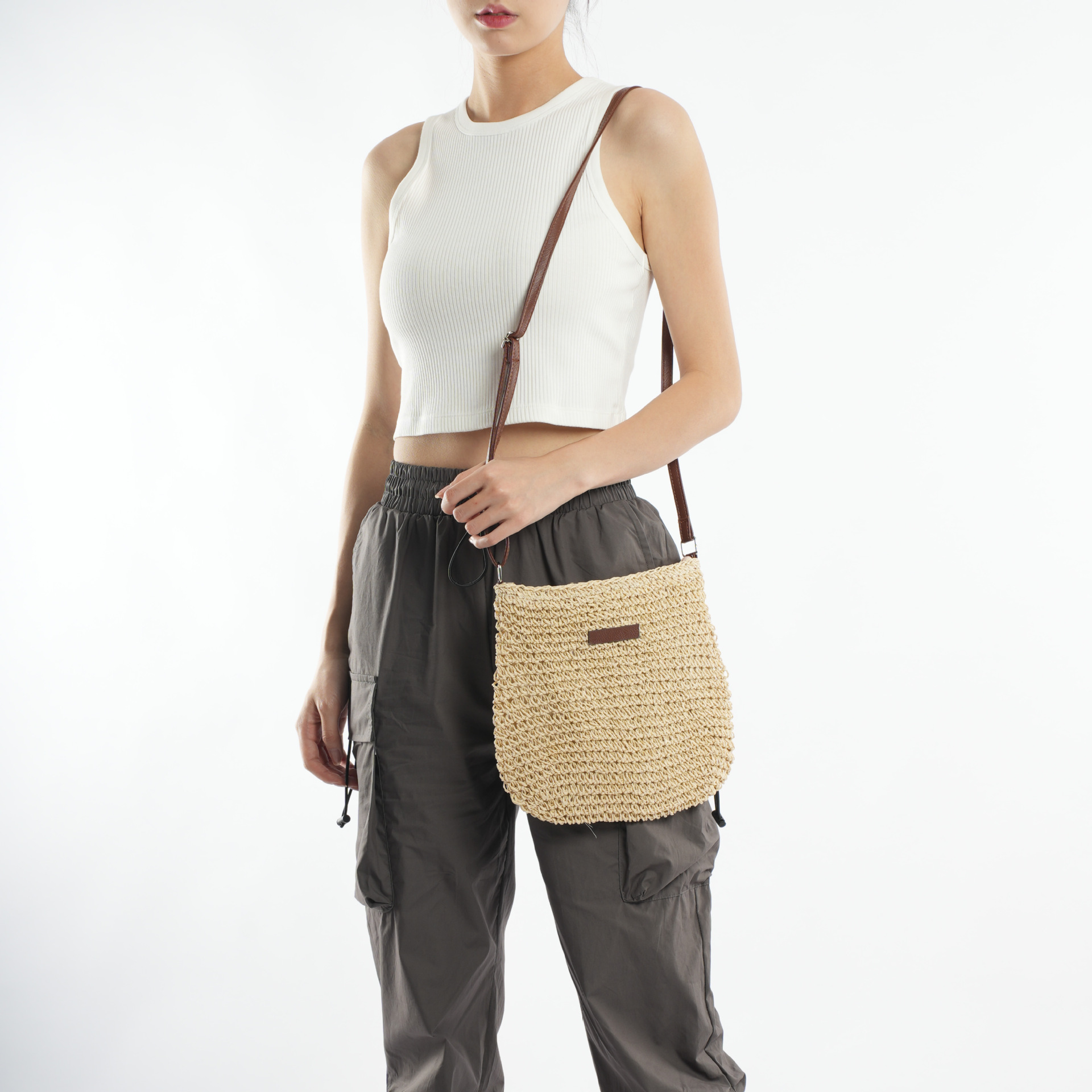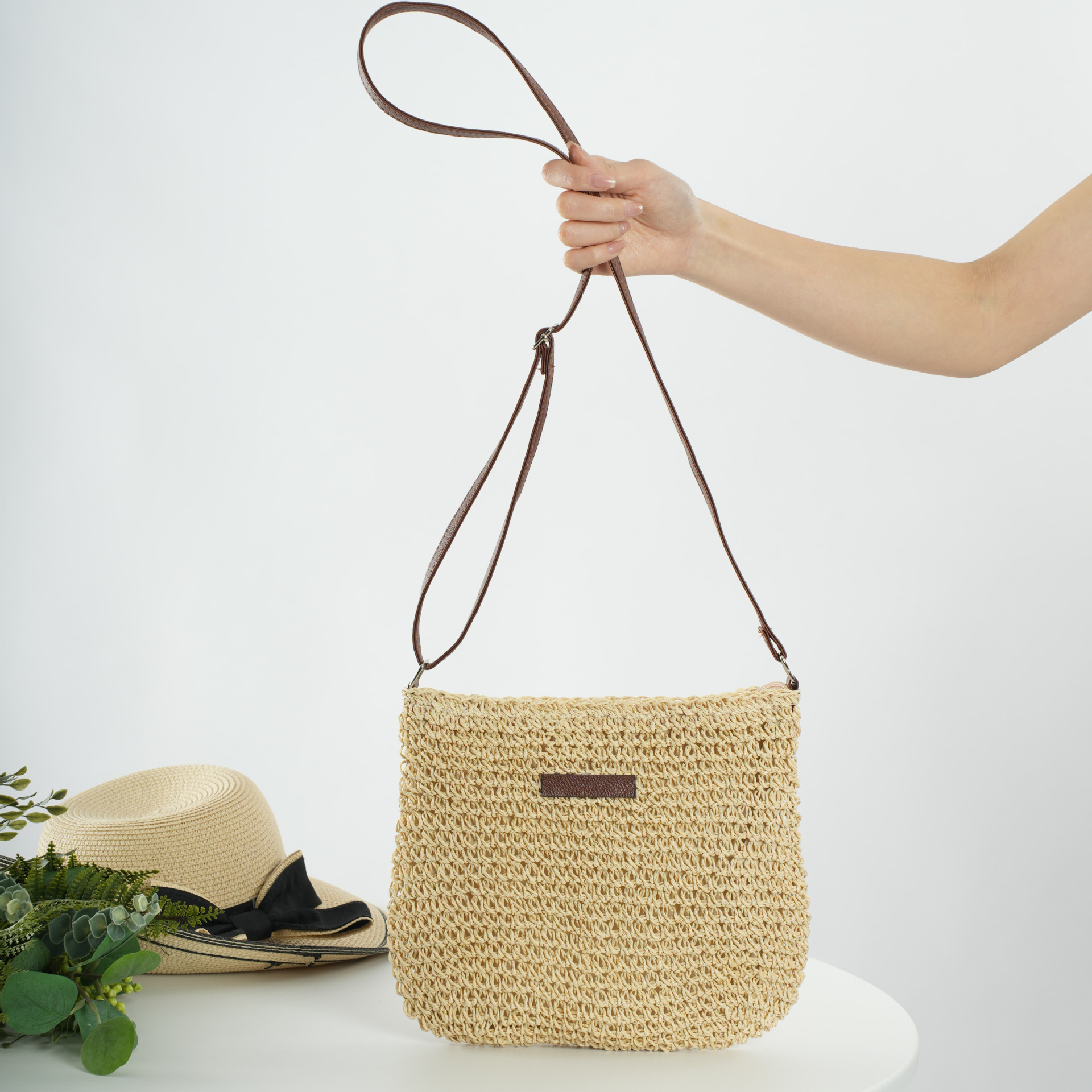 수제 밀짚 짠 캐주얼 모든 경기 유행 심플 스몰 가죽 브랜드 크로스바디 백