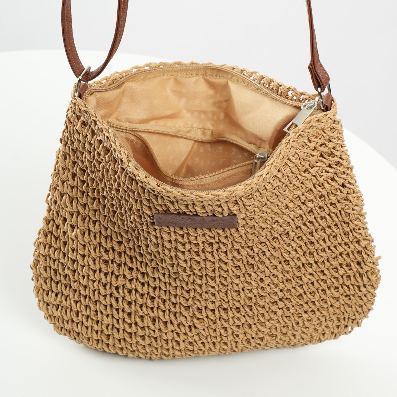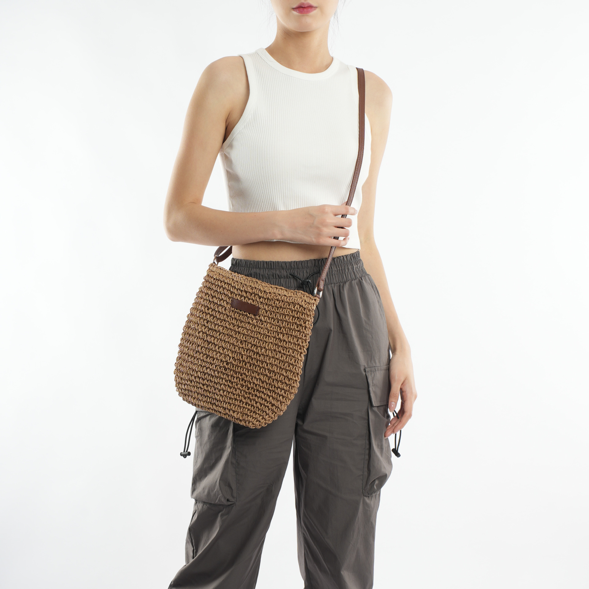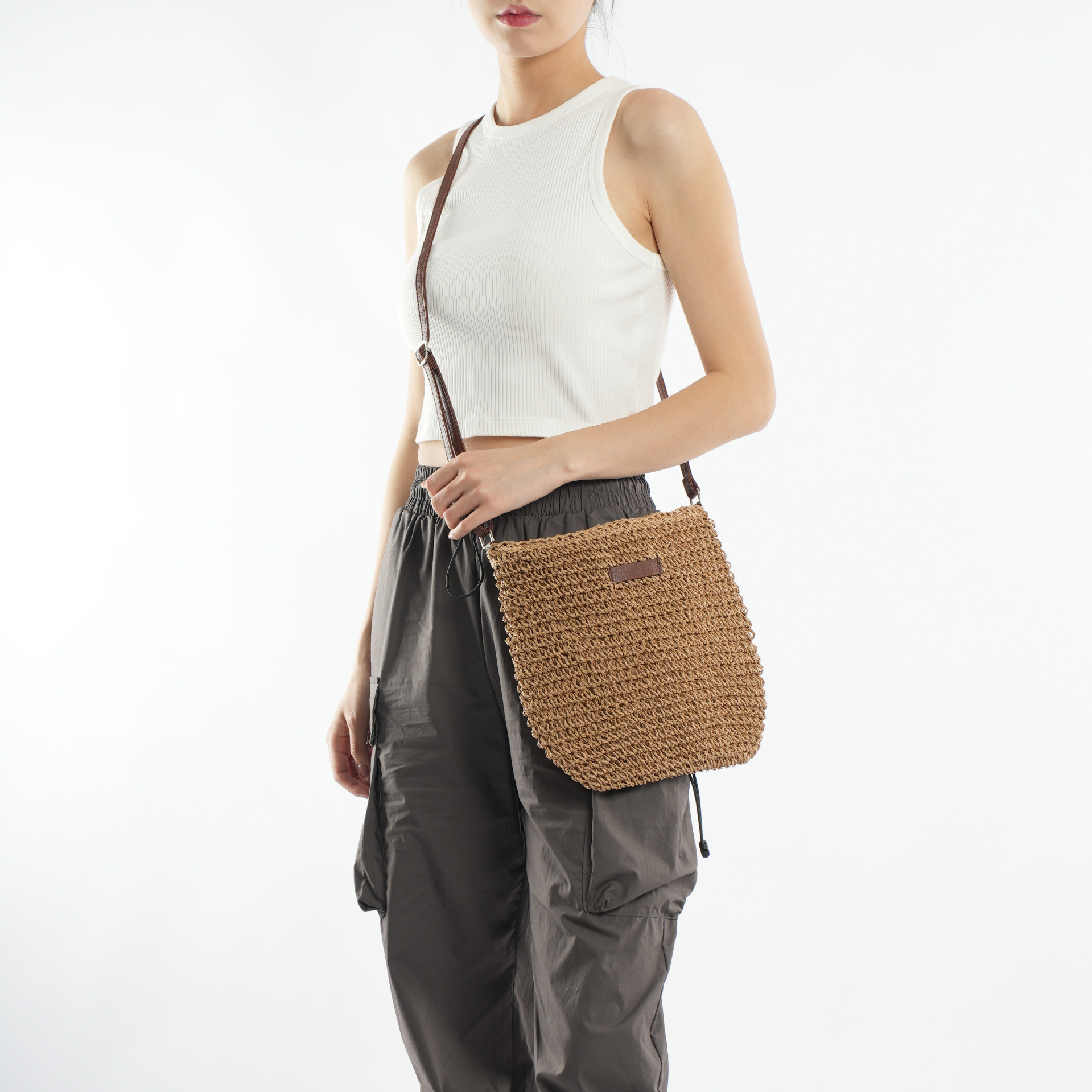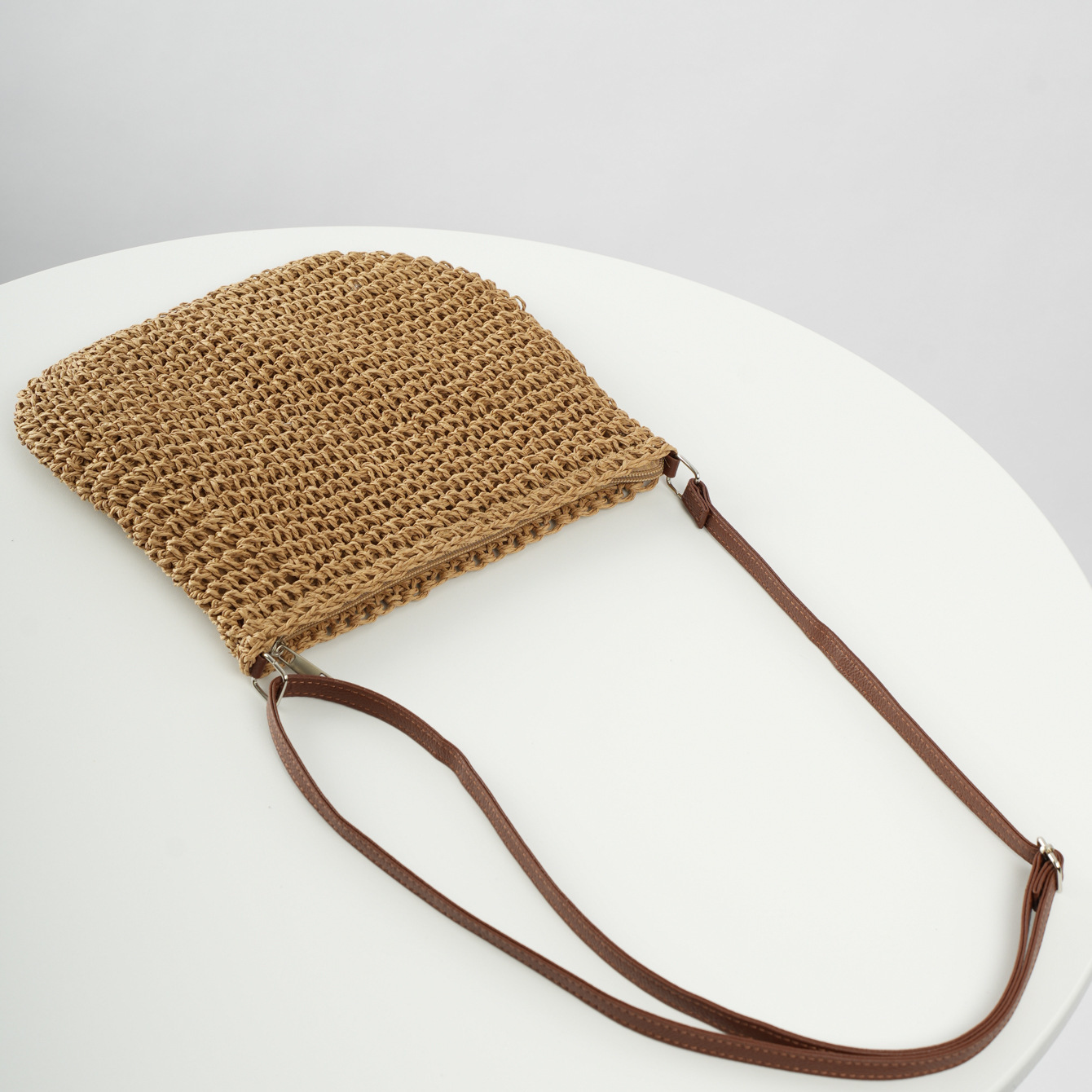 수제 밀짚 짠 캐주얼 모든 경기 유행 심플 스몰 가죽 브랜드 크로스바디 백