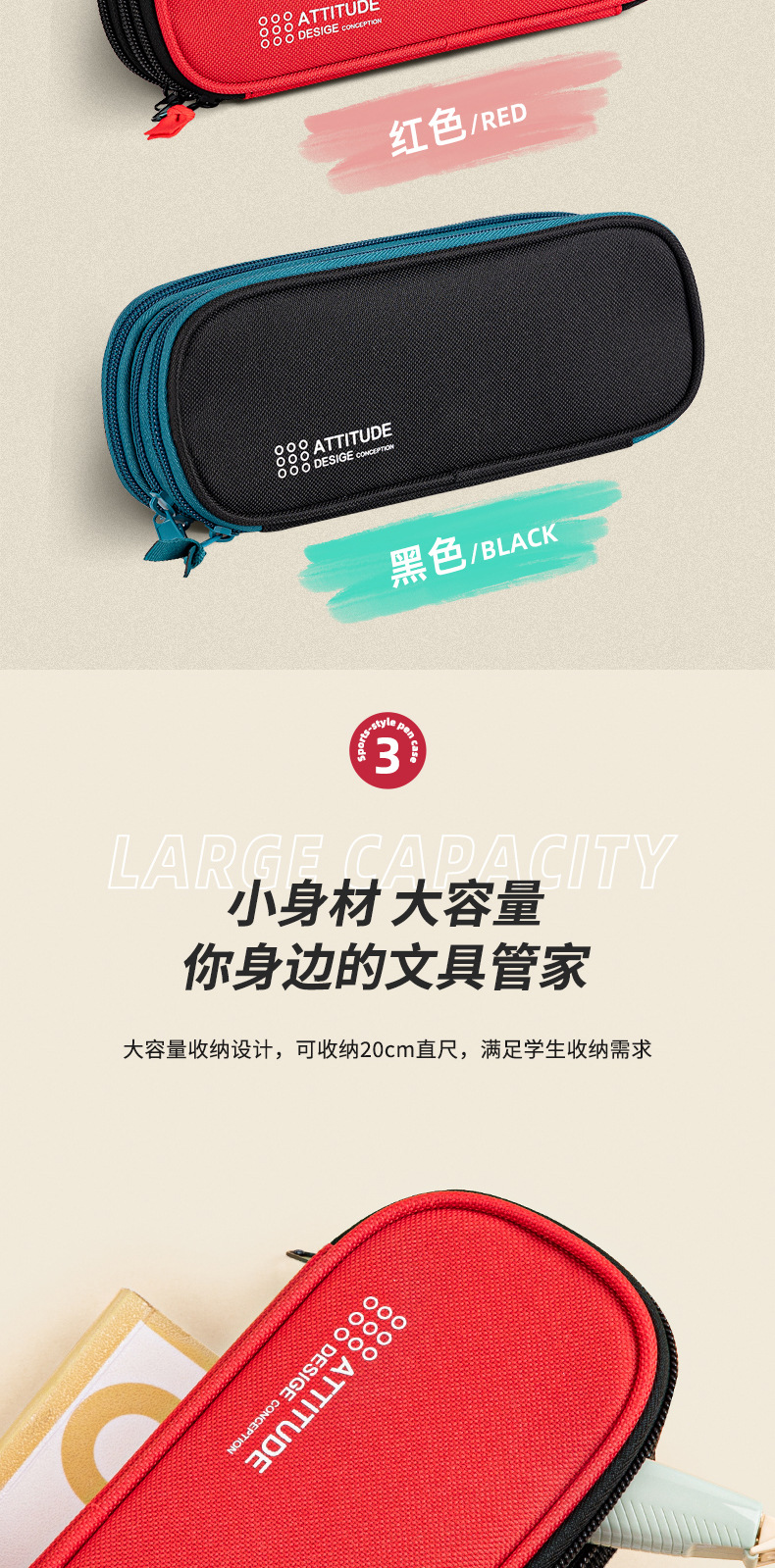 델리 펜슬 백 남성과 여성 중학생을 위한 고급 3 층 대용량 문구 가방 심플 다기능 학생 연필 가방