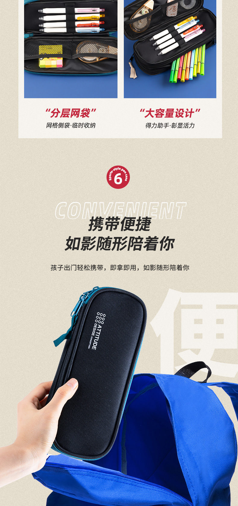 델리 펜슬 백 남성과 여성 중학생을 위한 고급 3 층 대용량 문구 가방 심플 다기능 학생 연필 가방스토어 가기