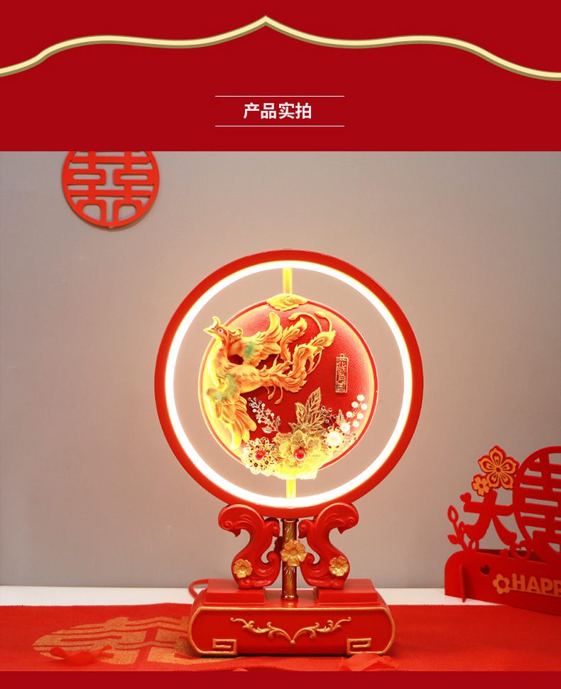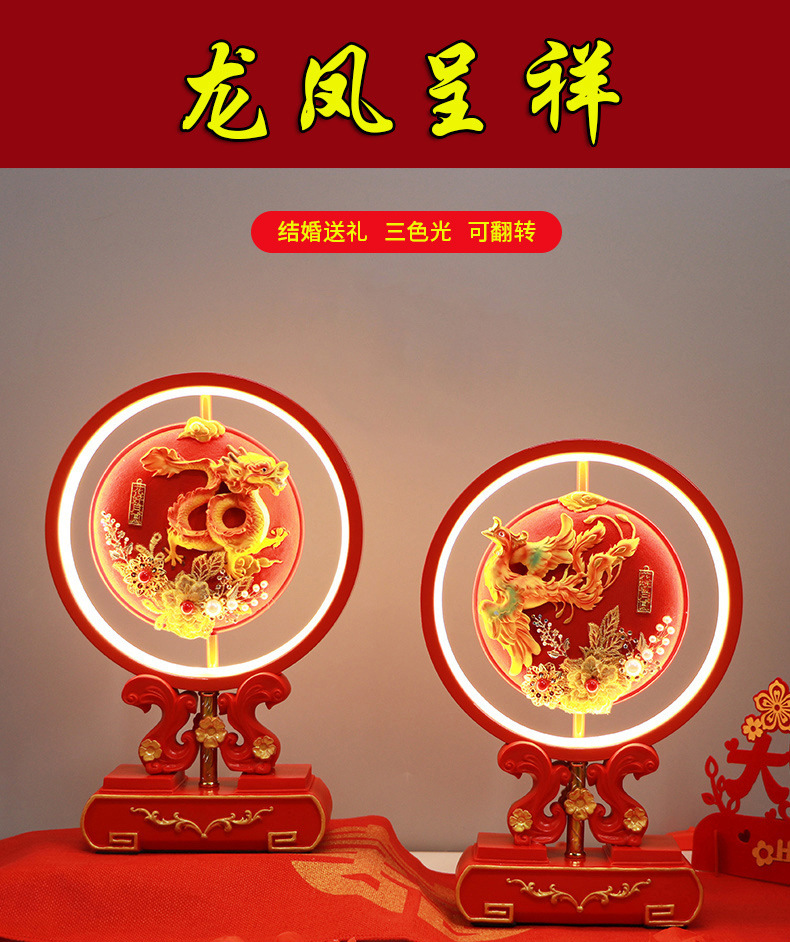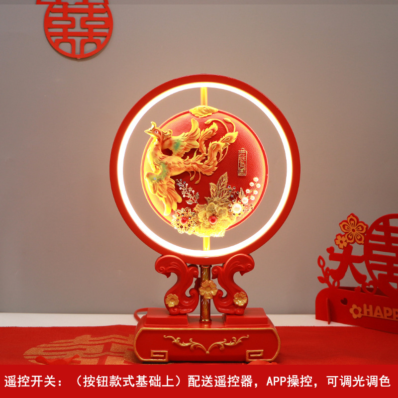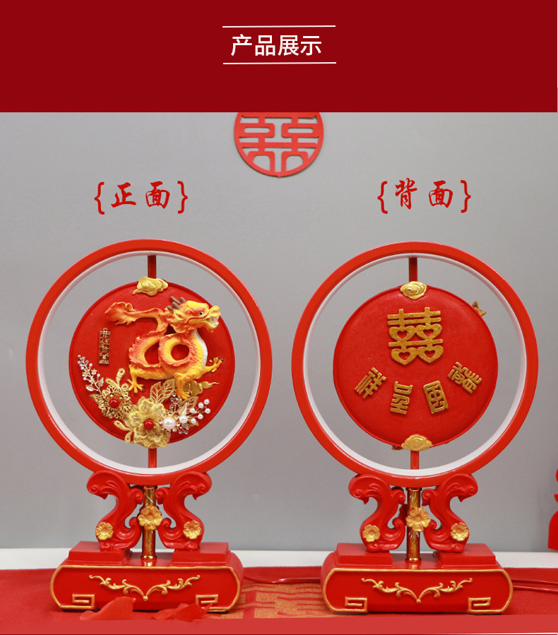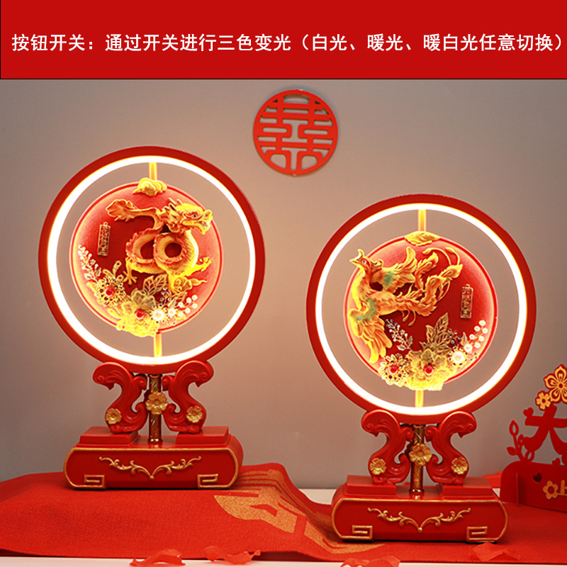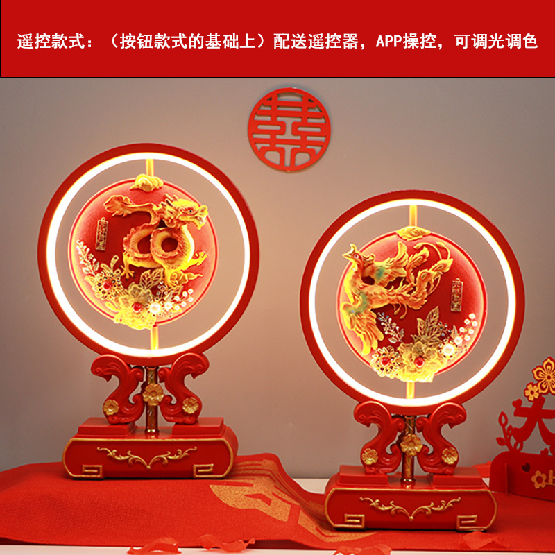 웨딩 웨딩 테이블 램프 웨딩 룸 침대 옆 램프 침실 긴 램프 축제 결혼식 보내기 용과 피닉스 쌍 램프 레드 해피 램프