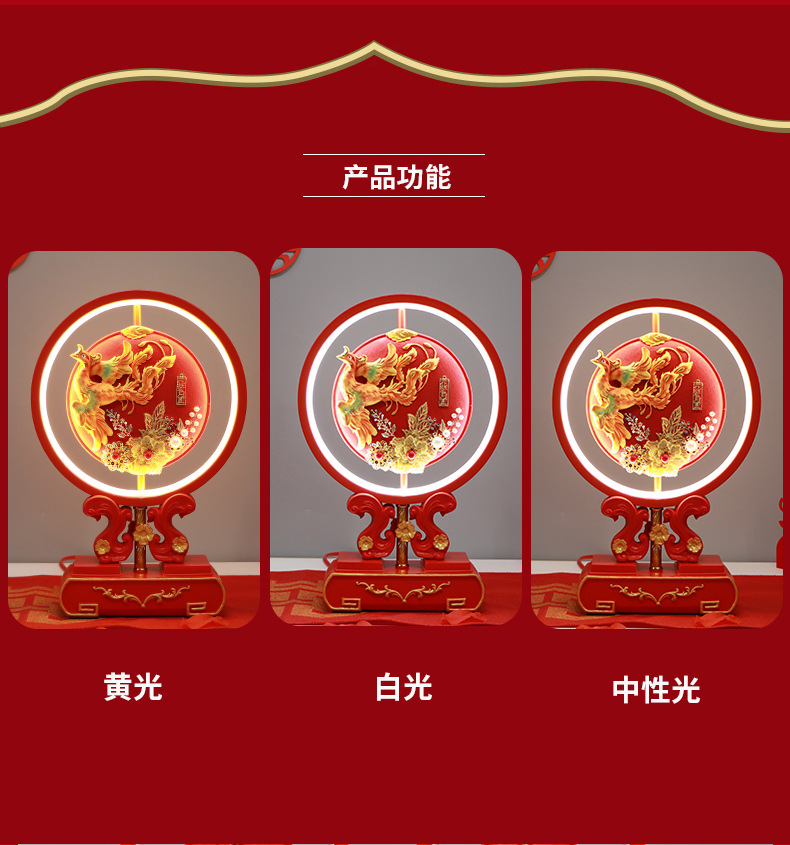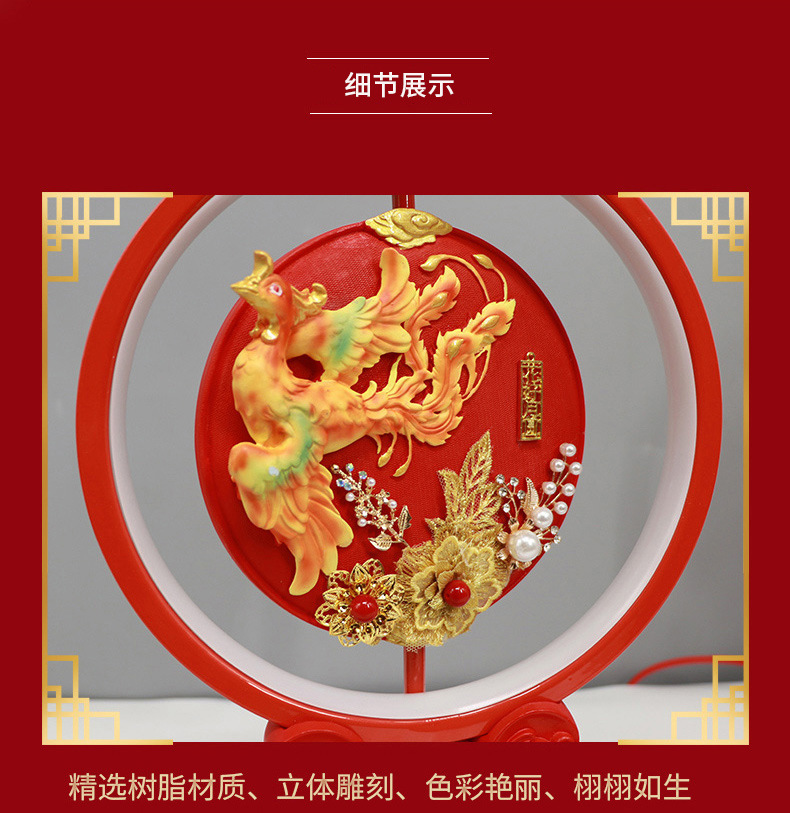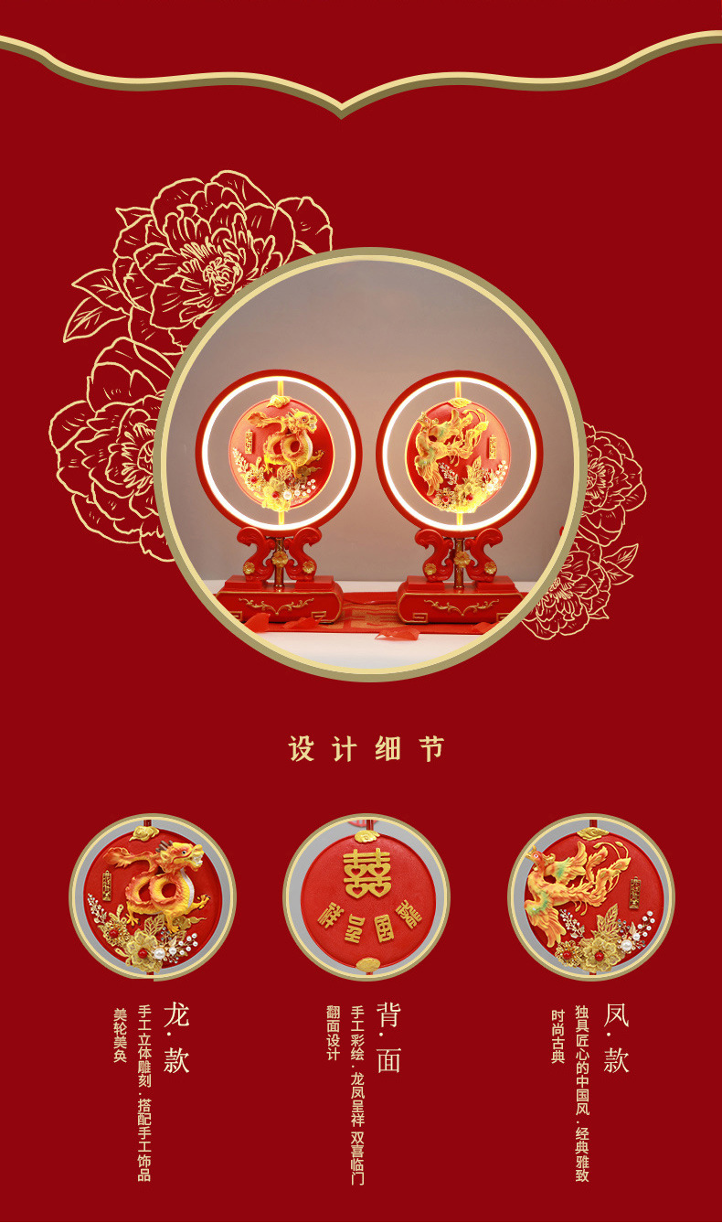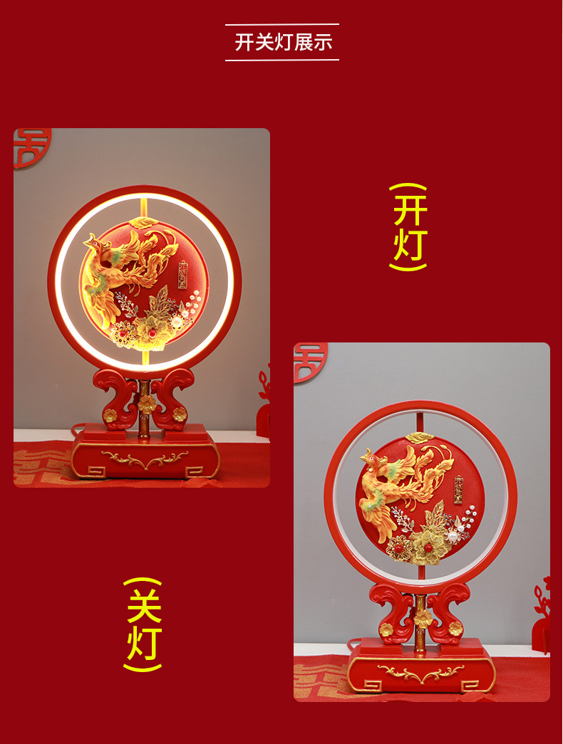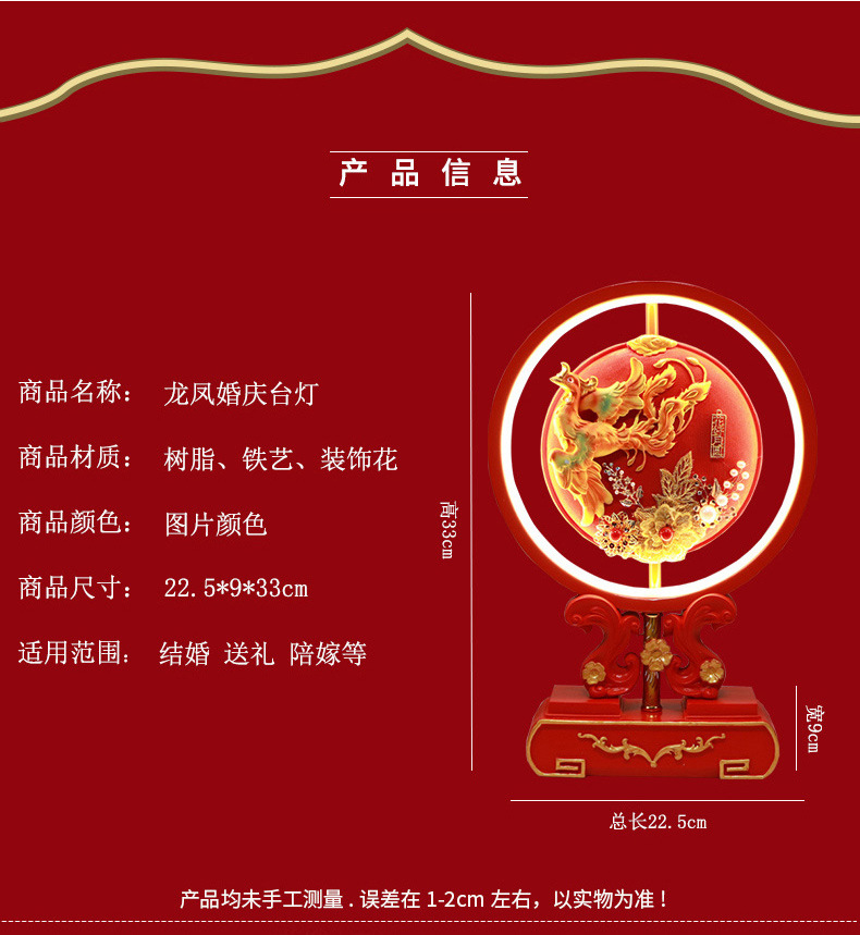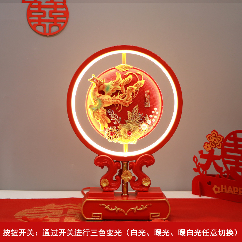 웨딩 웨딩 테이블 램프 웨딩 룸 침대 옆 램프 침실 긴 램프 축제 결혼식 보내기 용과 피닉스 쌍 램프 레드 해피 램프
