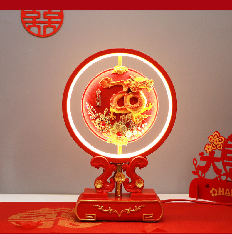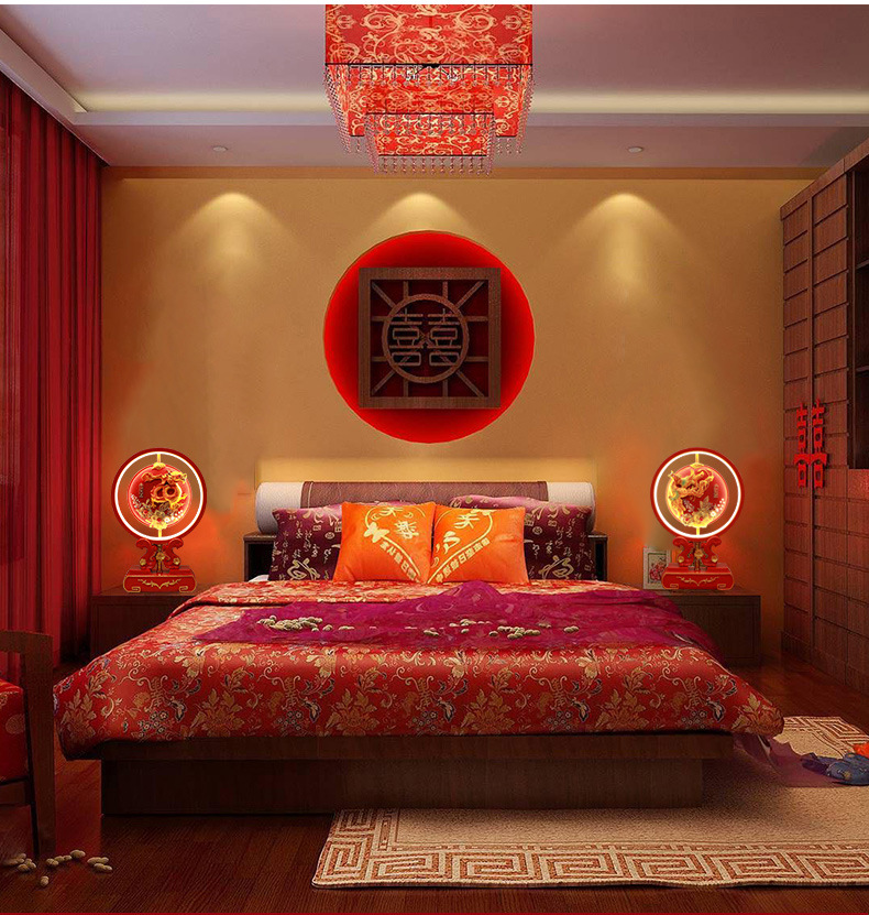 웨딩 웨딩 테이블 램프 웨딩 룸 침대 옆 램프 침실 긴 램프 축제 결혼식 보내기 용과 피닉스 쌍 램프 레드 해피 램프스토어 가기