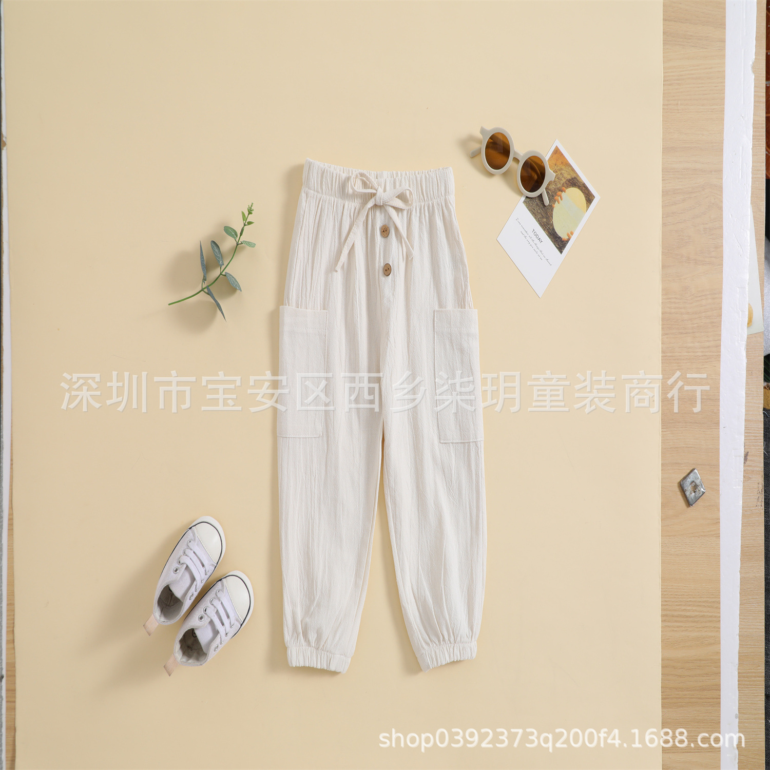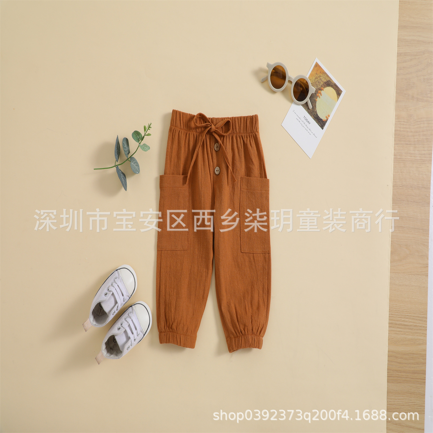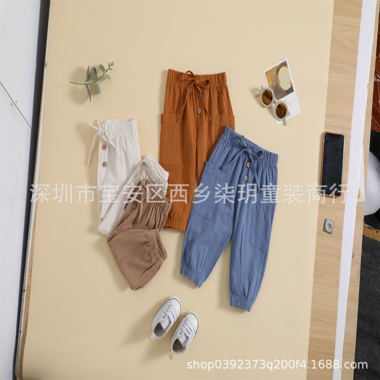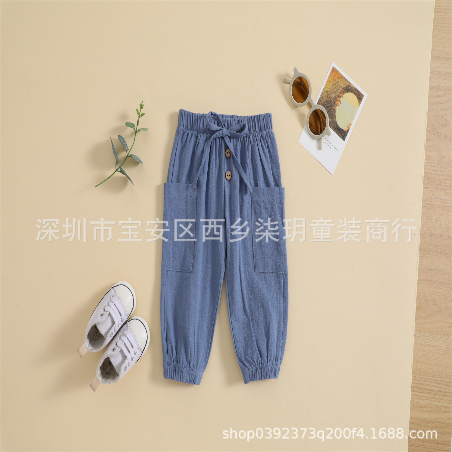 국경 간 대외 무역 아동 여름 단색 면 린넨 단일 제품 바지 발가락 모기 방지 통기성 바지 도매스토어 가기