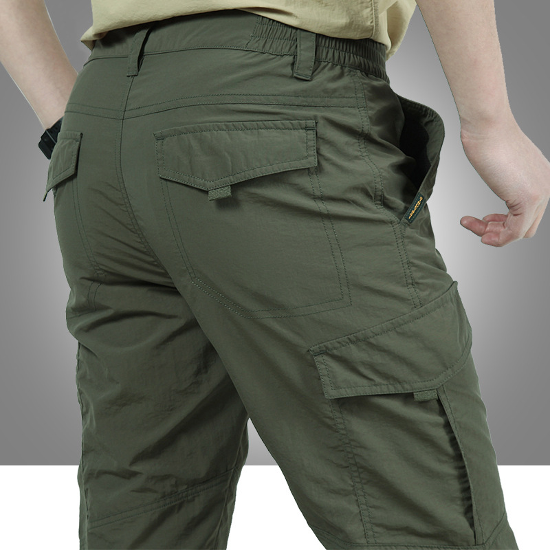 야외 여름 얇은 재킷 바지 방수 속건 바지 멀티 포켓 바지 남성 루즈 캐주얼 바지