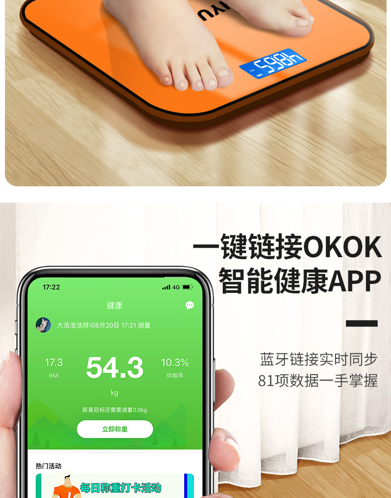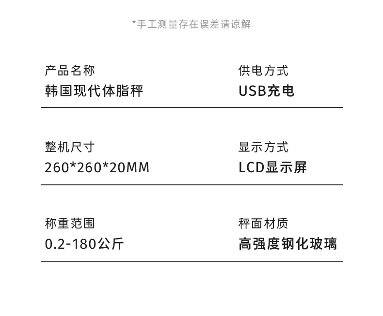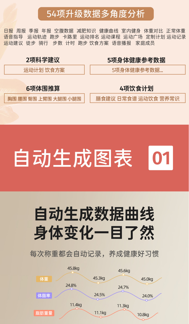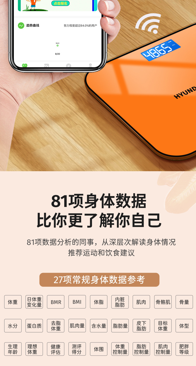 현대 고급 정밀 전자저울, 지능형 소형 체중 및 체지방 측정 저울, 충전식, 기숙사 및 가정용으로 안전