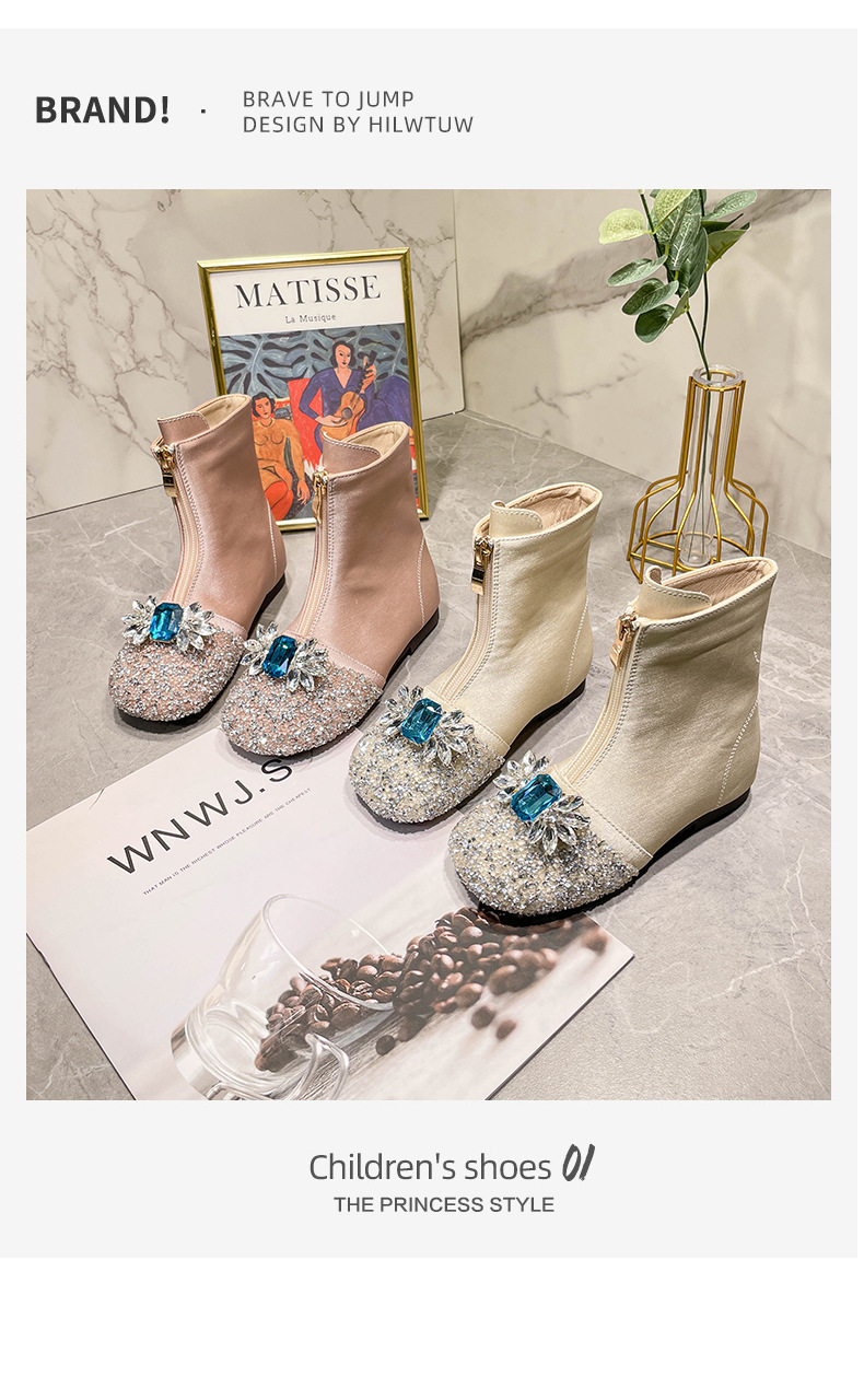 여자 부츠 공주 크리스탈 신발 어린이 마틴 부츠 가을과 겨울 기모 부드러운 바닥 아기 부츠 어린 소녀 겨울 신발스토어 가기