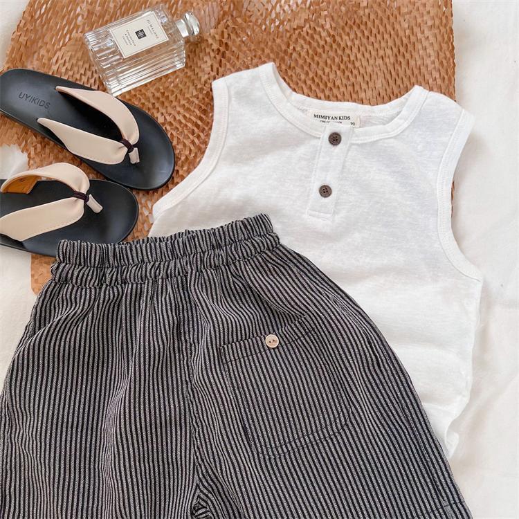 어린이 얇은 조끼 2023 여름 새로운 소년 소녀 단색 니트 버튼 조끼 아기 민소매 셔츠스토어 가기