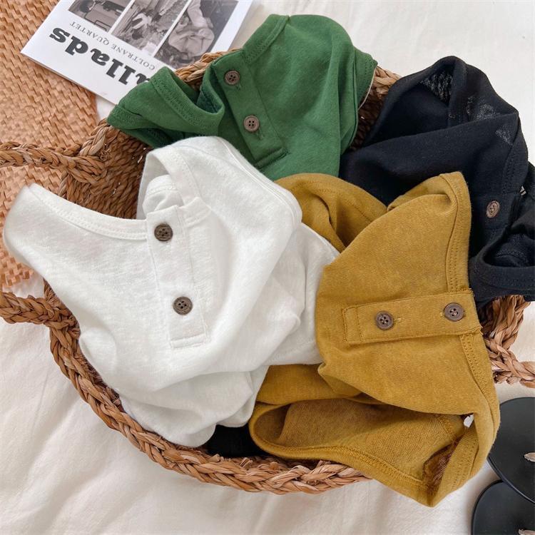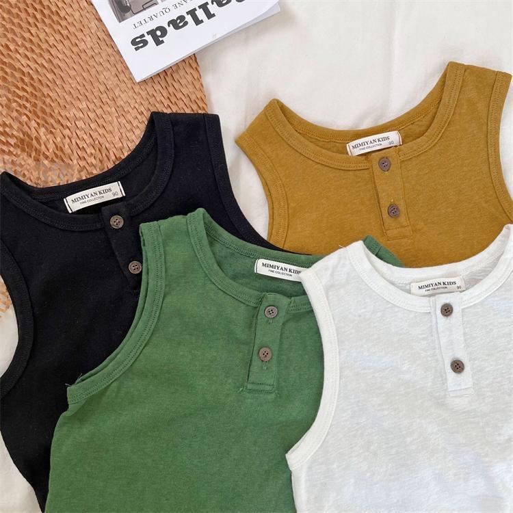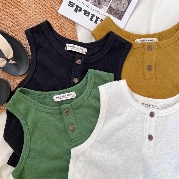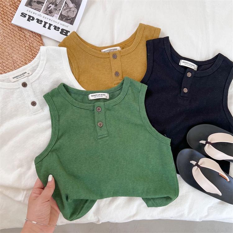 어린이 얇은 조끼 2023 여름 새로운 소년 소녀 단색 니트 버튼 조끼 아기 민소매 셔츠