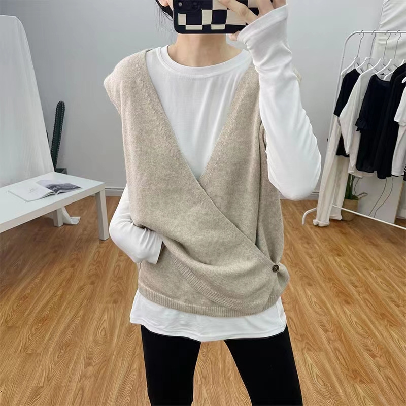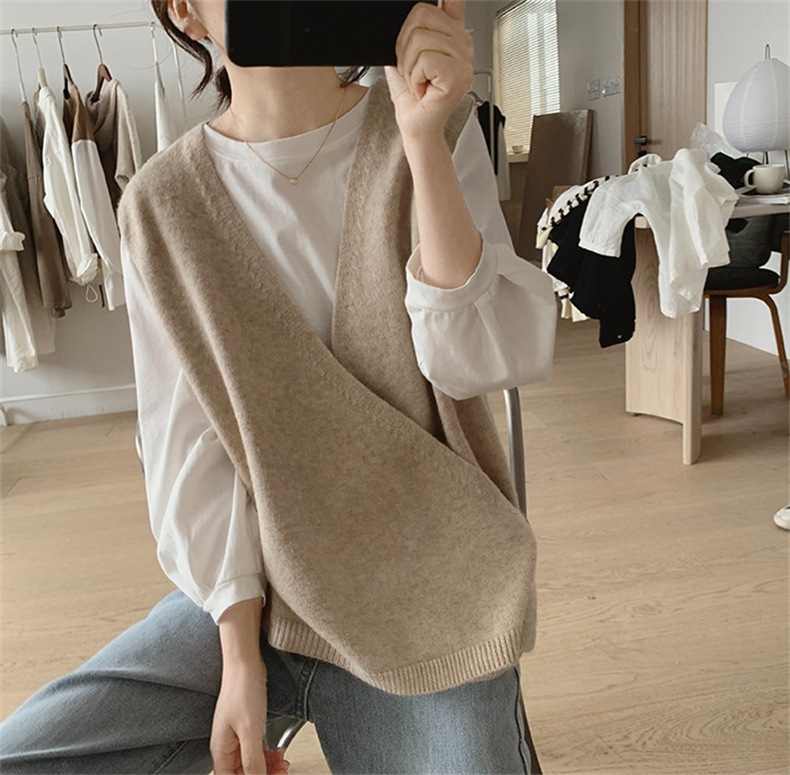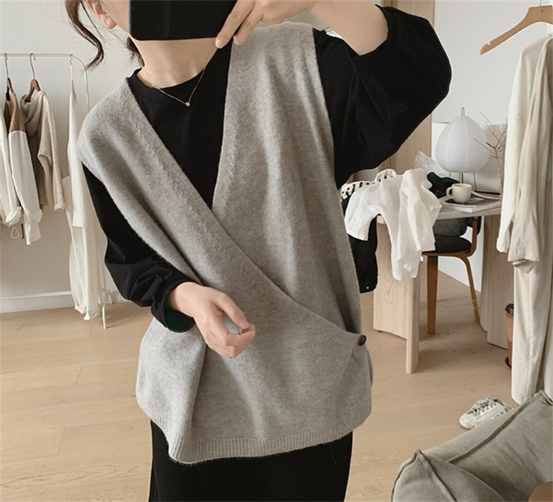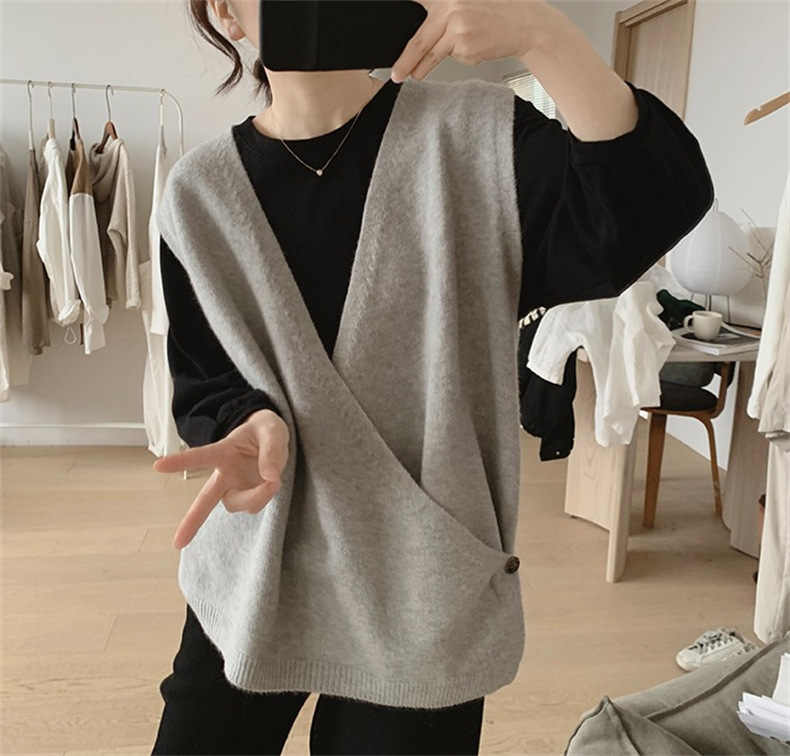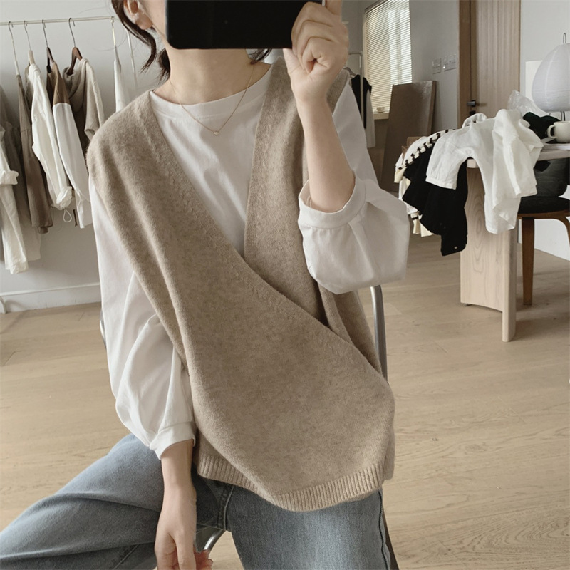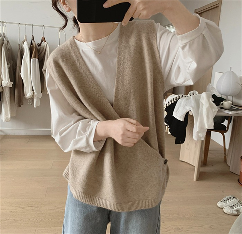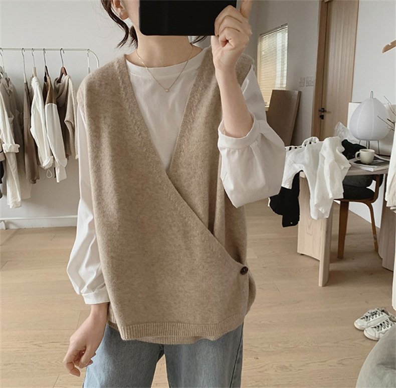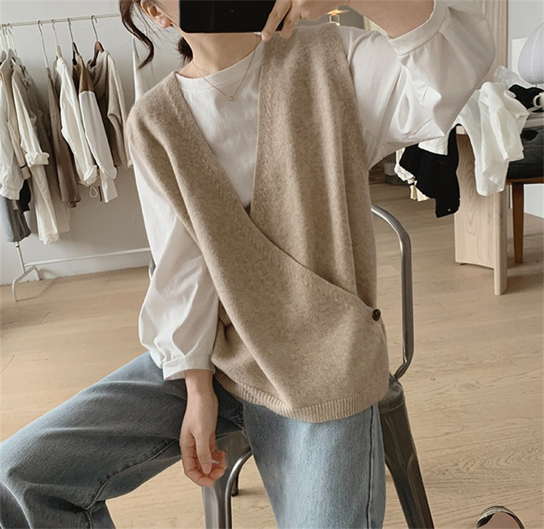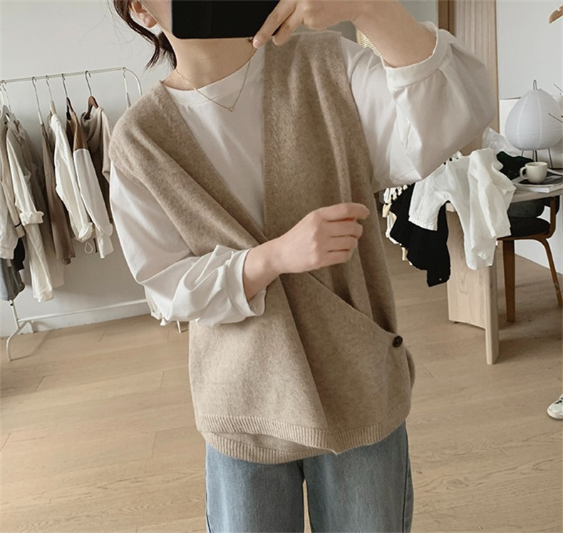 불규칙한 스웨터 조끼 여성의 봄과 가을 새로운 느슨한 슬리밍 간단한 V-넥 민소매 연령 감소 한국식 말 클립스토어 가기