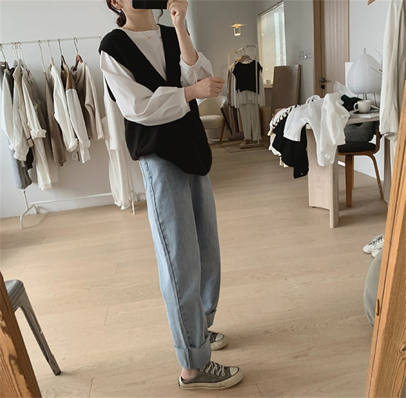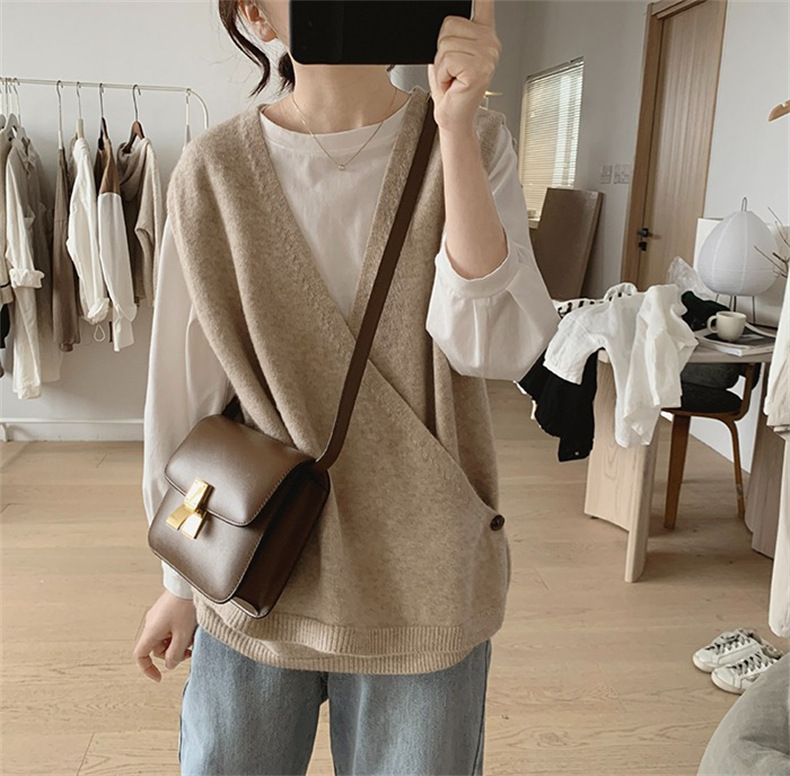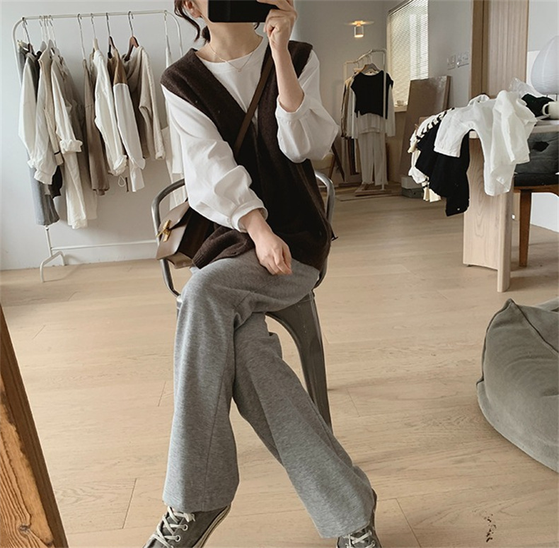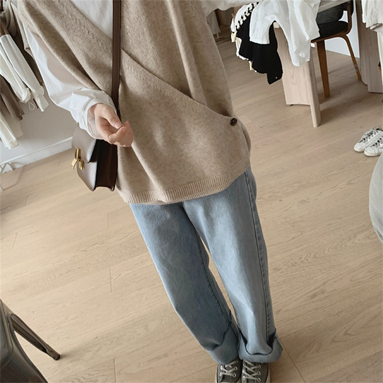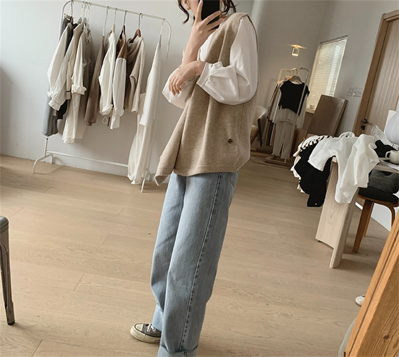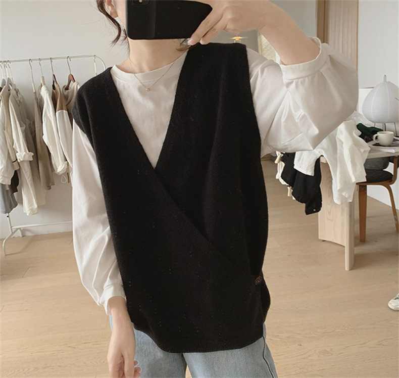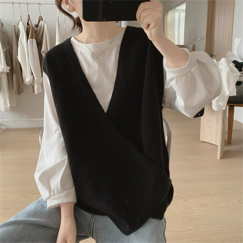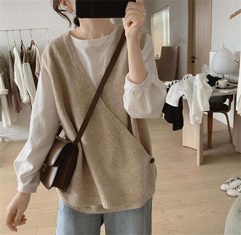 불규칙한 스웨터 조끼 여성의 봄과 가을 새로운 느슨한 슬리밍 간단한 V-넥 민소매 연령 감소 한국식 말 클립스토어 가기